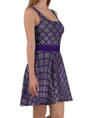 Indigo Viridescent Collection – Skater Dress Deep Indigo Damask