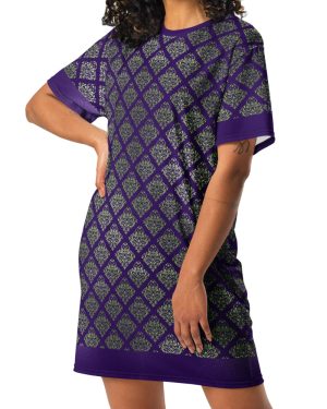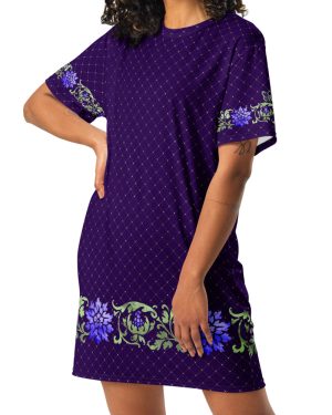 Indigo Viridescent Collection – T-Shirt Dress Deep Indigo Damask