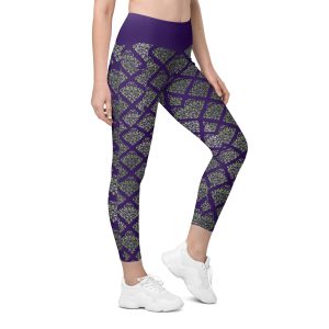 Indigo Viridescent Collection – Crossover Leggings Deep Indigo Damask