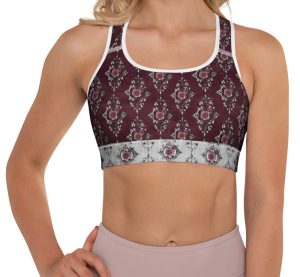Stressed Burgundy & Rose Collection – Padded Sports Bra Burgundy and Pink Rose Damask