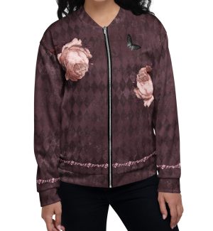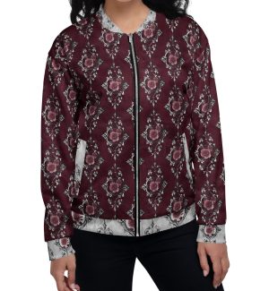 Stressed Burgundy & Rose Collection – Bomber Jacket Burgundy with Pink Rose Damask