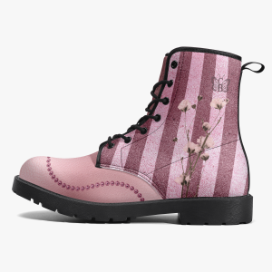 Pink Bordeaux Collection – Leather Chunky Boots with Rose Stripes