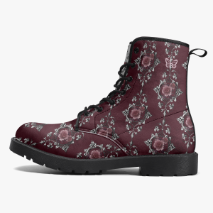 Stressed Burgundy & Rose Collection – Leather Boots Burgundy with Pink Rose Damask