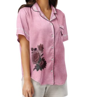 Pink Bordeaux Collection – Short Sleeve Pajama Top Pink with White Pearl