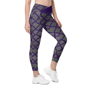 Indigo Viridescent Collection – Crossover Leggings Deep Indigo Damask