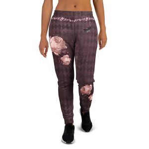 Stressed Burgundy & Rose Collection – Joggers Burgundy with Pink Rose Damask