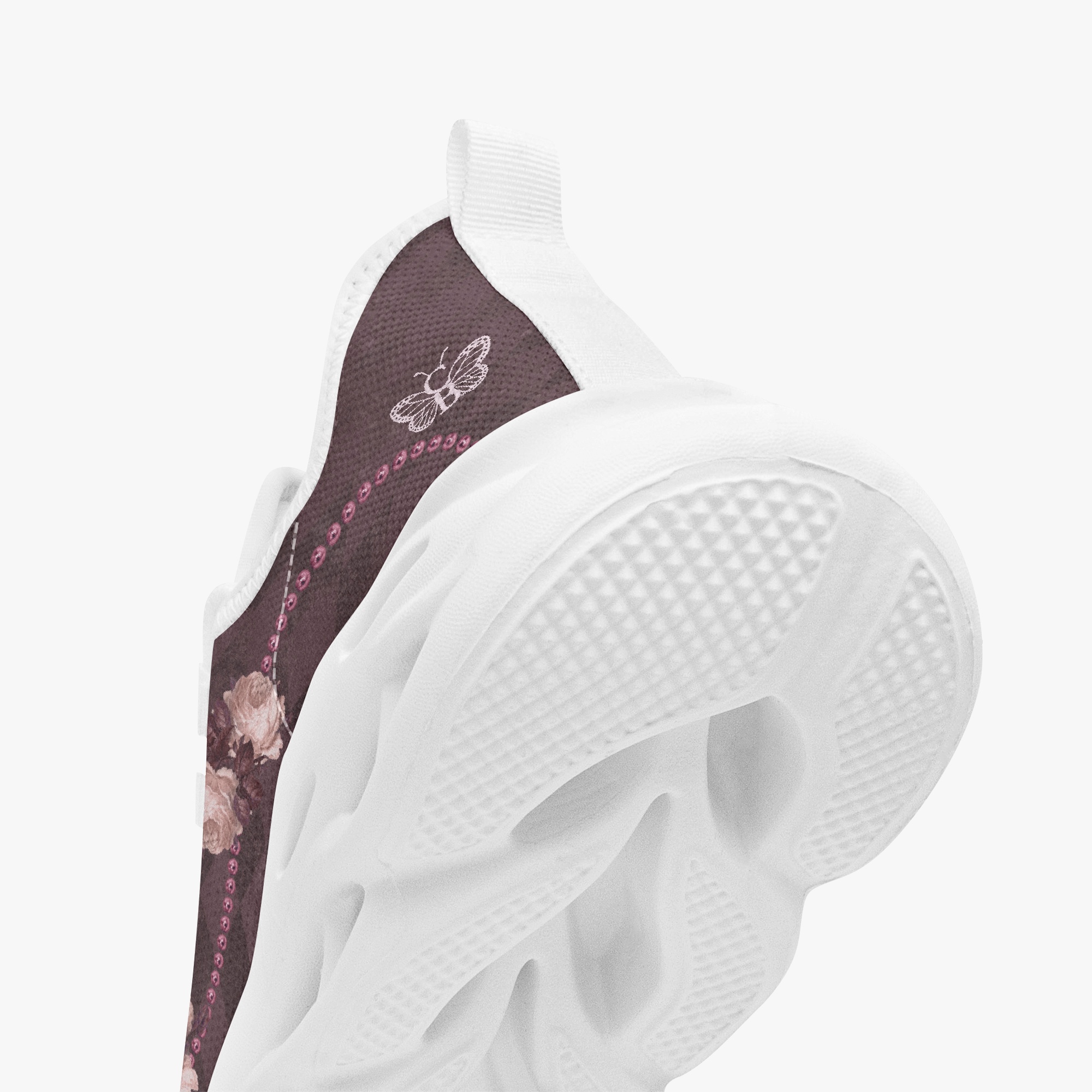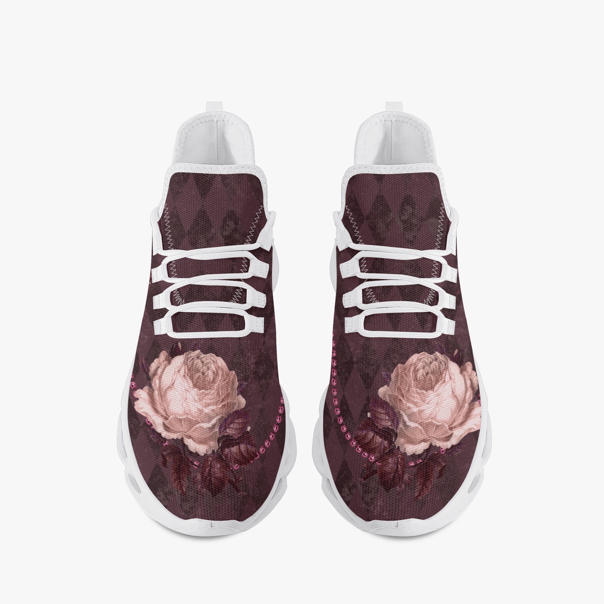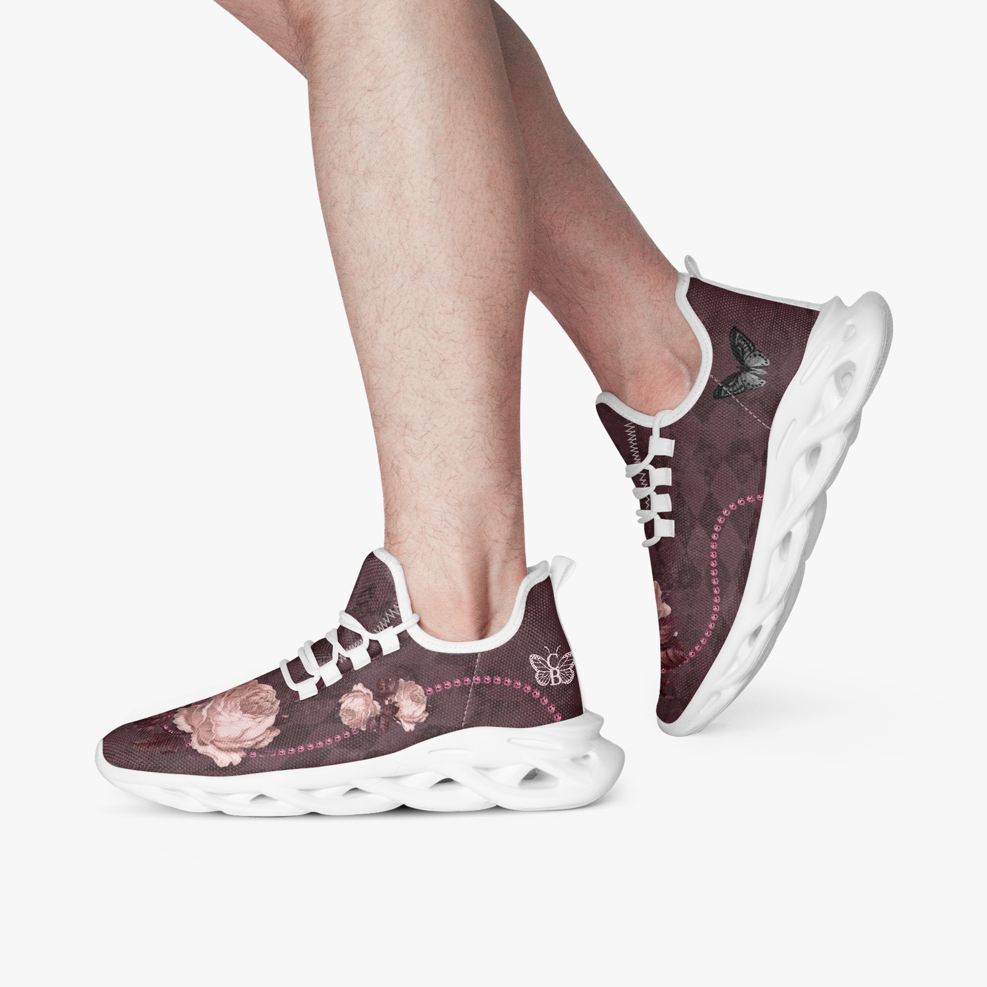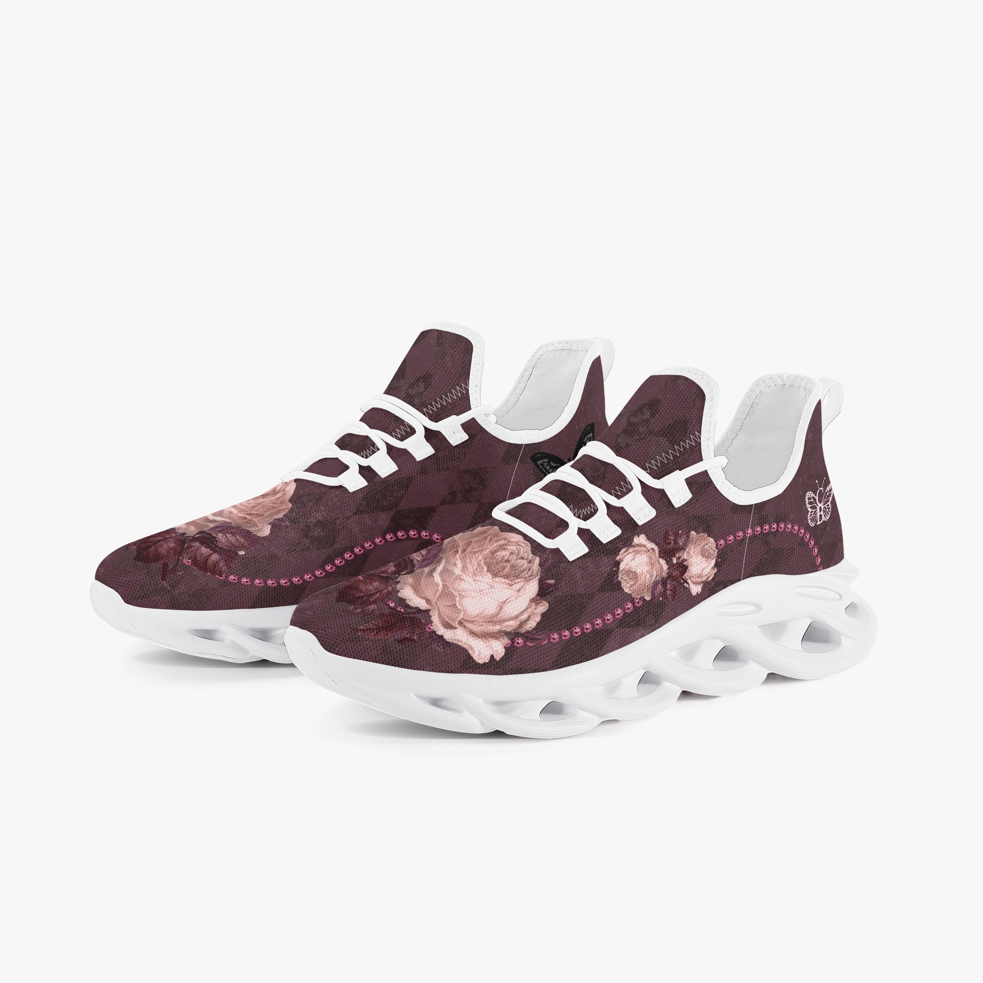 Stressed Burgundy & Rose Collection – Bounce Mesh Knit Sneakers Burgundy with Pink Rose