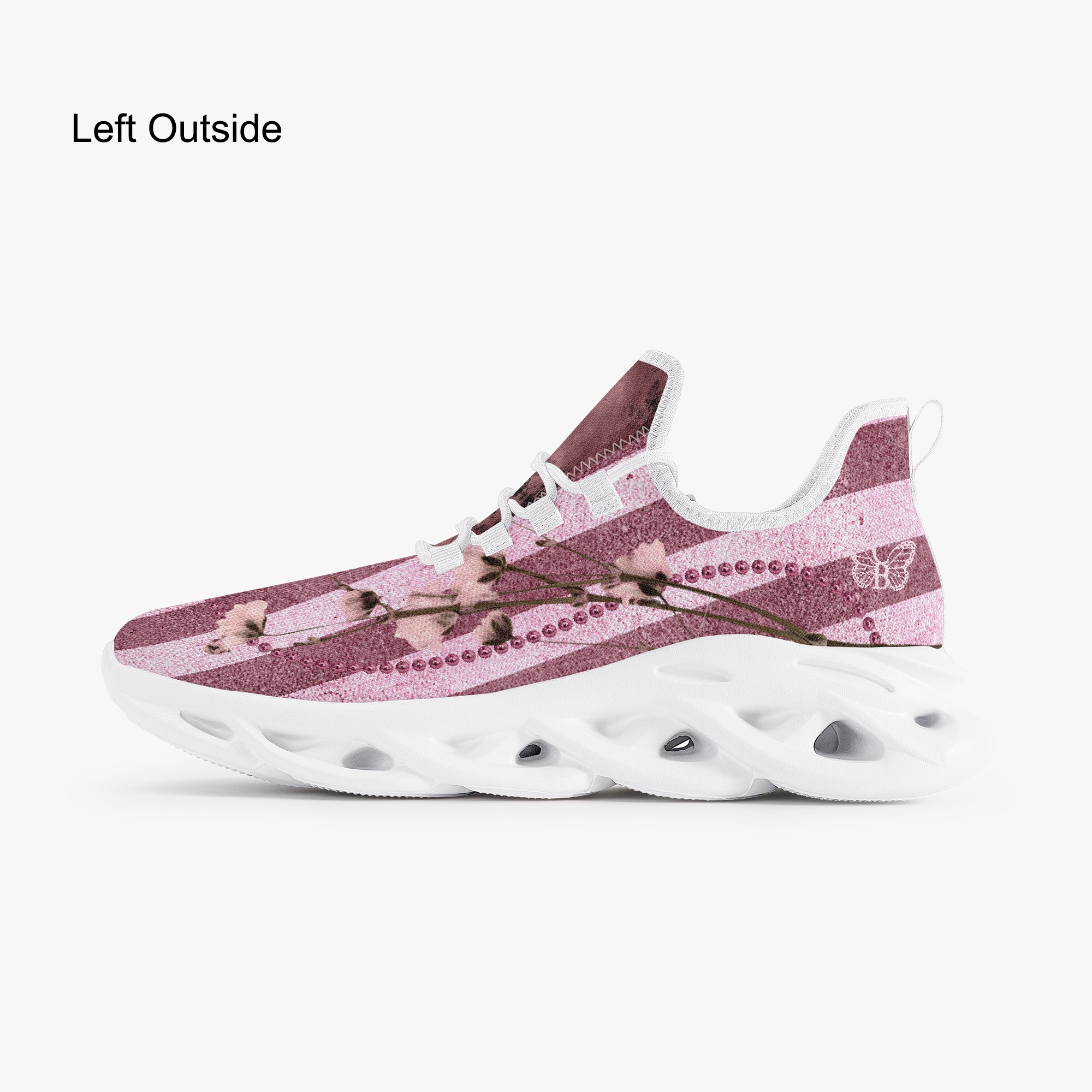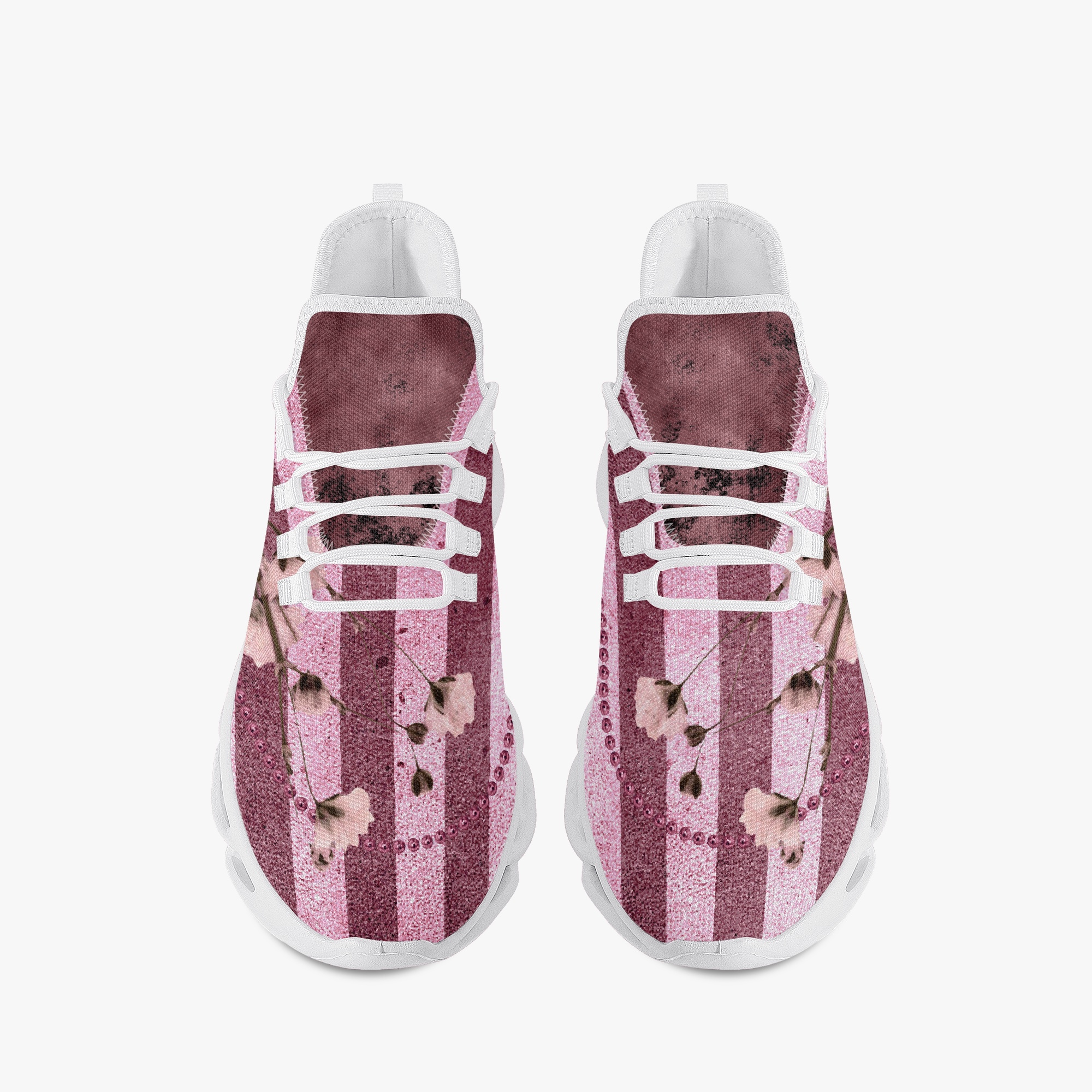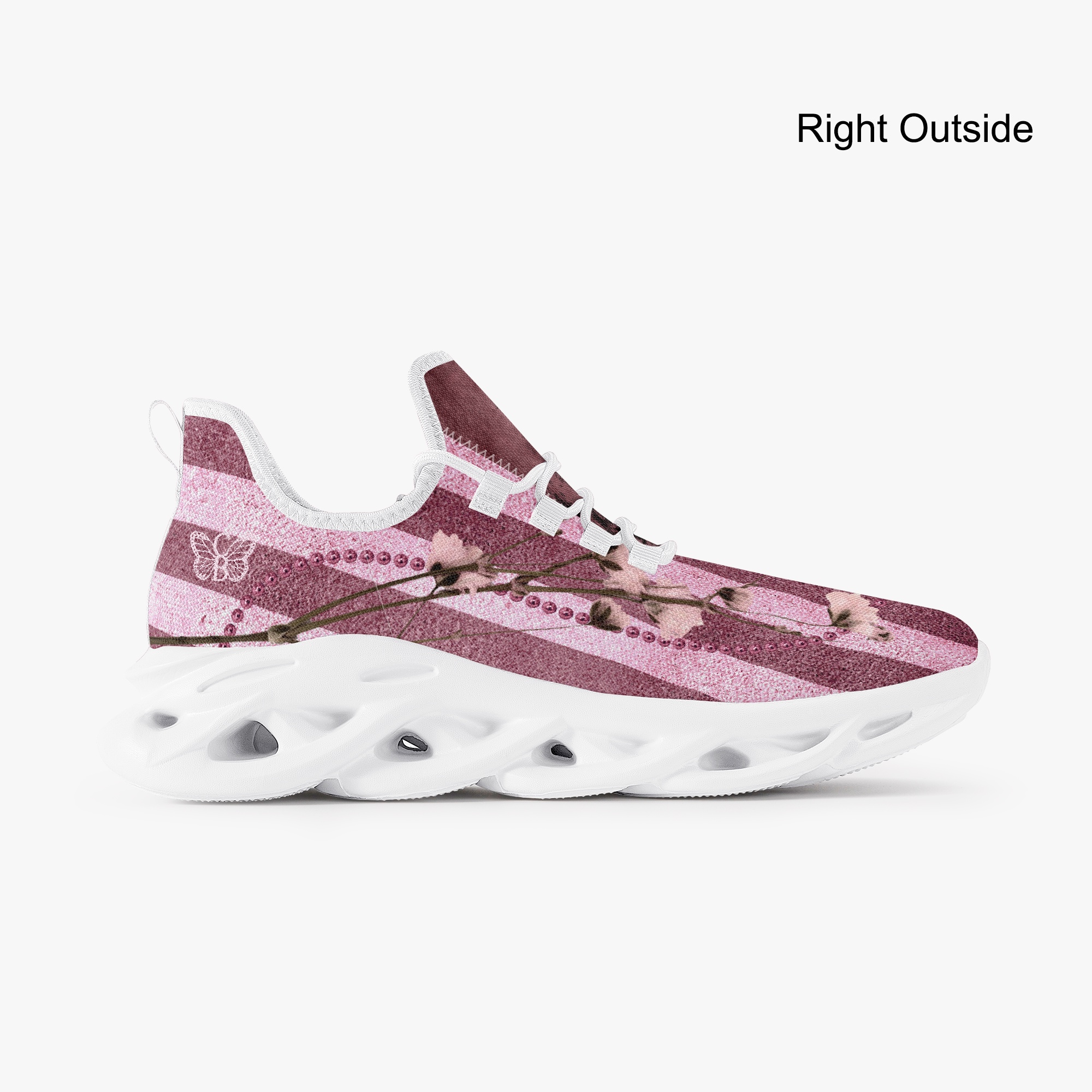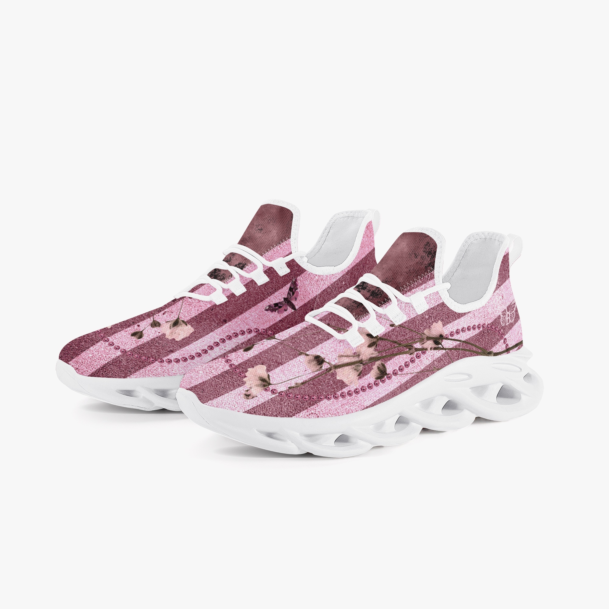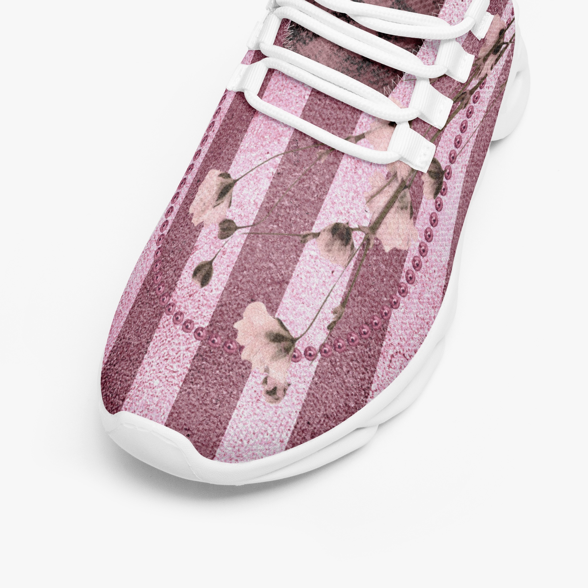 Pink Bordeaux Collection – Bounce Mesh Knit Sneakers with Rose Stripes