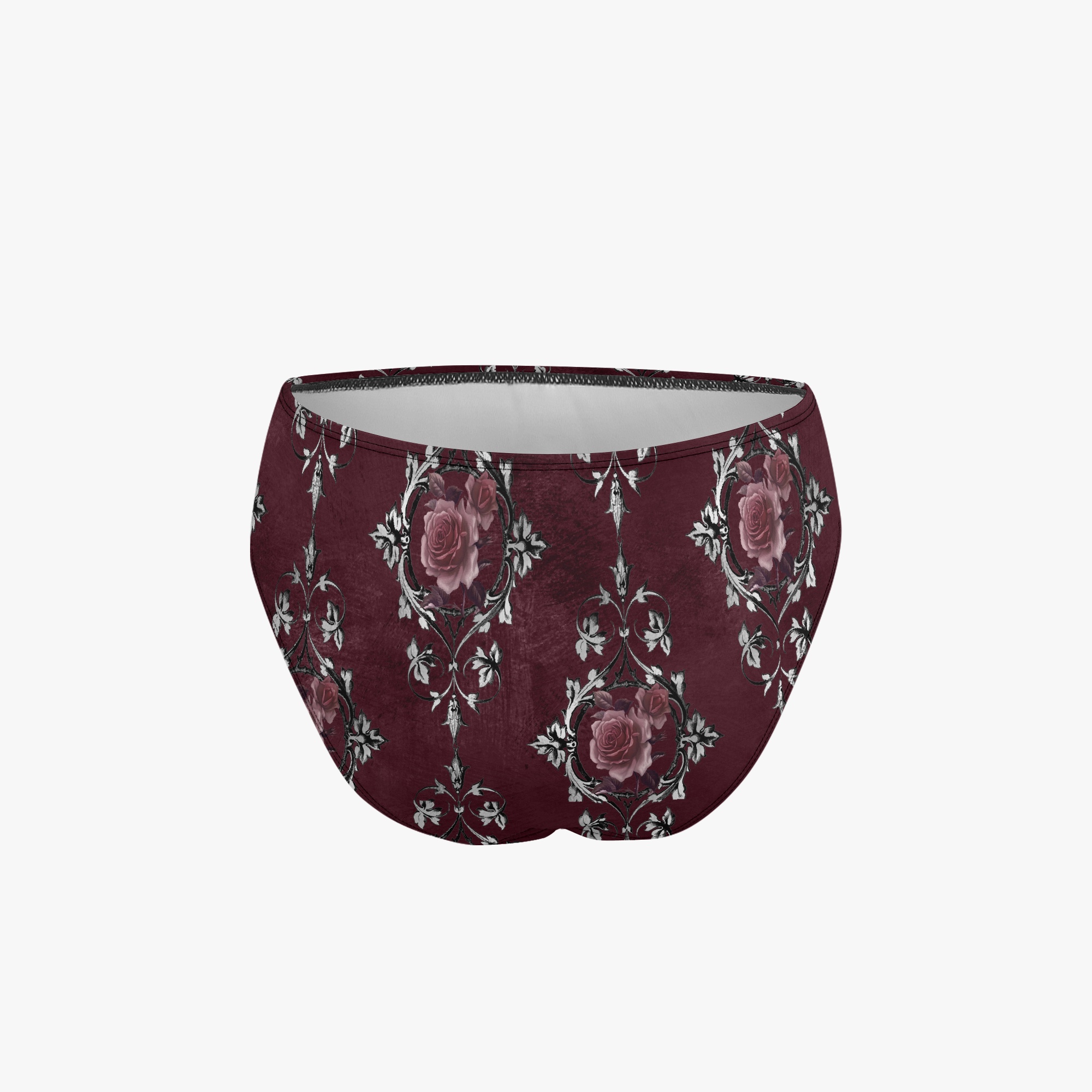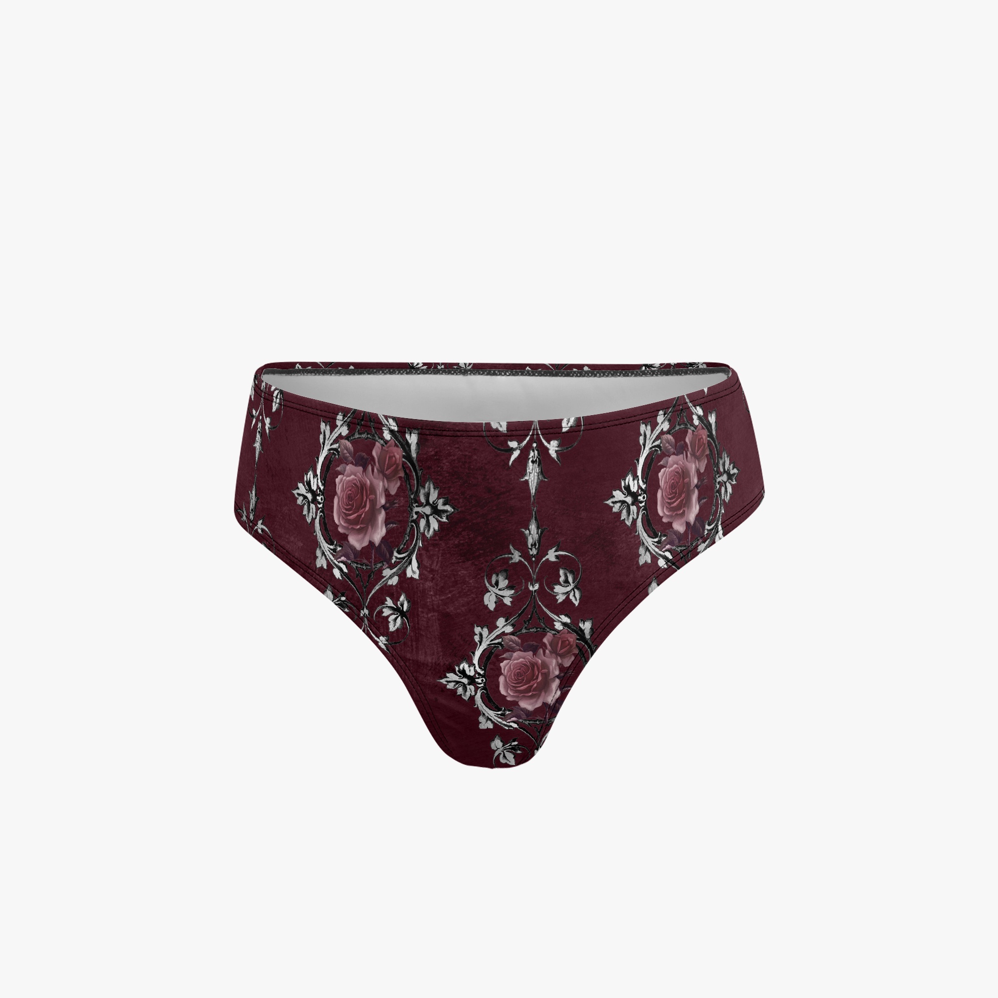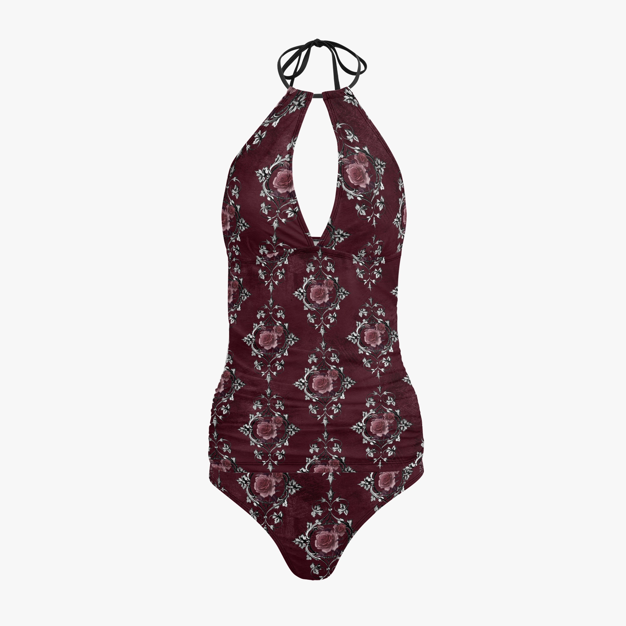 Stressed Burgundy & Rose Collection – Halter Top Two-Piece Tankini Swimsuit Burgundy with Pink Rose Damask