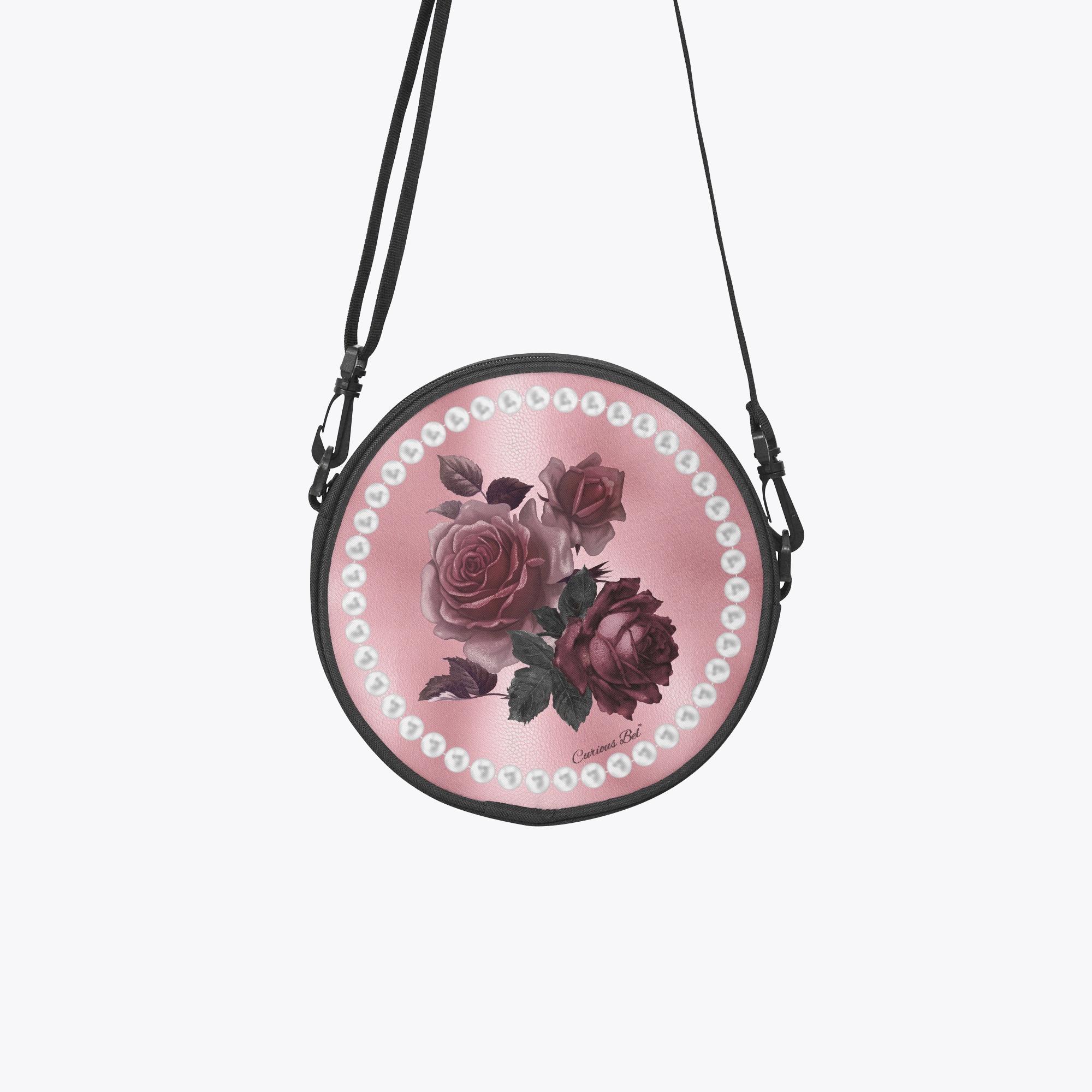 Pink Bordeaux Collection – Round Satchel Bag Pink with White Pearl