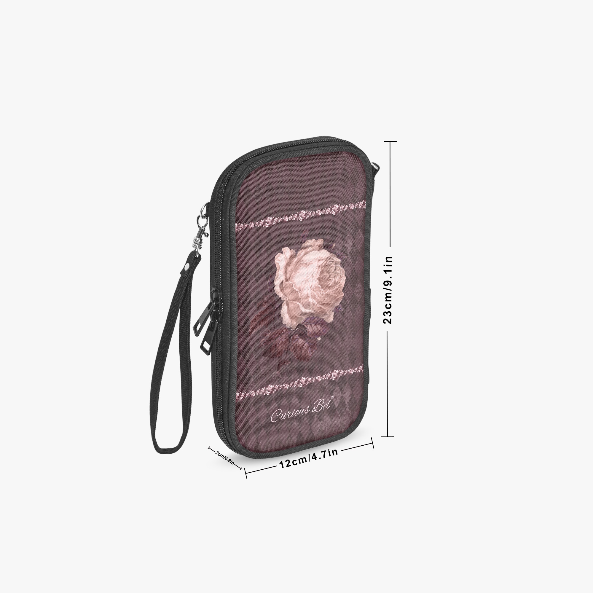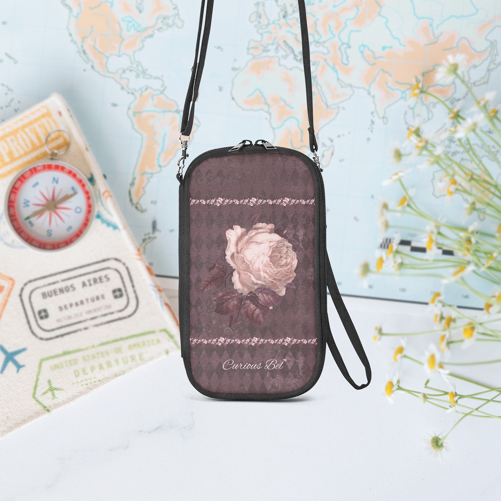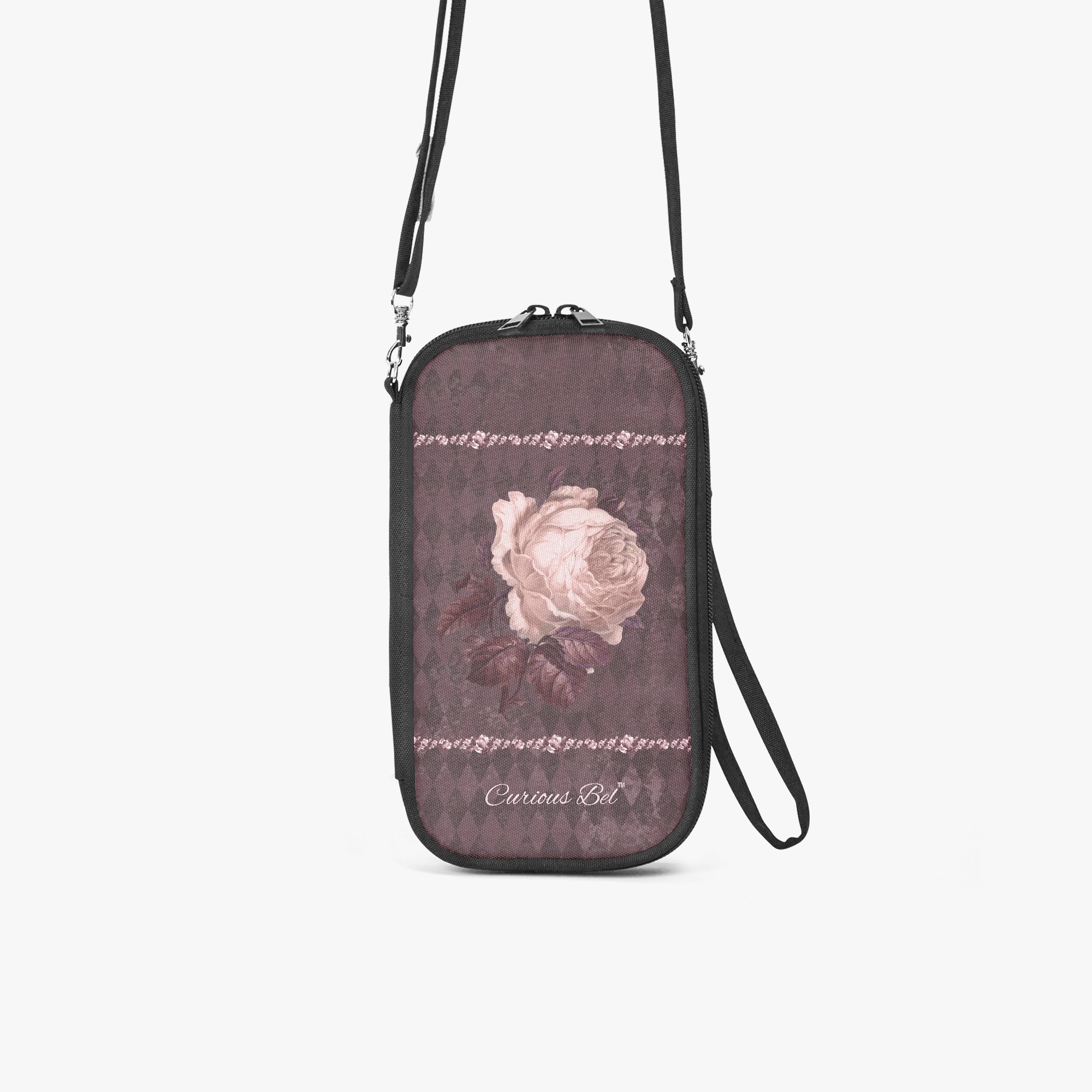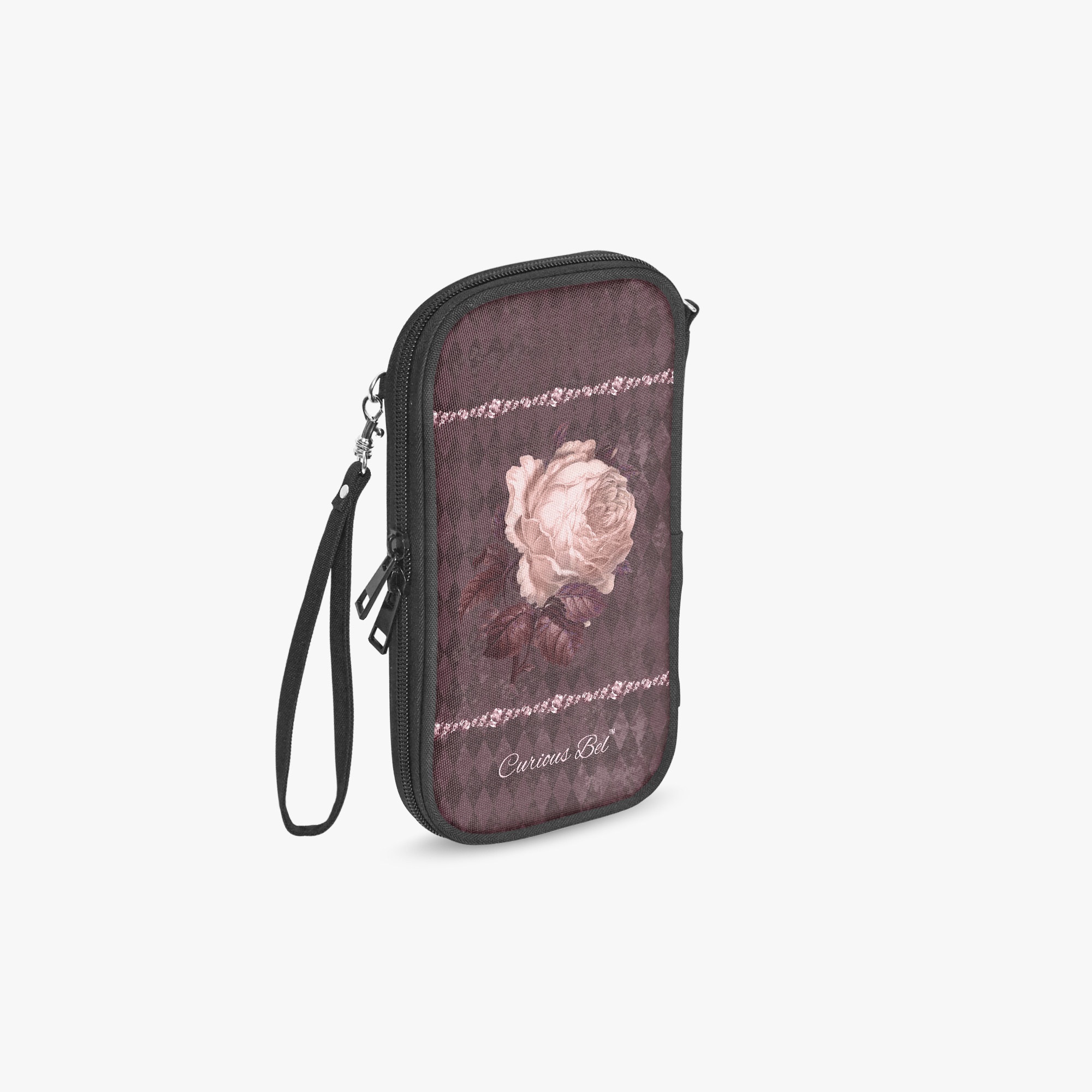 Stressed Burgundy & Rose Collection – Shoulder Strap Wallet Burgundy with Pink Rose