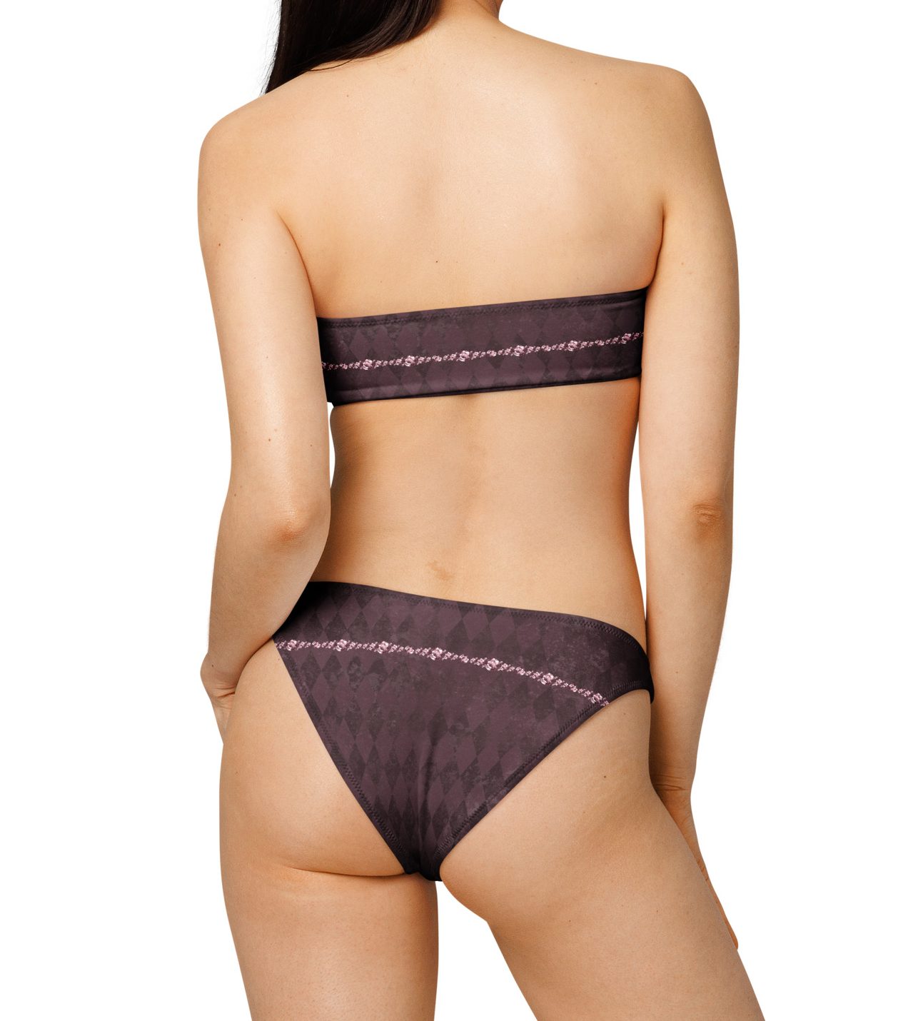 Stressed Burgundy & Rose Collection – Two-Piece Bandeau Bikini Stressed Burgundy with Pink Rose