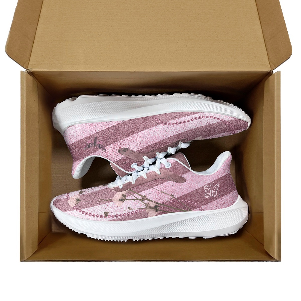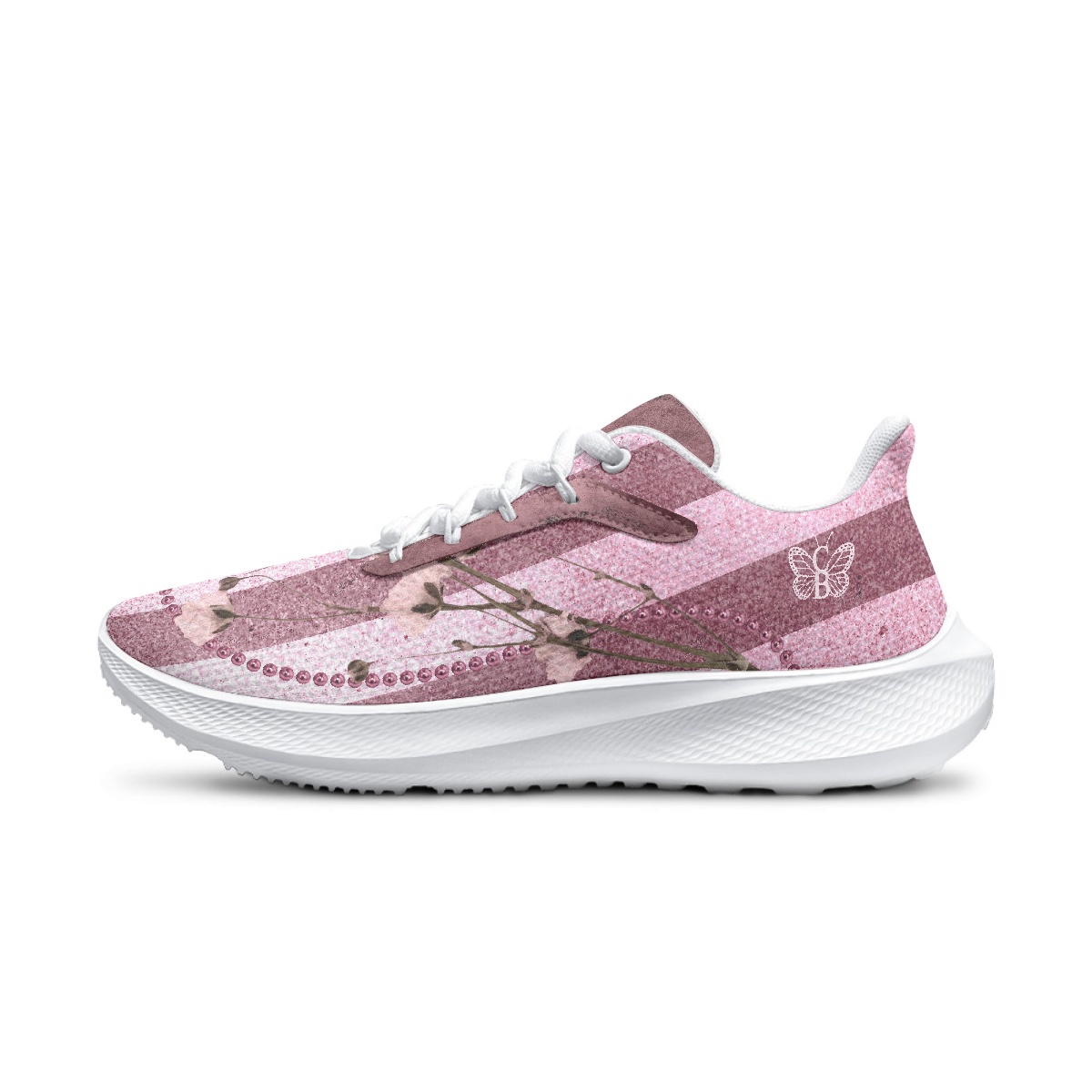 Pink Bordeaux Collection – Waving Running Shoes with Rose Stripes