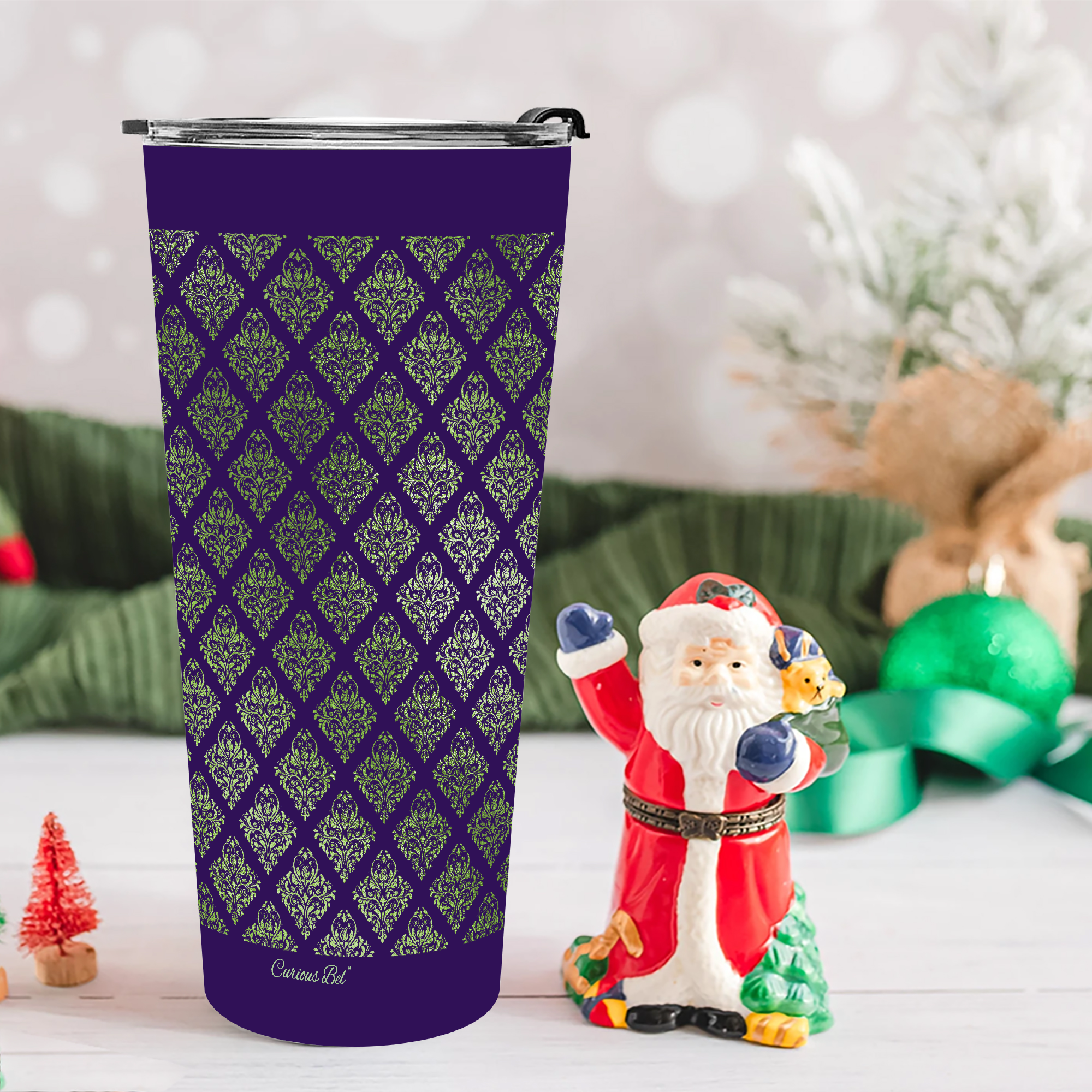 Indigo Viridescent Collection – 30oz Straight Tumbler Deep Indigo and Sage Damask