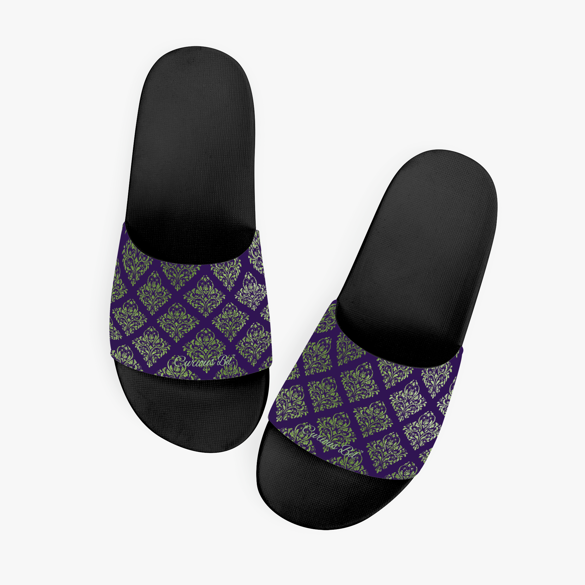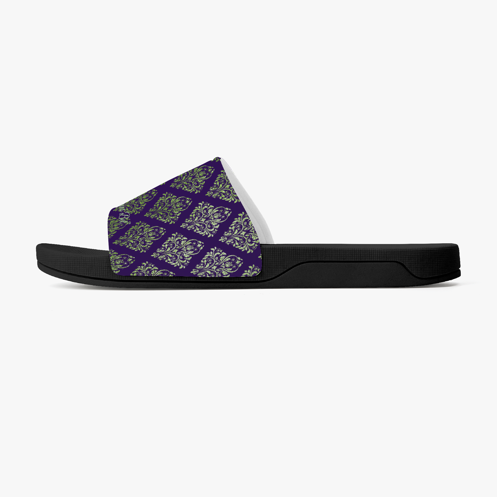 Indigo Viridescent Collection – Black Slide Sandals Deep Indigo Damask