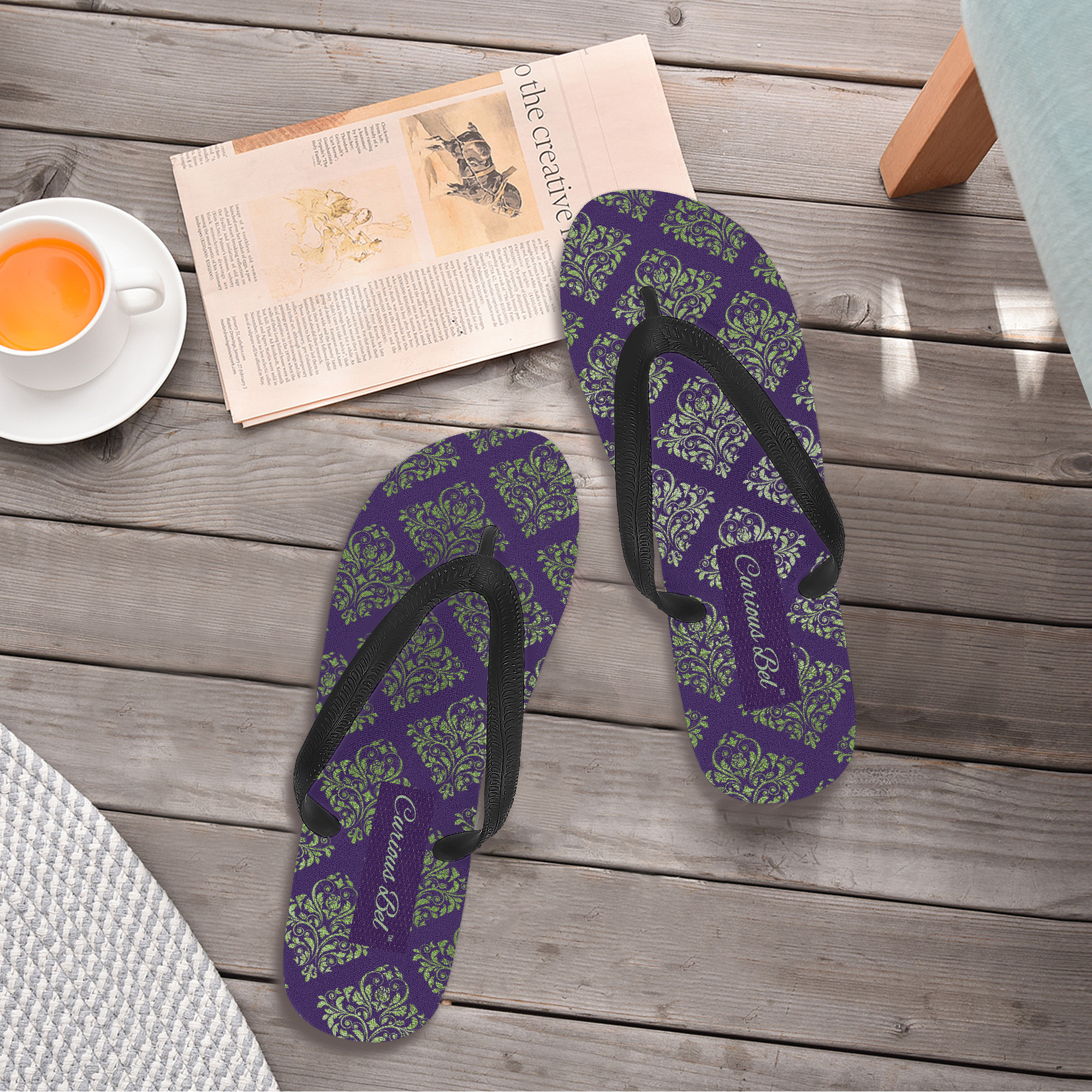 Indigo Viridescent Collection – Classic Flip Flops Deep Indigo Damask