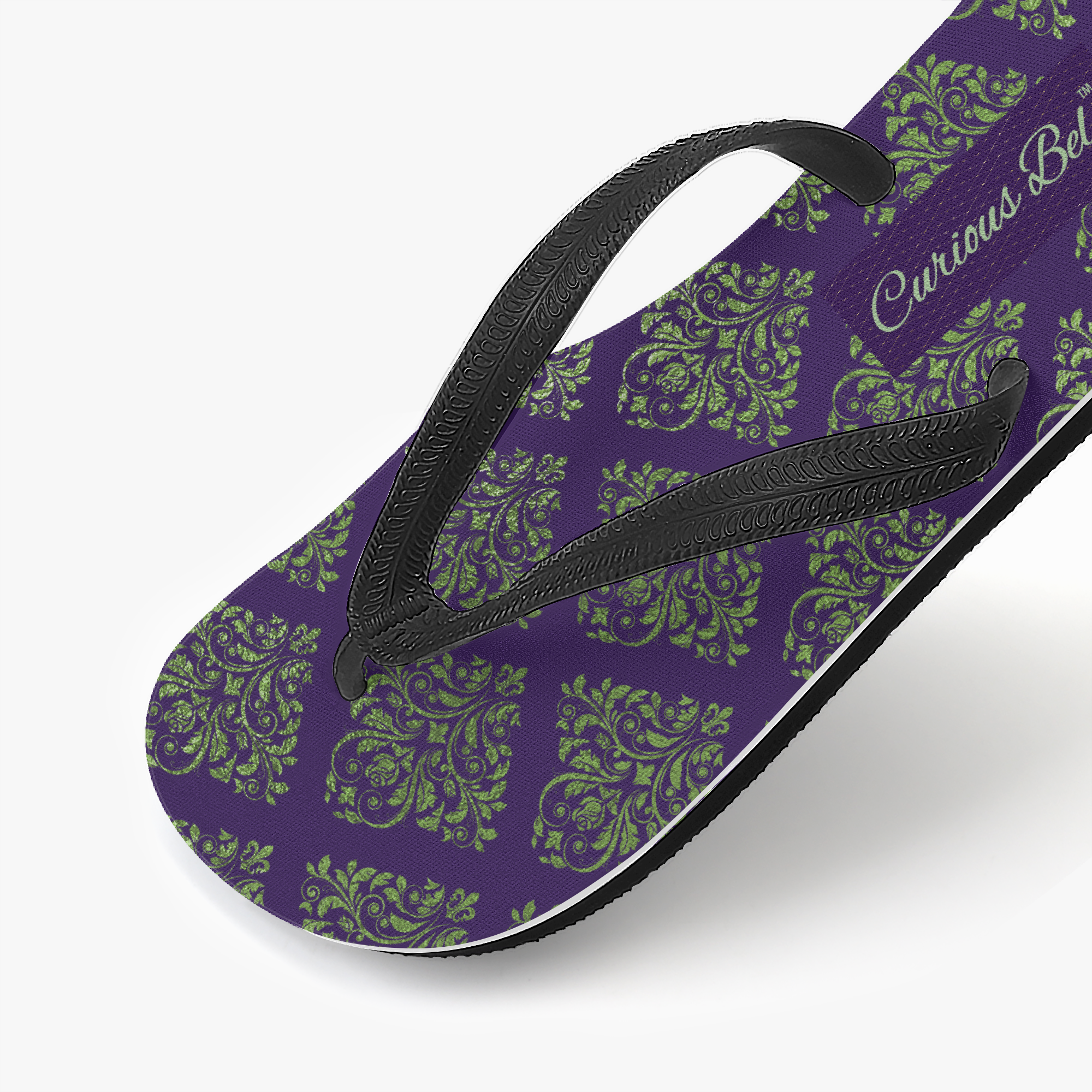 • Textured black thong strap.