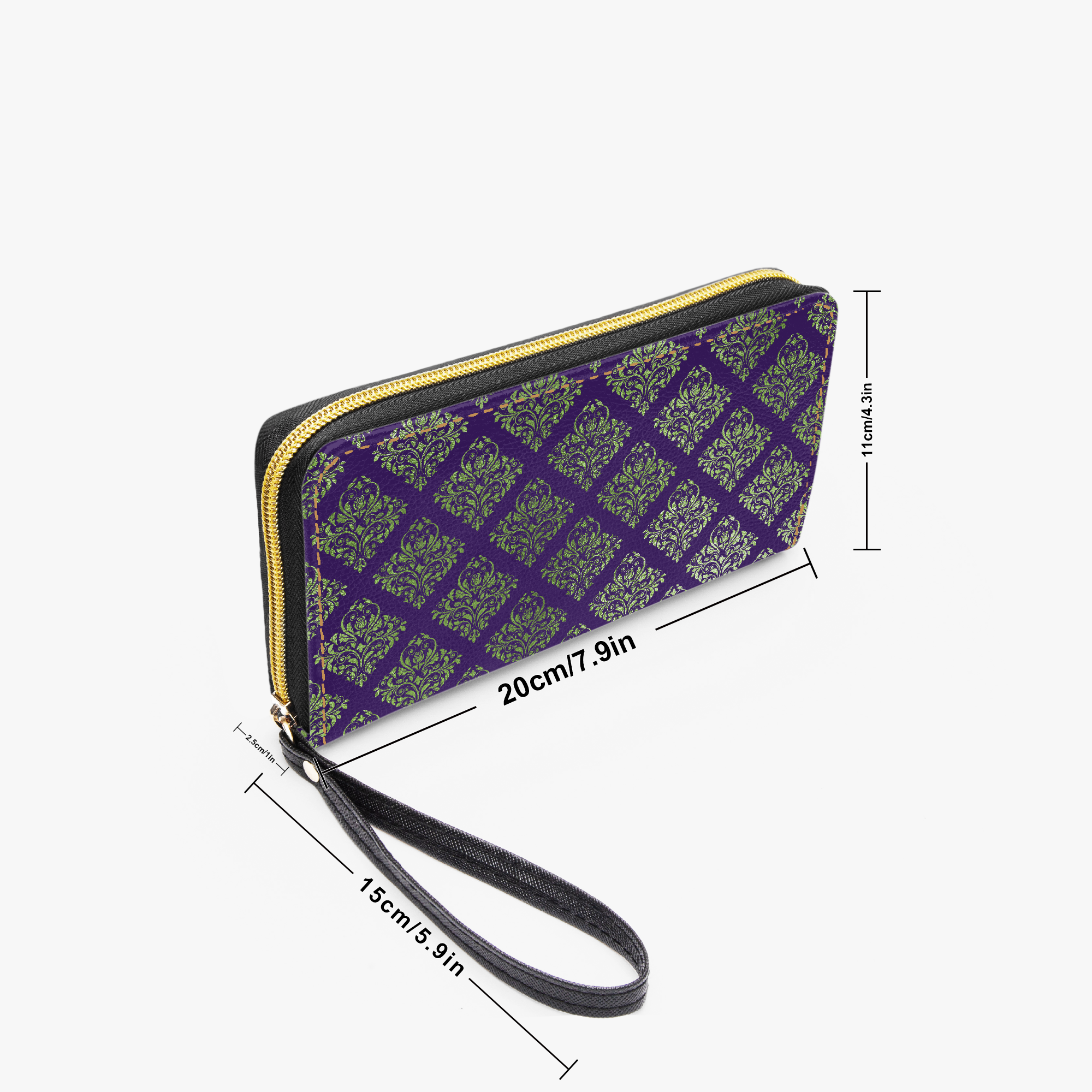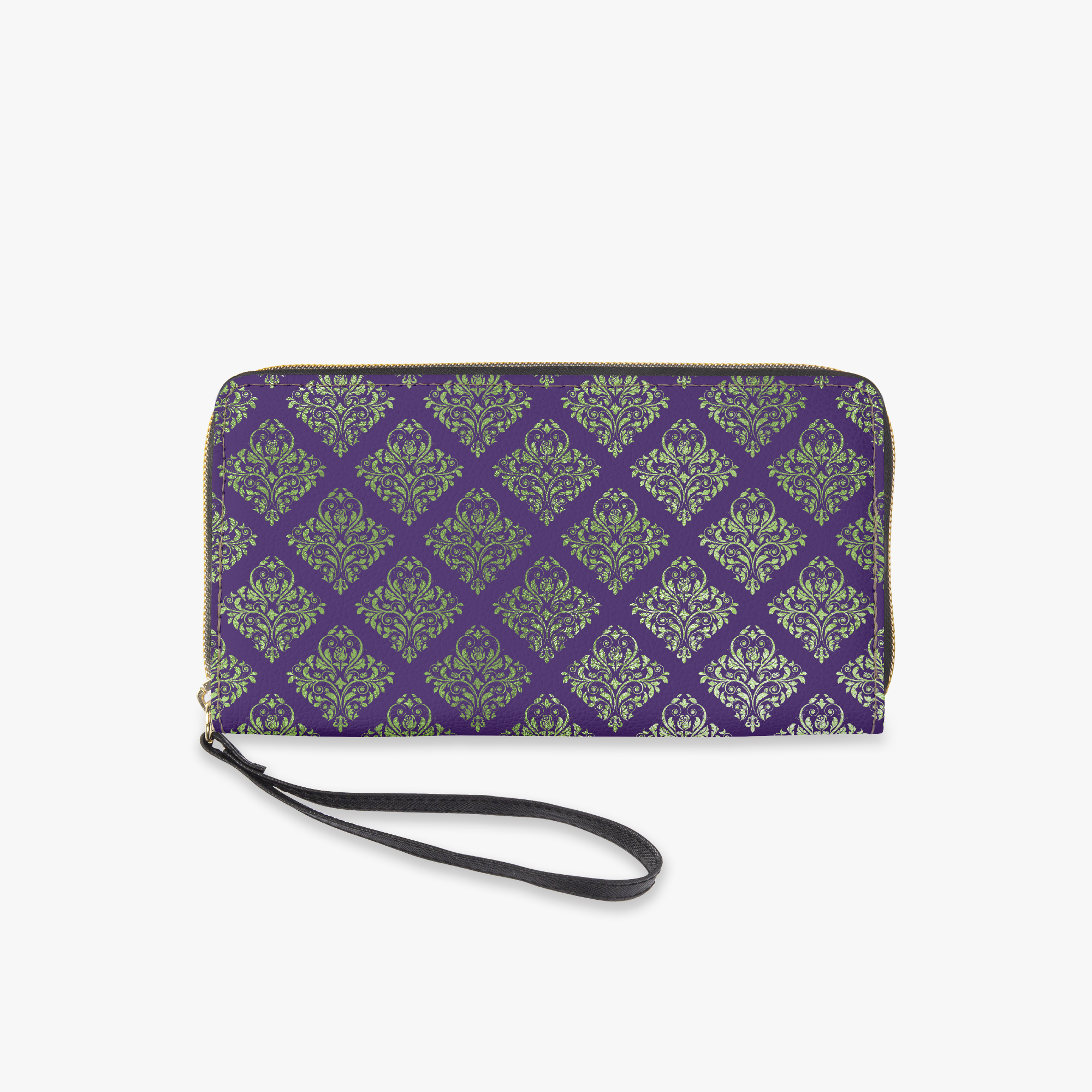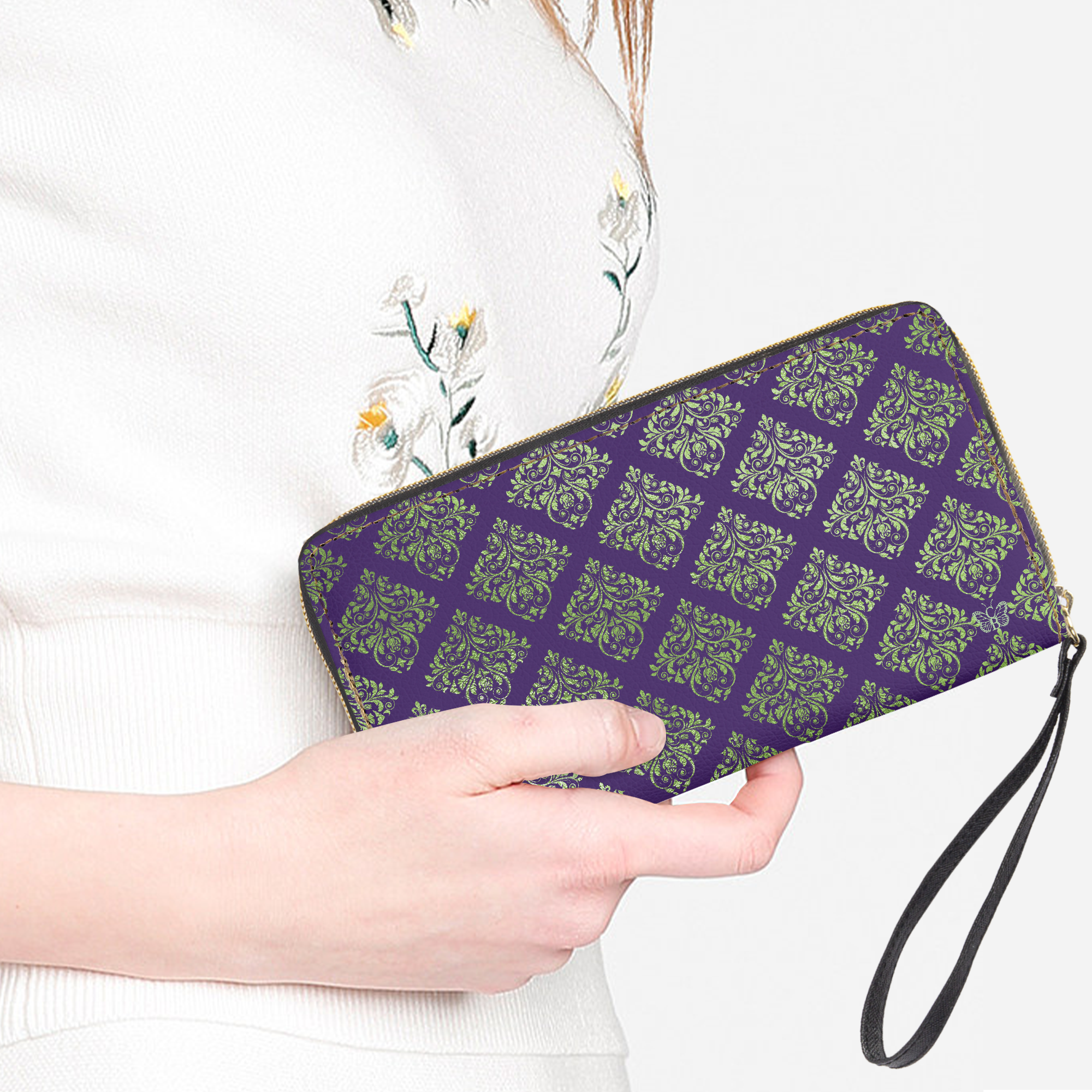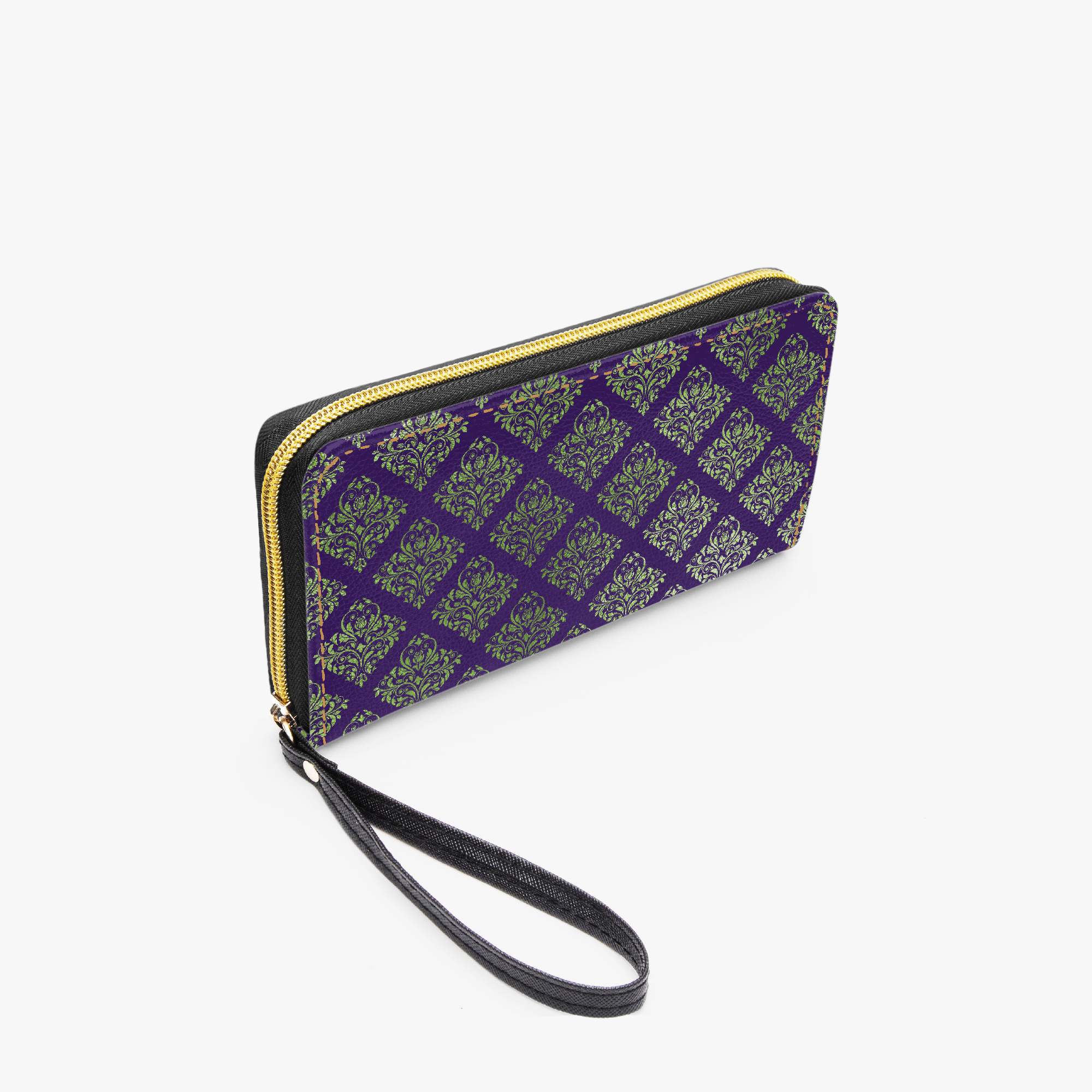 Indigo Viridescent Collection – Faux Leather Wristlet Clutch Wallet Deep Indigo Damask
