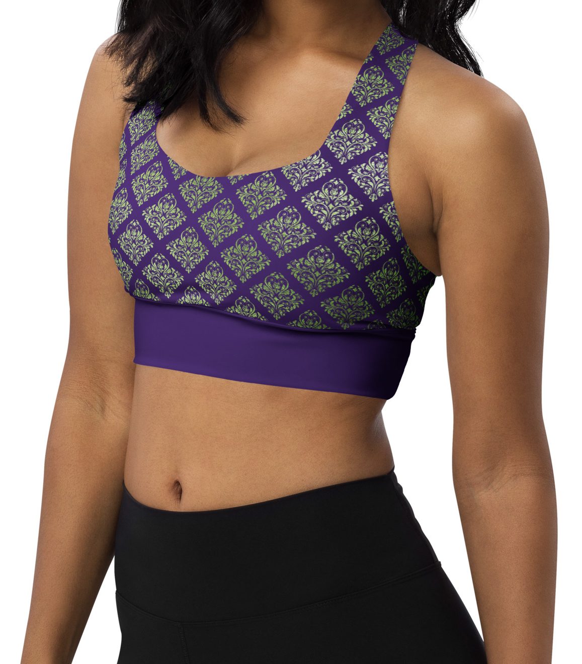 Indigo Viridescent Collection – Longline Sports Bra Deep Indigo and Sage Damask
