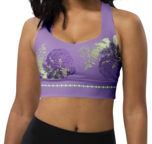 Indigo Viridescent Collection – Padded Sports Bra Deep Indigo and Sage Damask