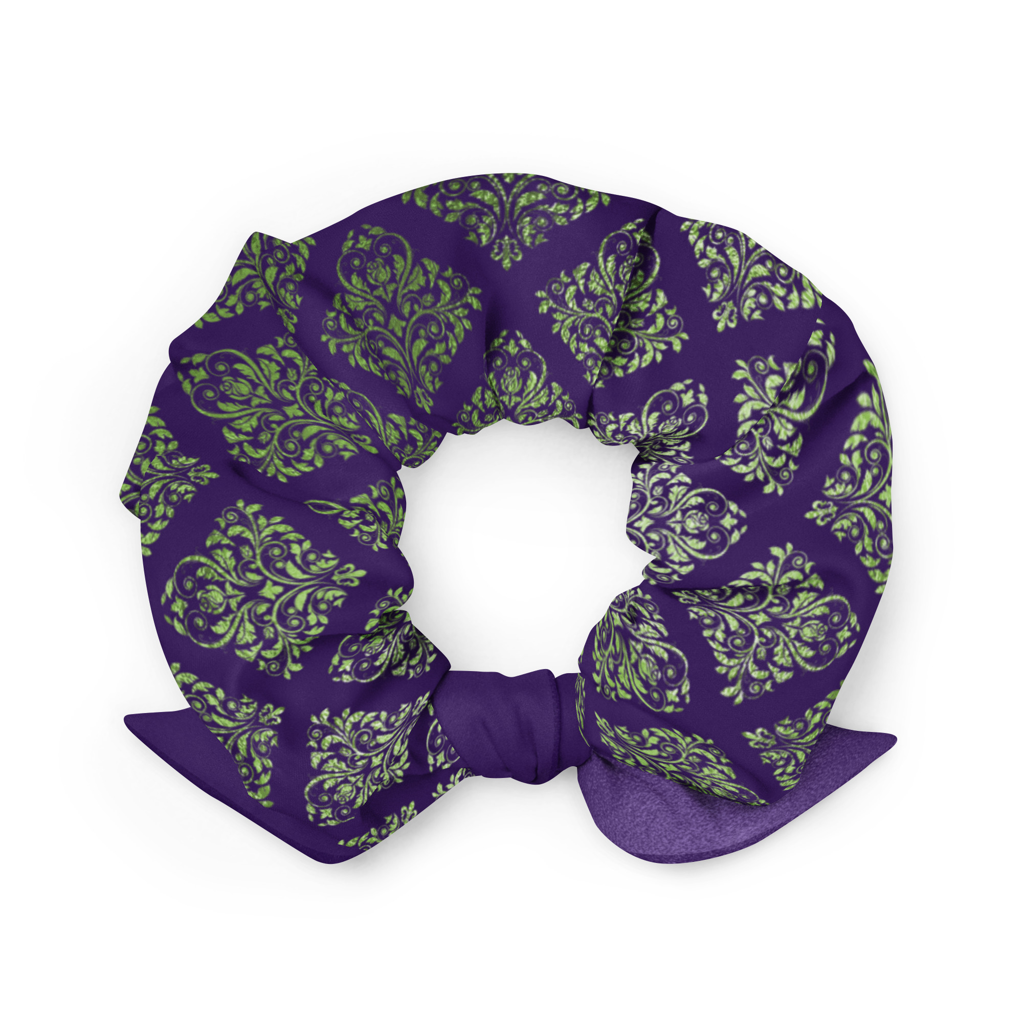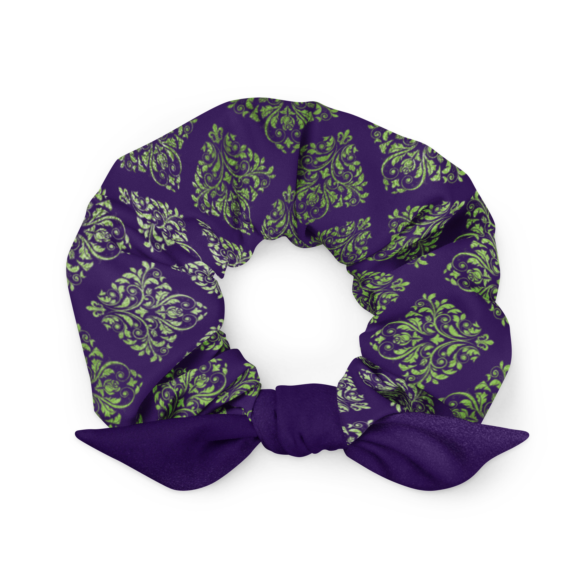 Indigo Viridescent Collection – Scrunchie Deep Indigo and Sage Damask
