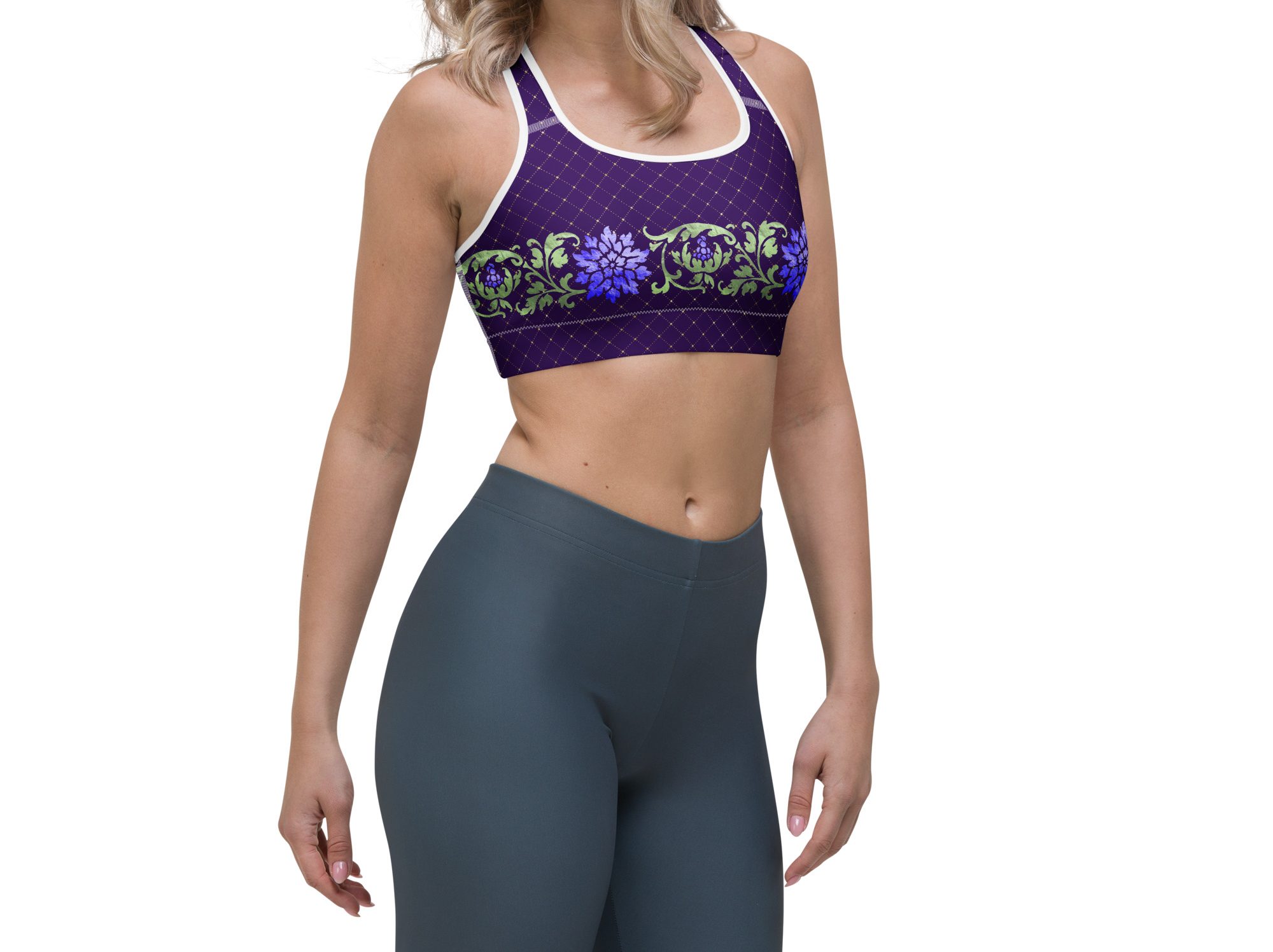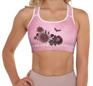 This gorgeous sports bra is made from moisture-wicking material that stays dry during low and medium intensity workouts. The bra has support material in the shoulder straps, double layer front, and a wide elastic band to ensure constant support.