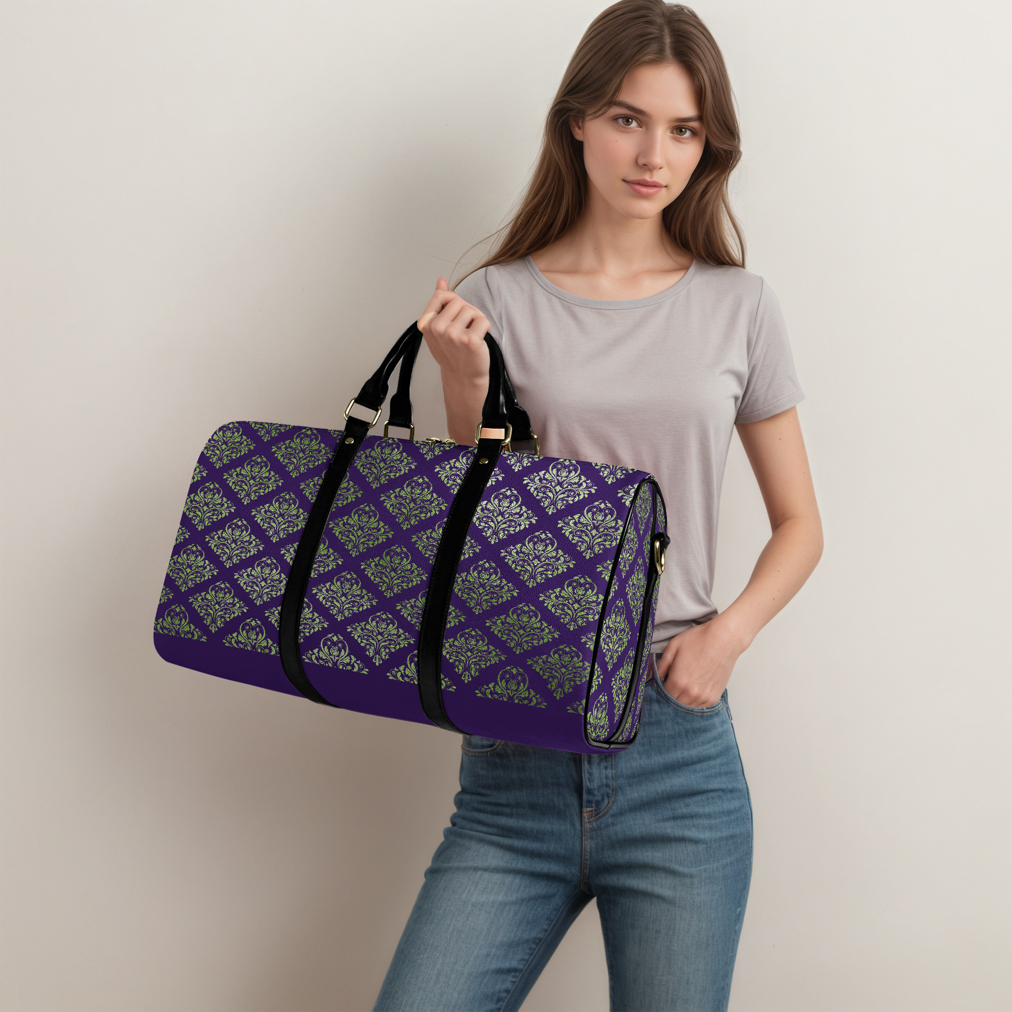 Indigo Viridescent Collection – Travel Duffle Bag Deep Indigo Damask