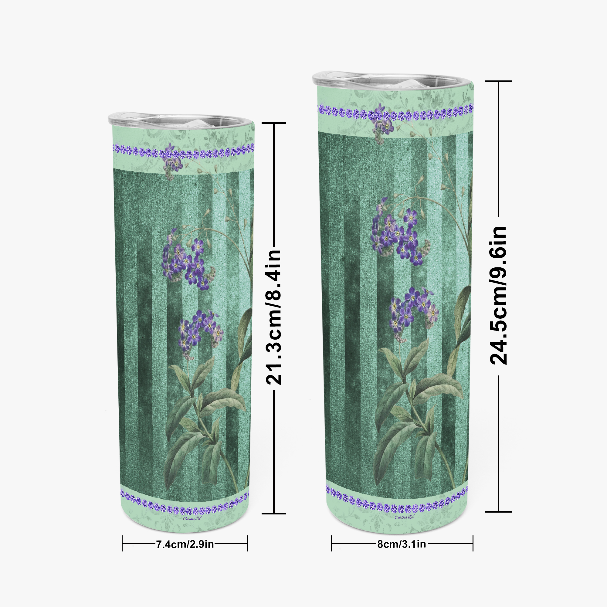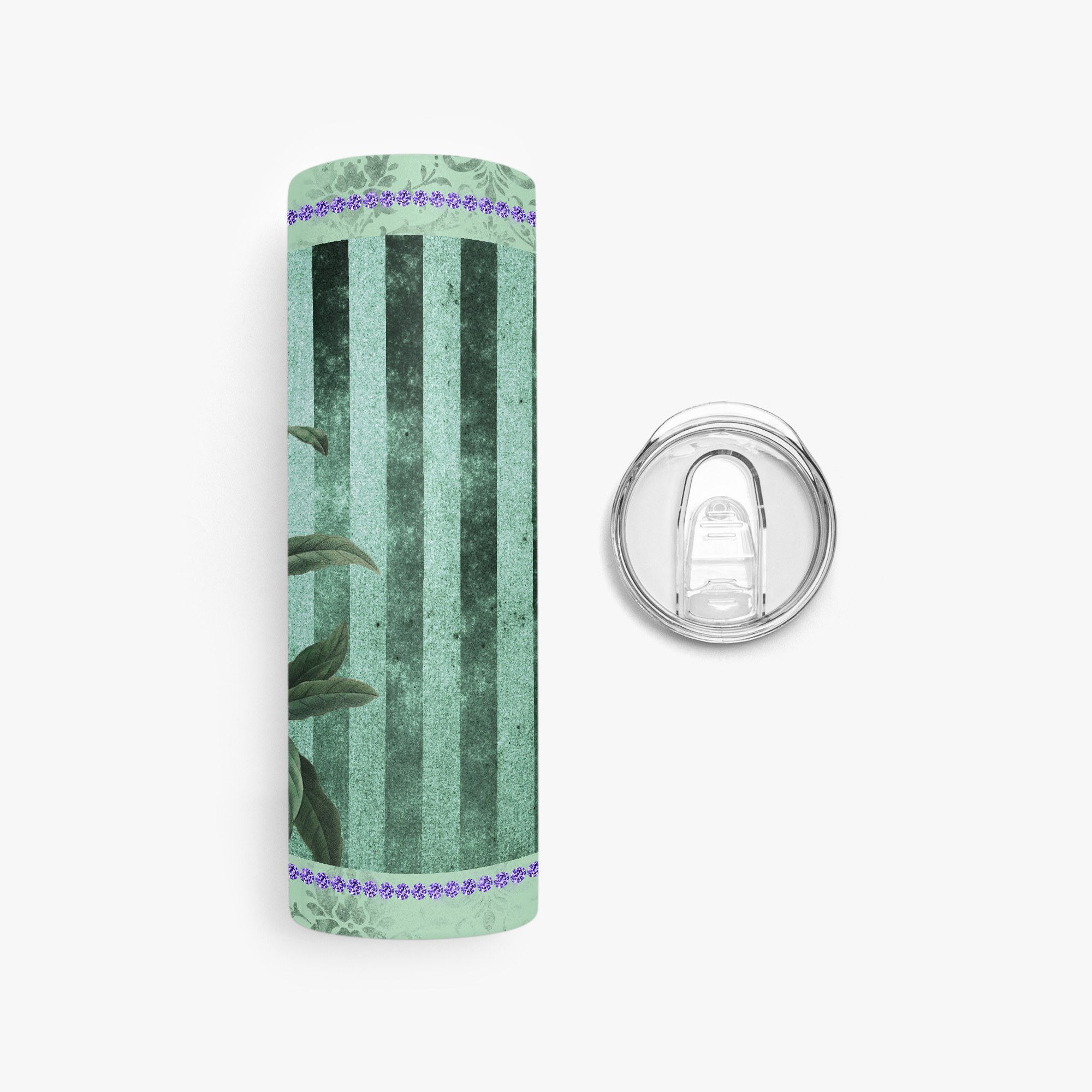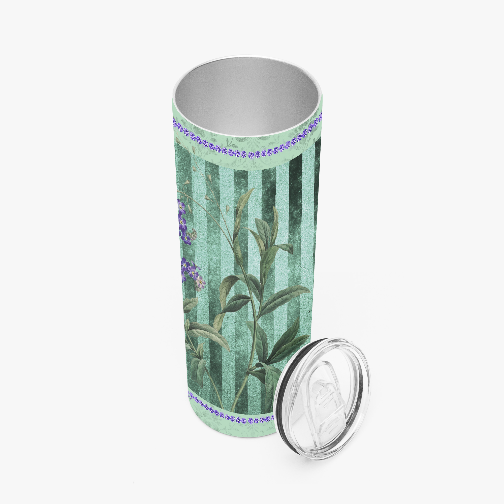 Lavender & Sage Collection – 20oz-30oz Straight Skinny Tumbler with Mint Stripes