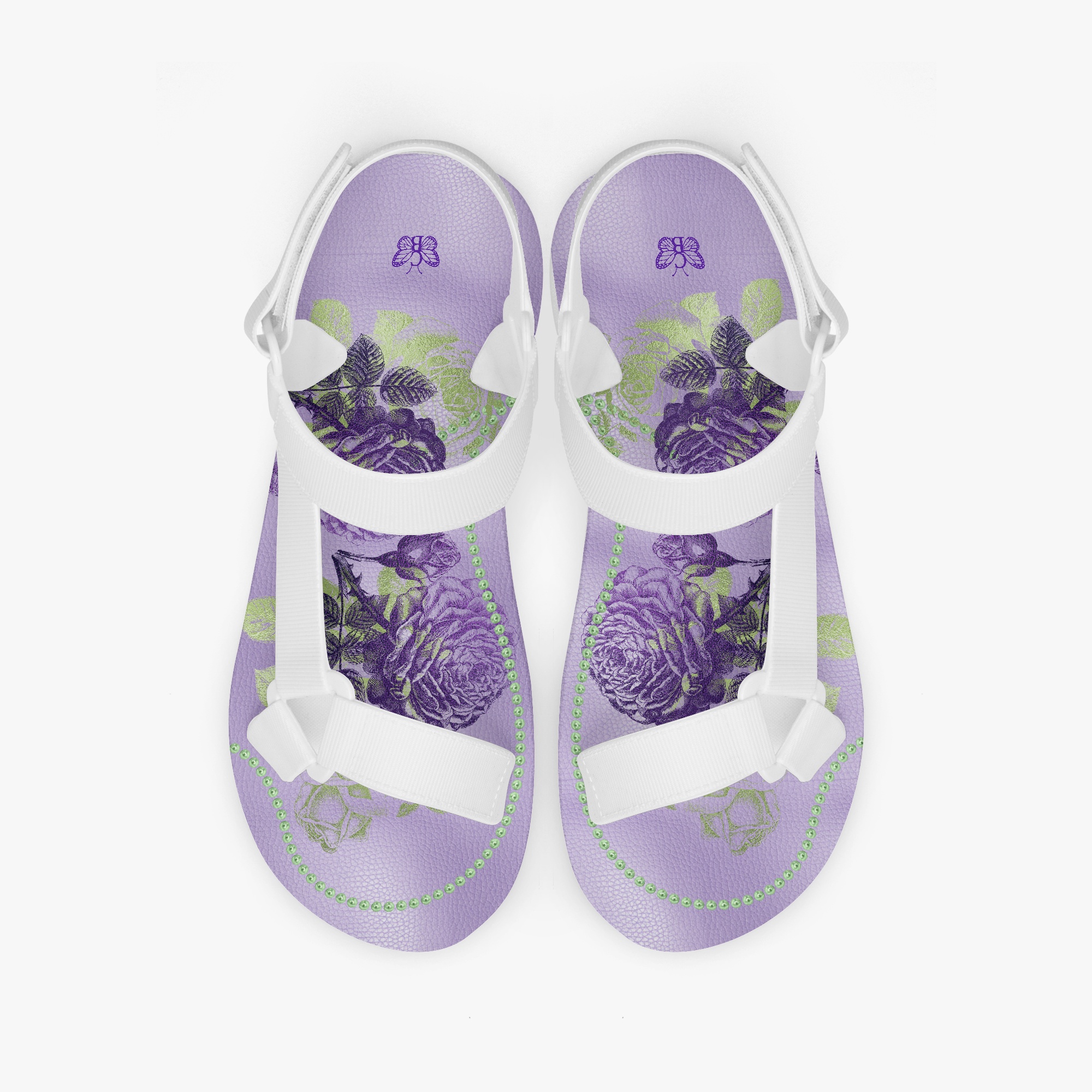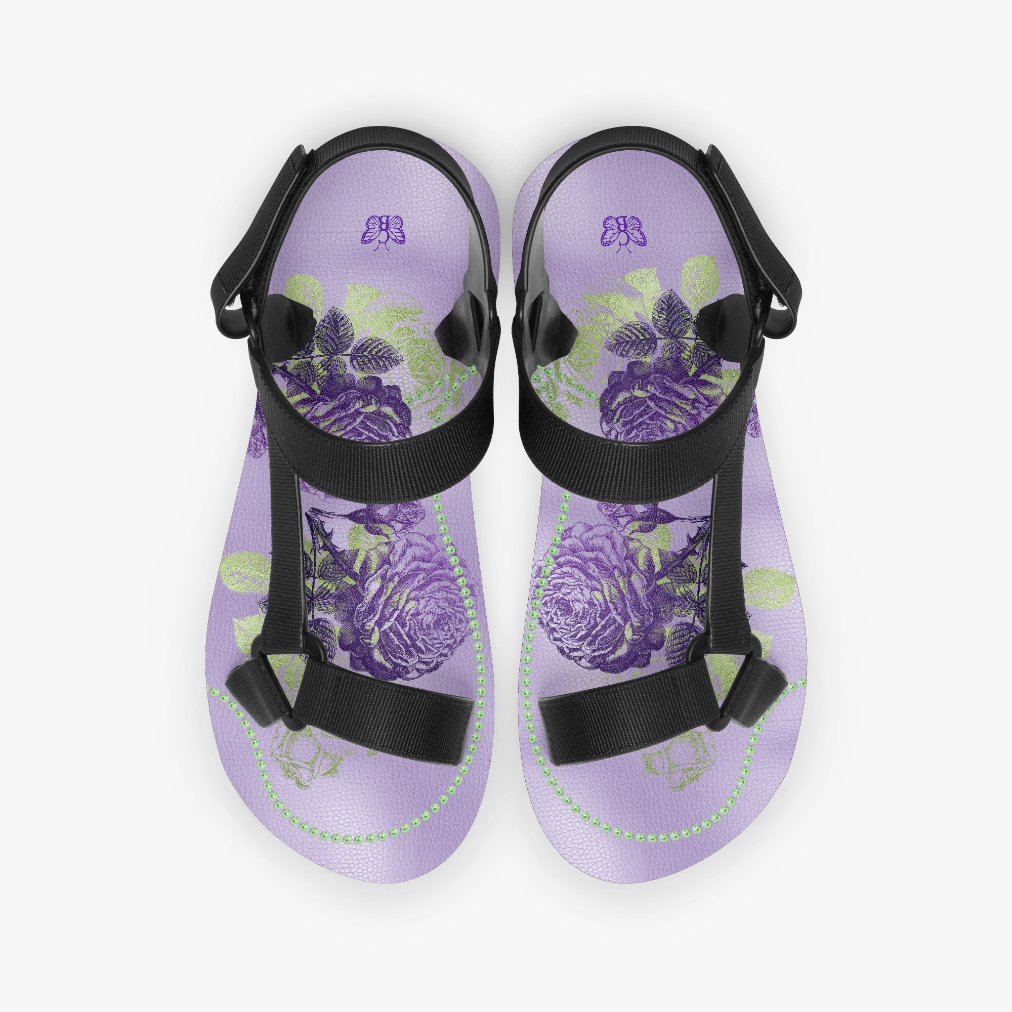 Lavender & Sage Collection – Black or White Strappy Sandals Lavender with Mint Pearl