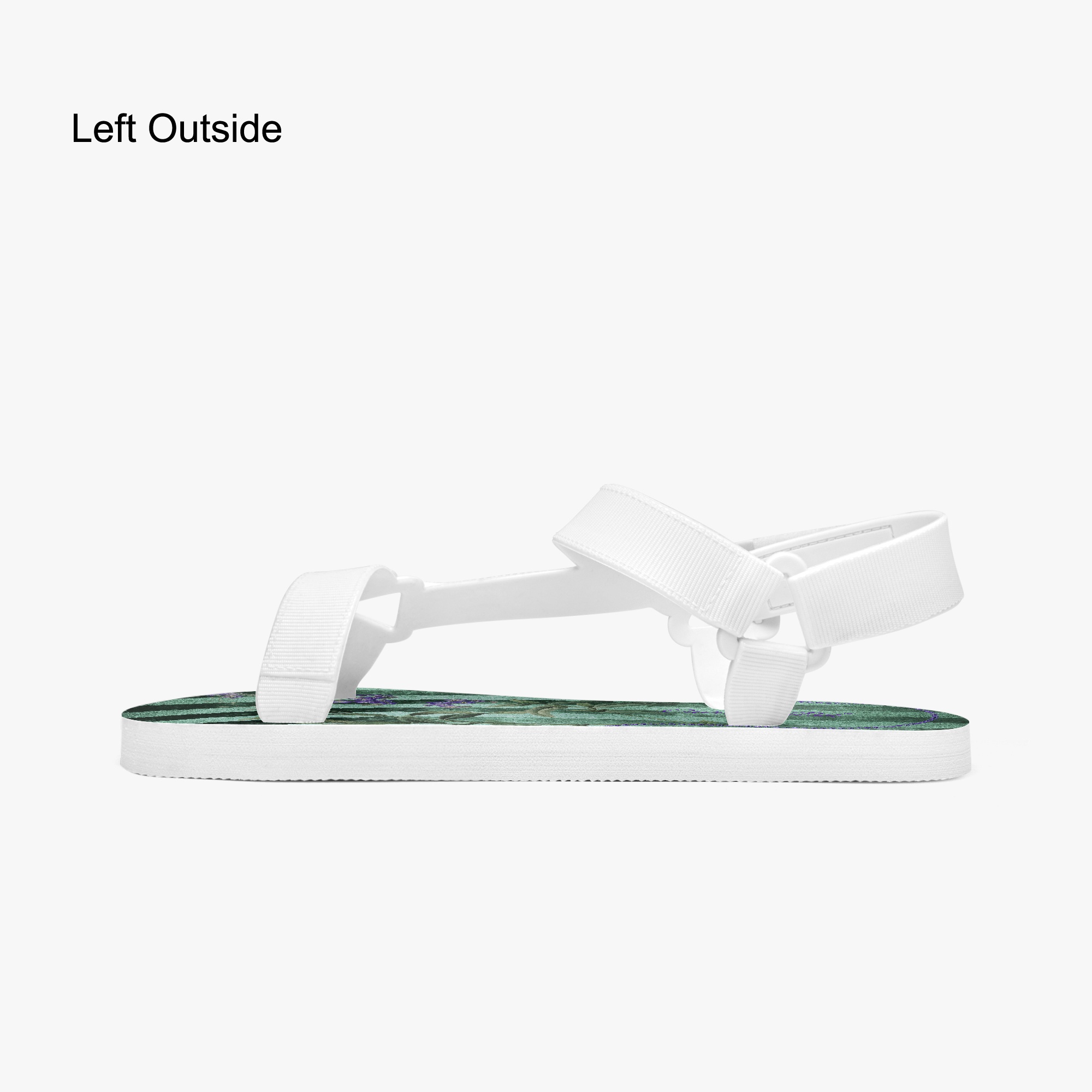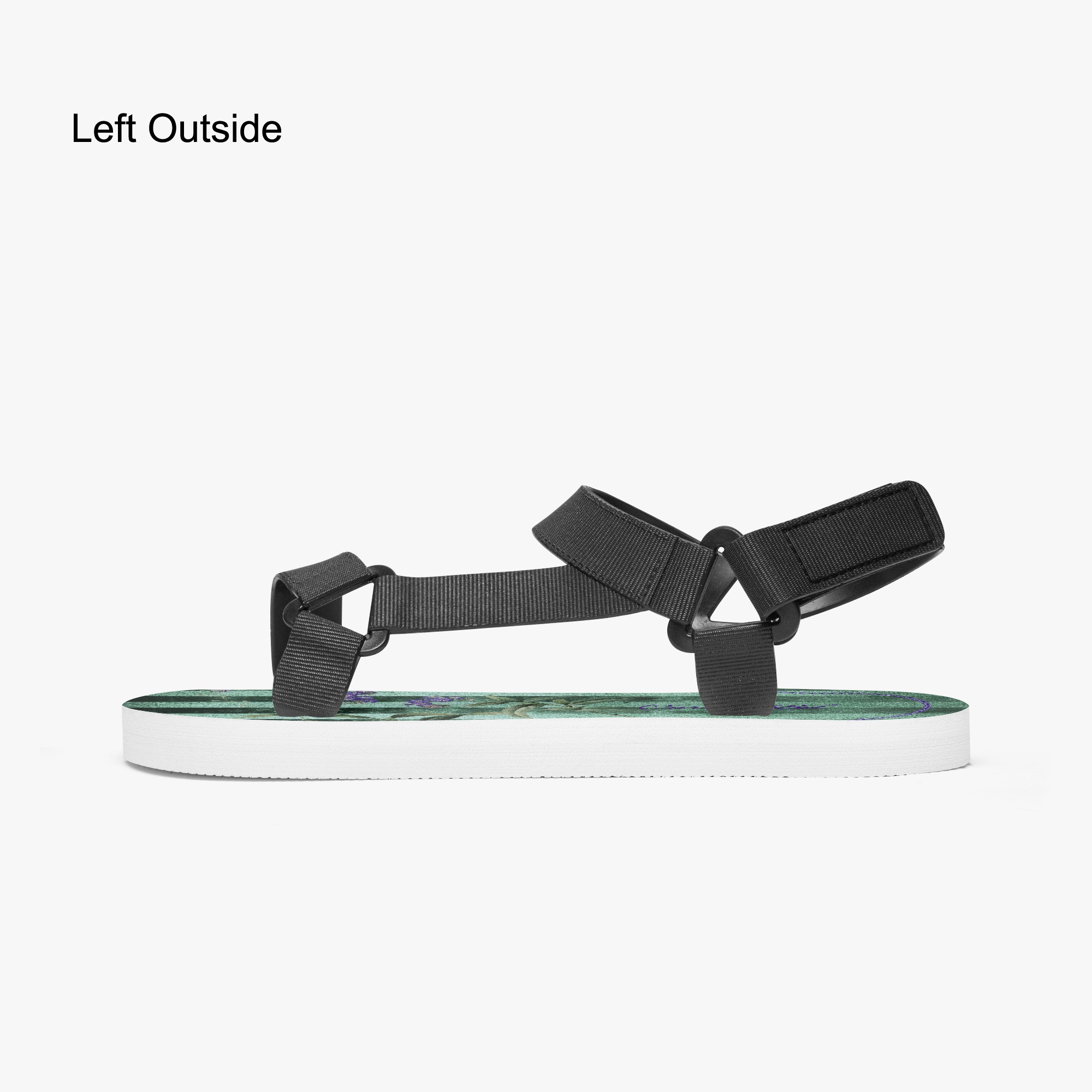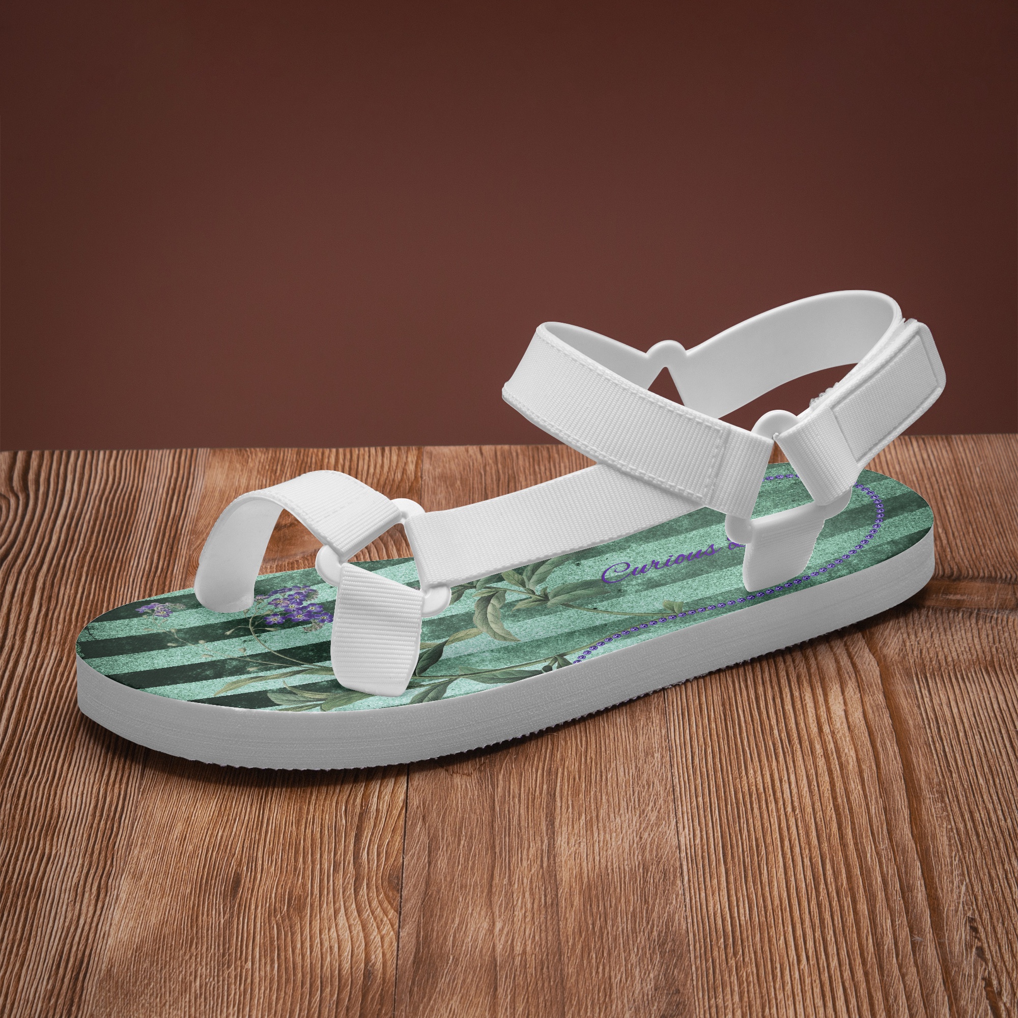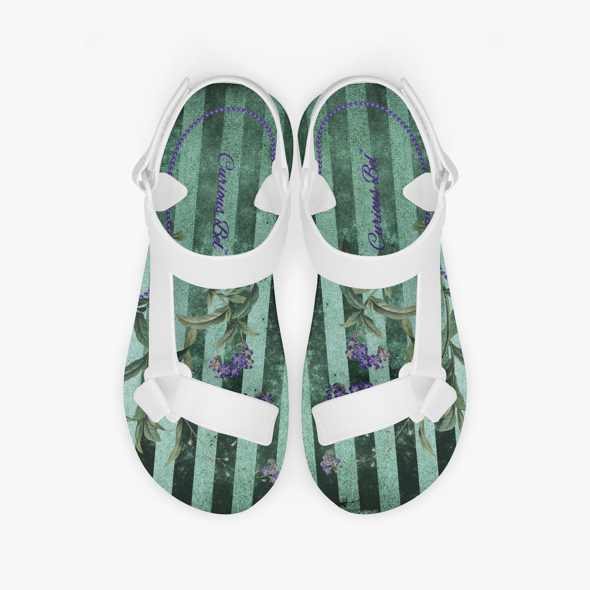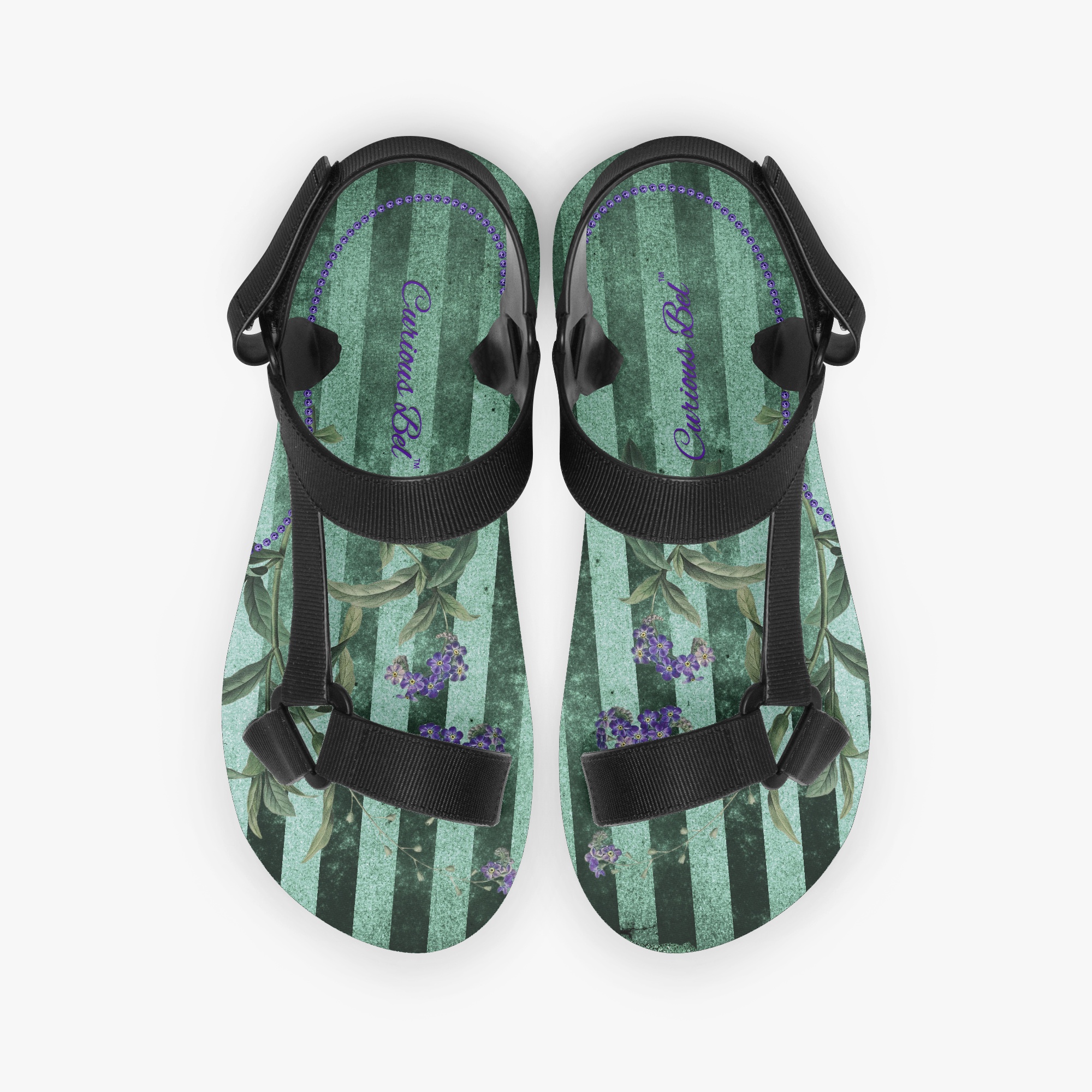 Lavender & Sage Collection – Black or White Strappy Sandals with Mint Stripes