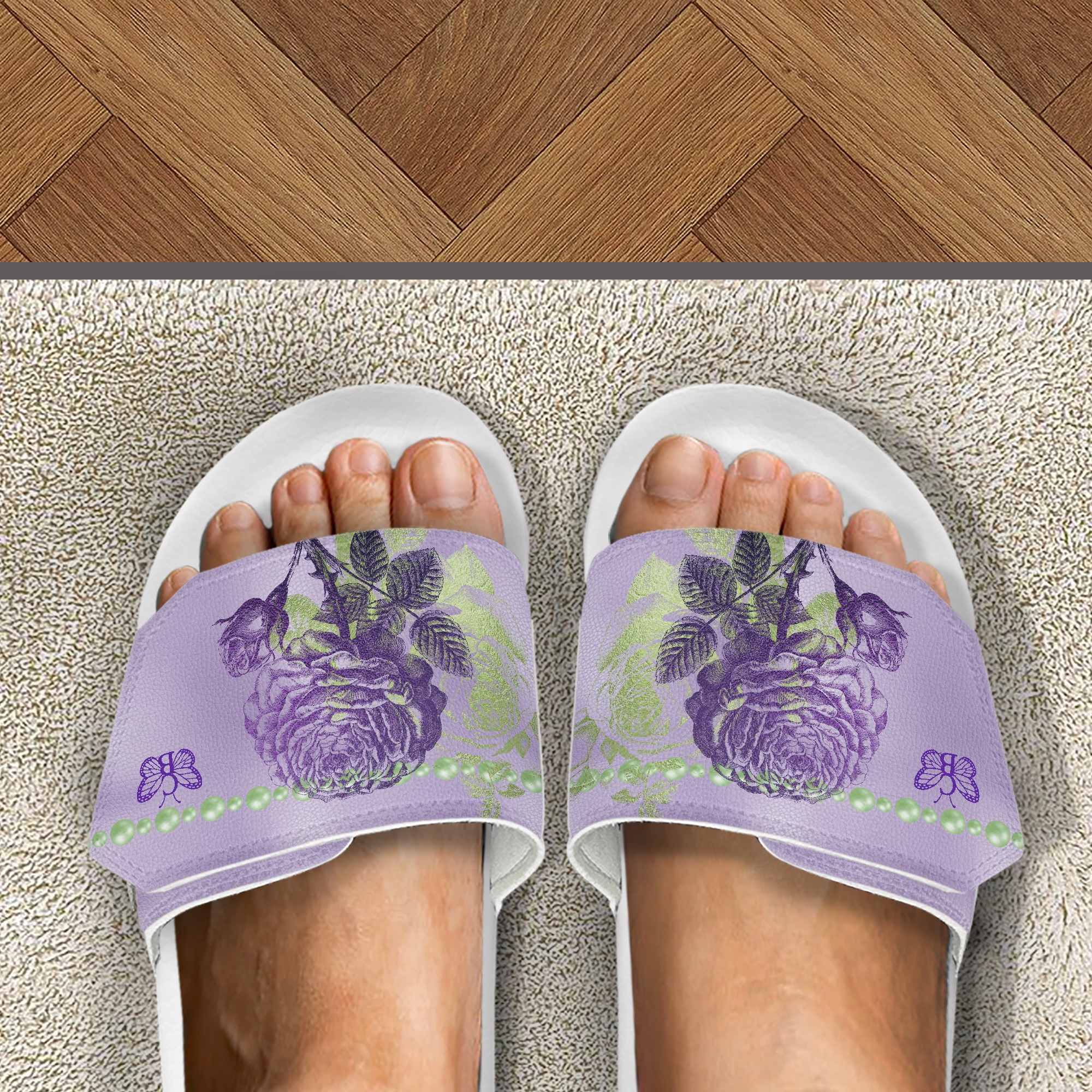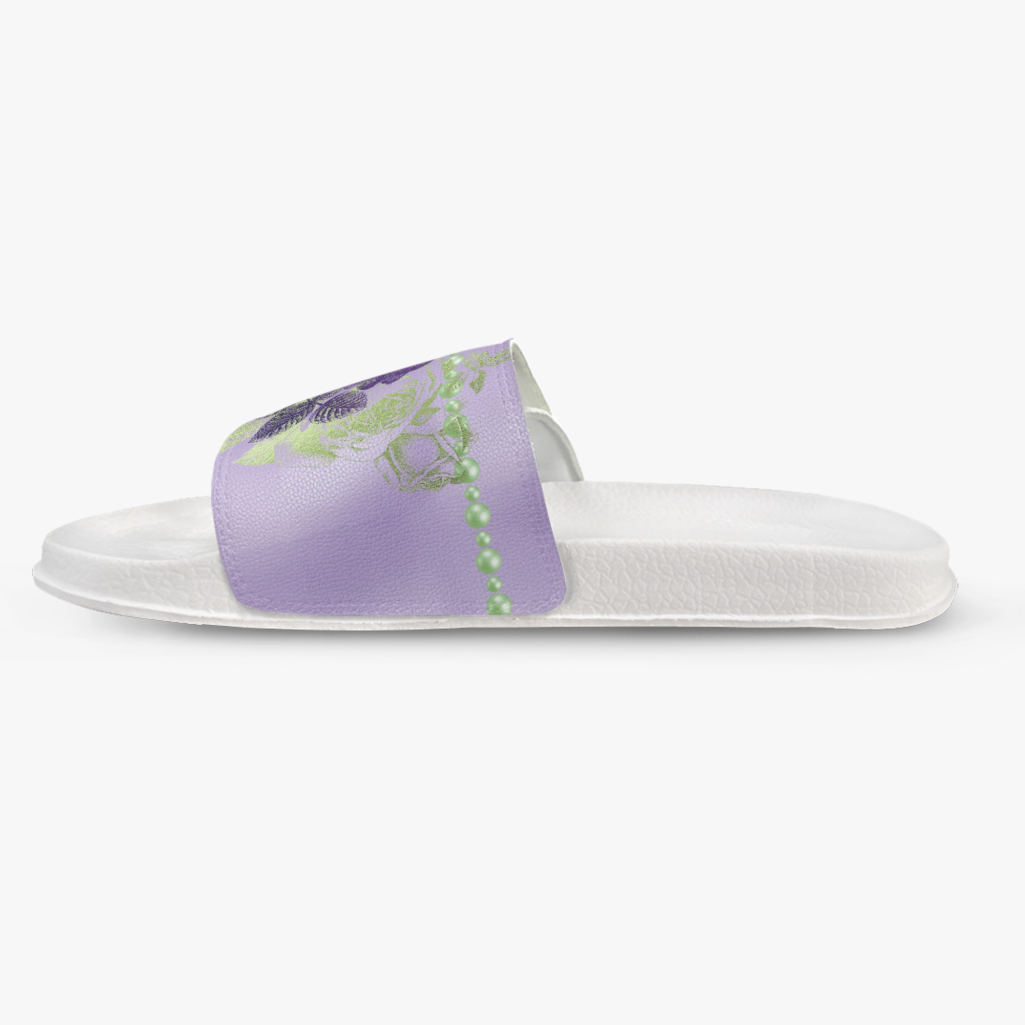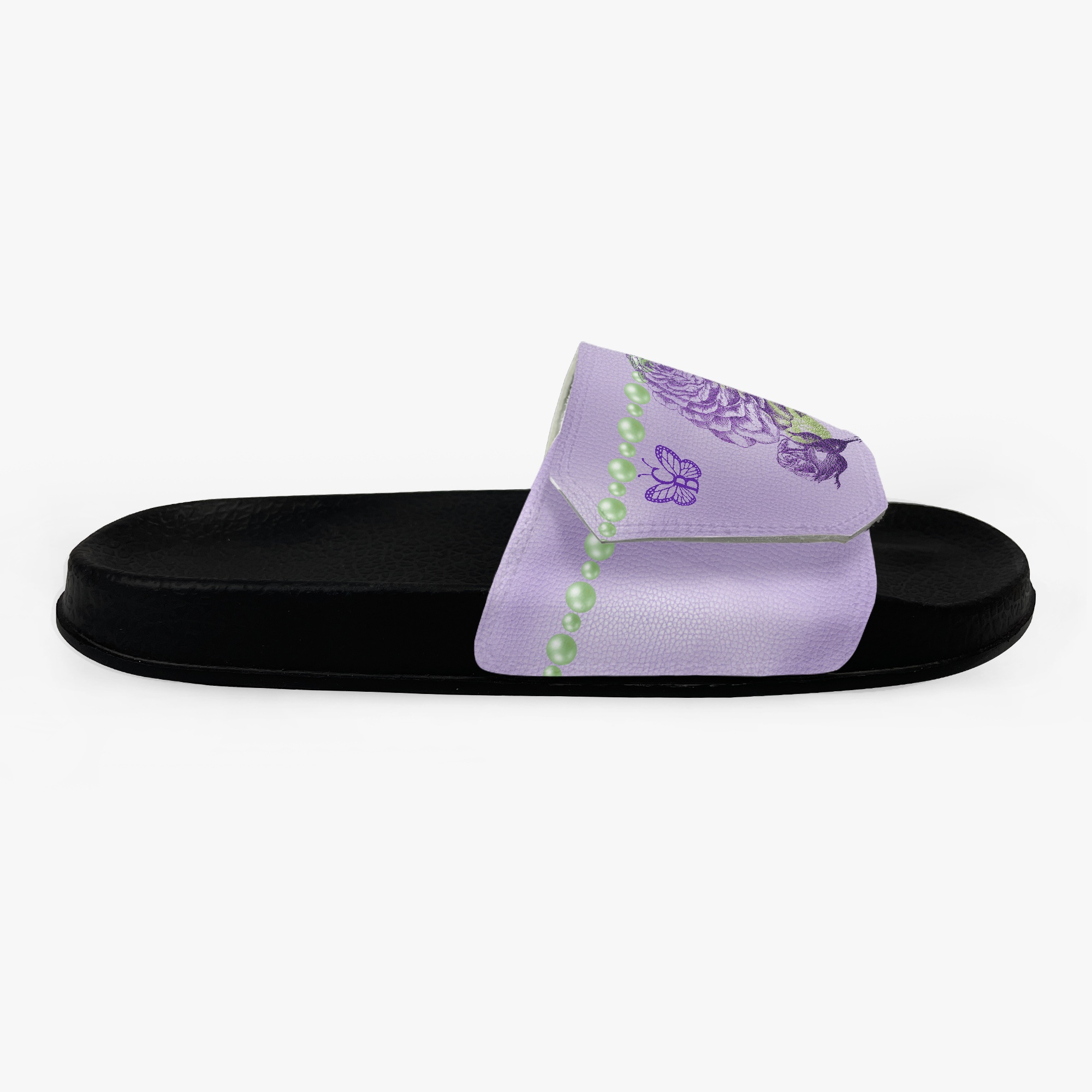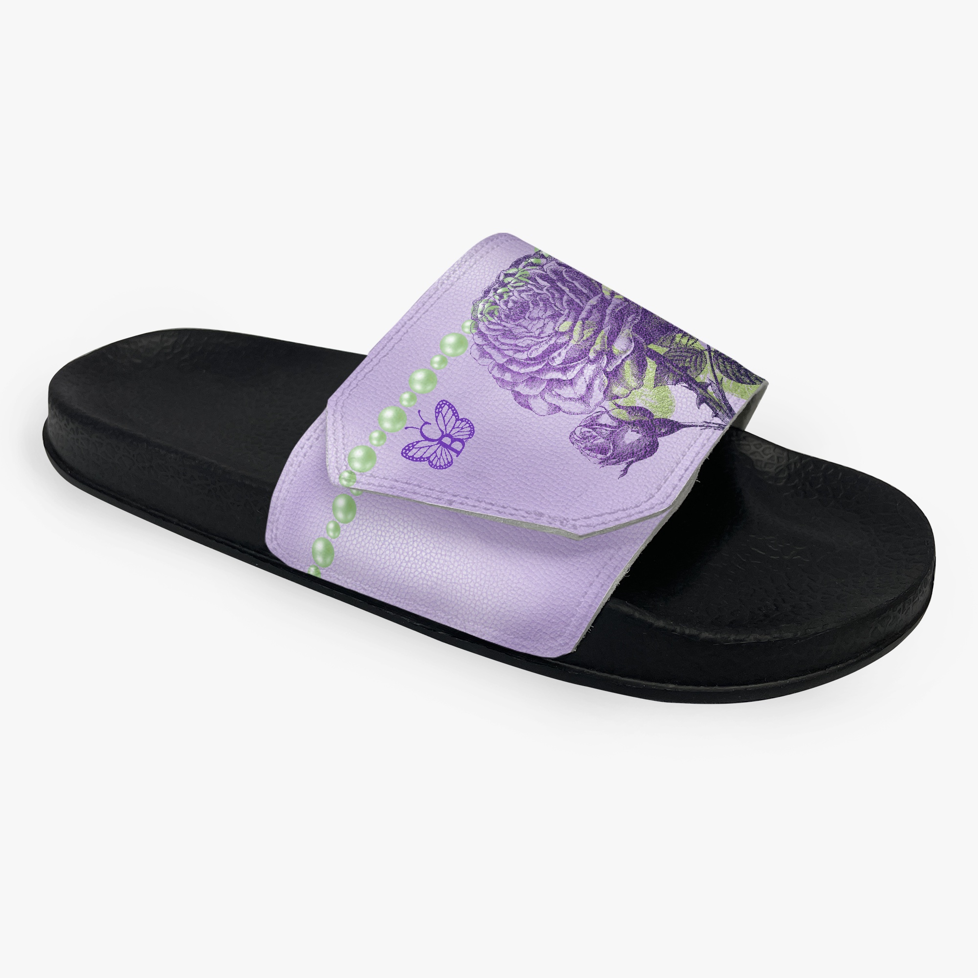 Lavender & Sage Collection – Black or White Velcro Slides Lavender with Mint Pearl