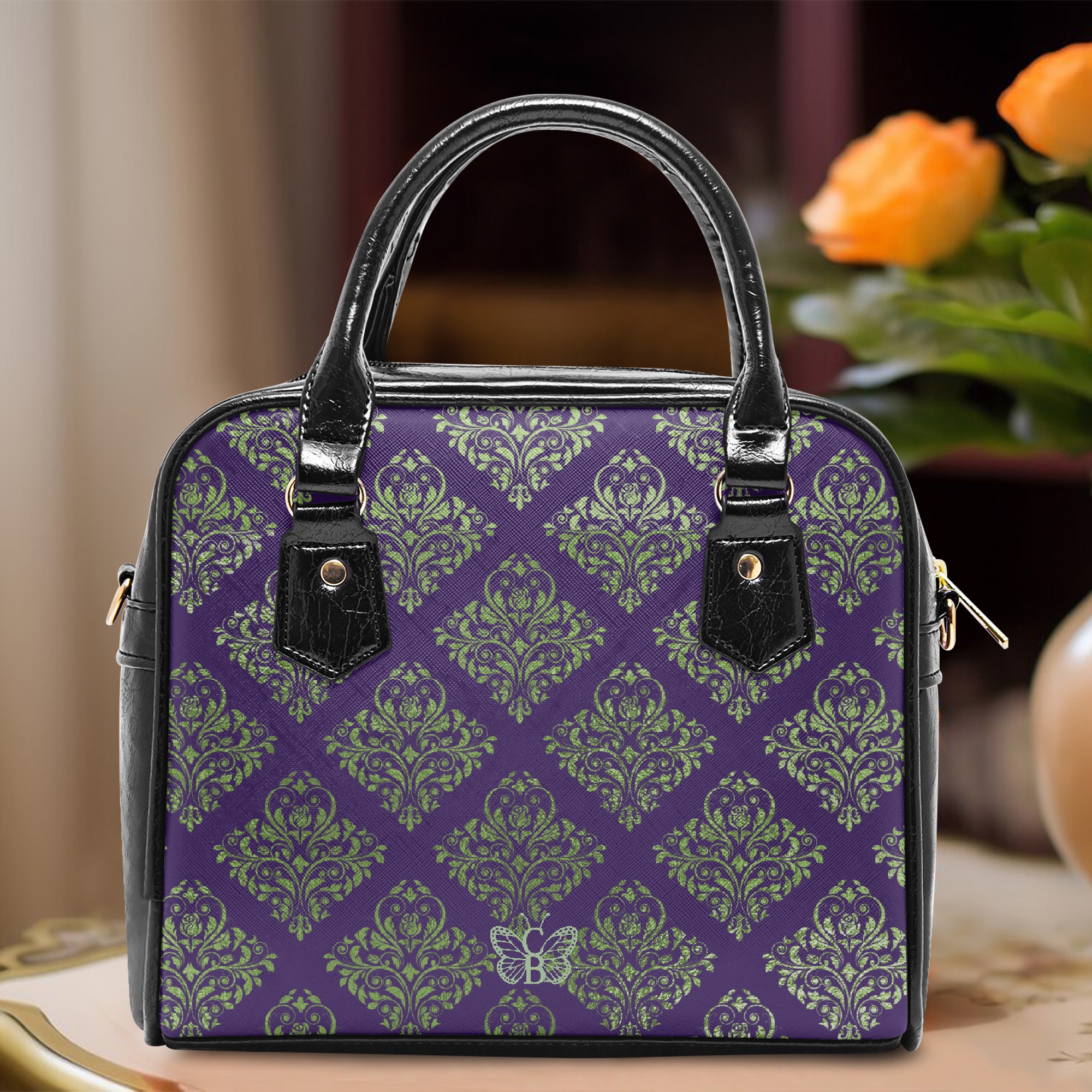 Indigo Viridescent Collection – Casual Leather Saddle Bag Deep Indigo Damask