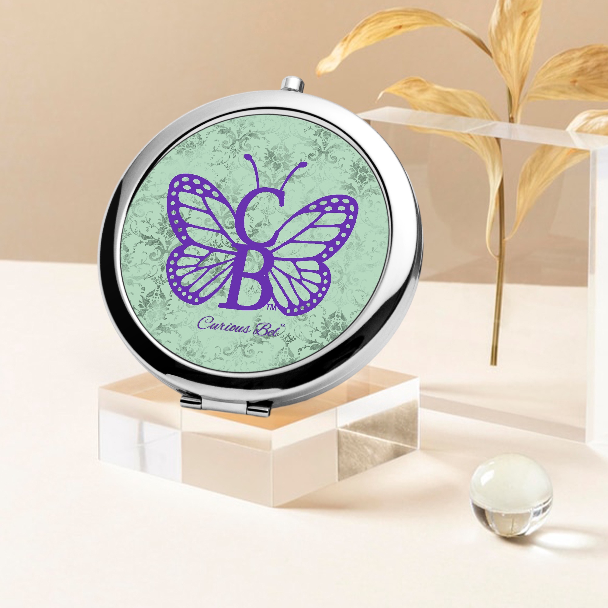 Lavender & Sage Collection – Compact Mirror Mint with Lavender Butterfly Logo