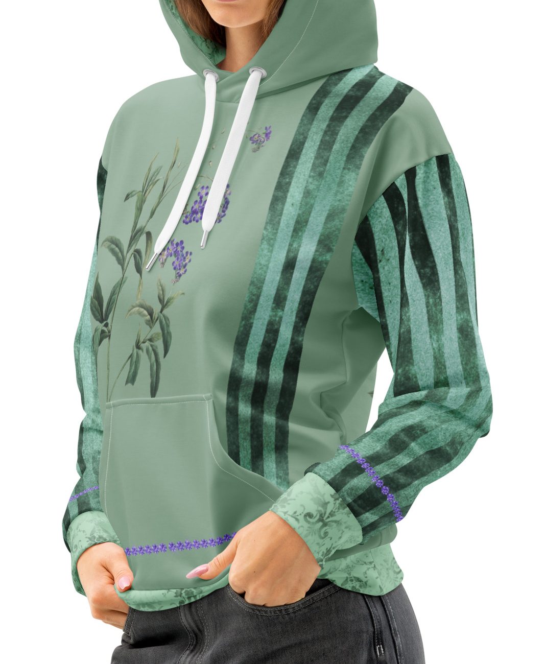 Lavender & Sage Collection – Cotton Hoodie with Mint Stripes