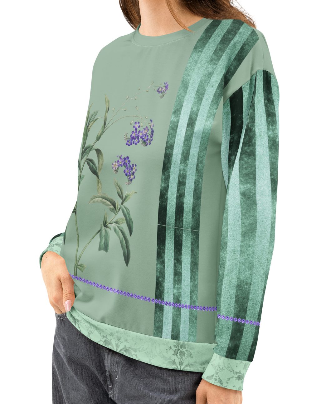 Lavender & Sage Collection – Cotton Sweatshirt with Mint Stripes