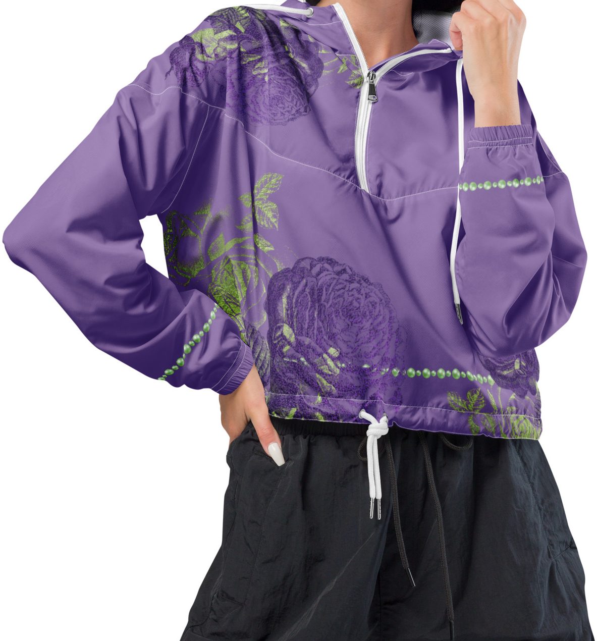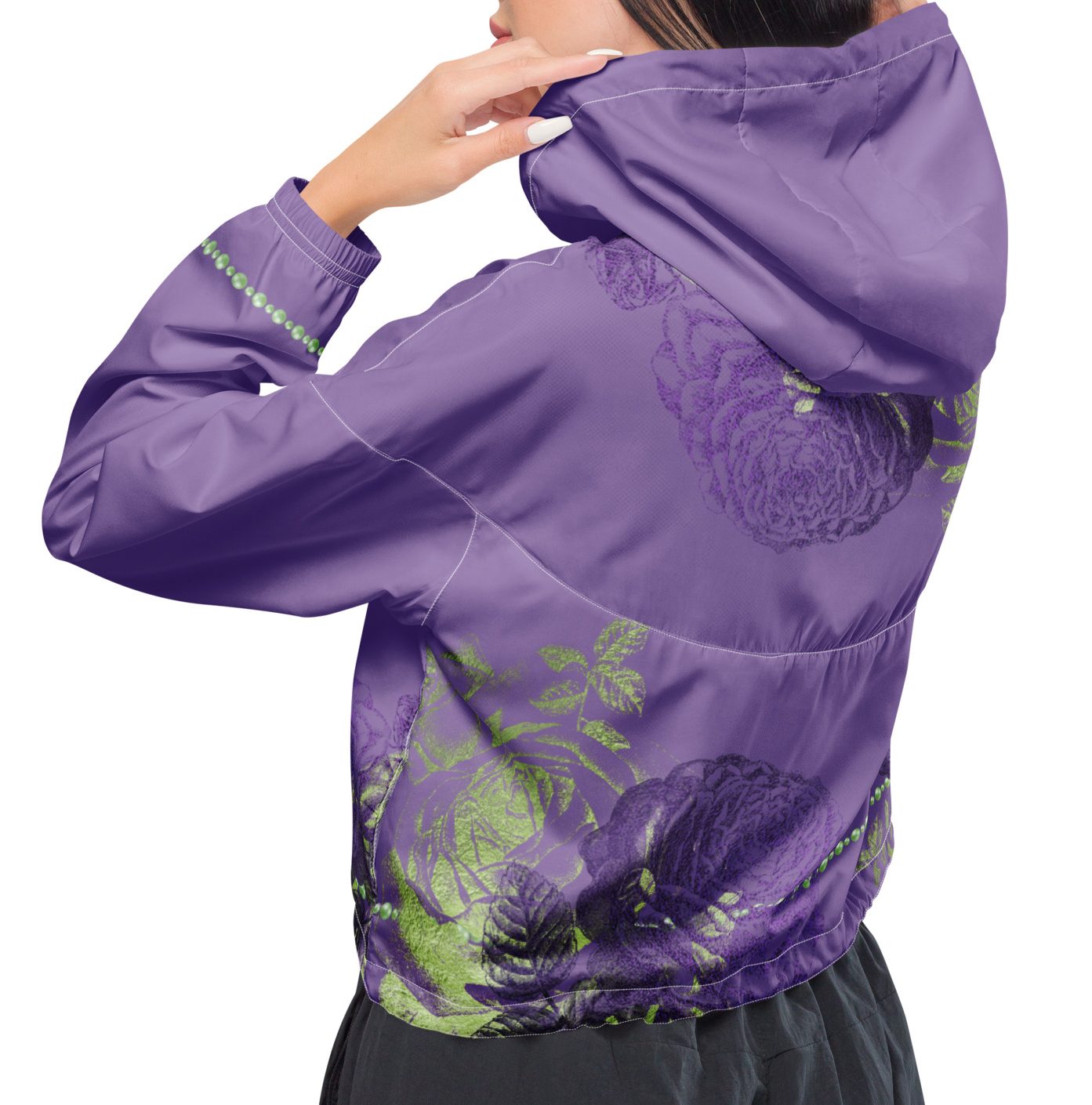 Hike in style without the rain getting in the way—this cropped windbreaker is lightweight, waterproof, and suitable for every kind of adventure. Features include side-slit pockets, breathable mesh lining, and adjustable drawcords on the hood and waist to support all your stylish outdoor looks.