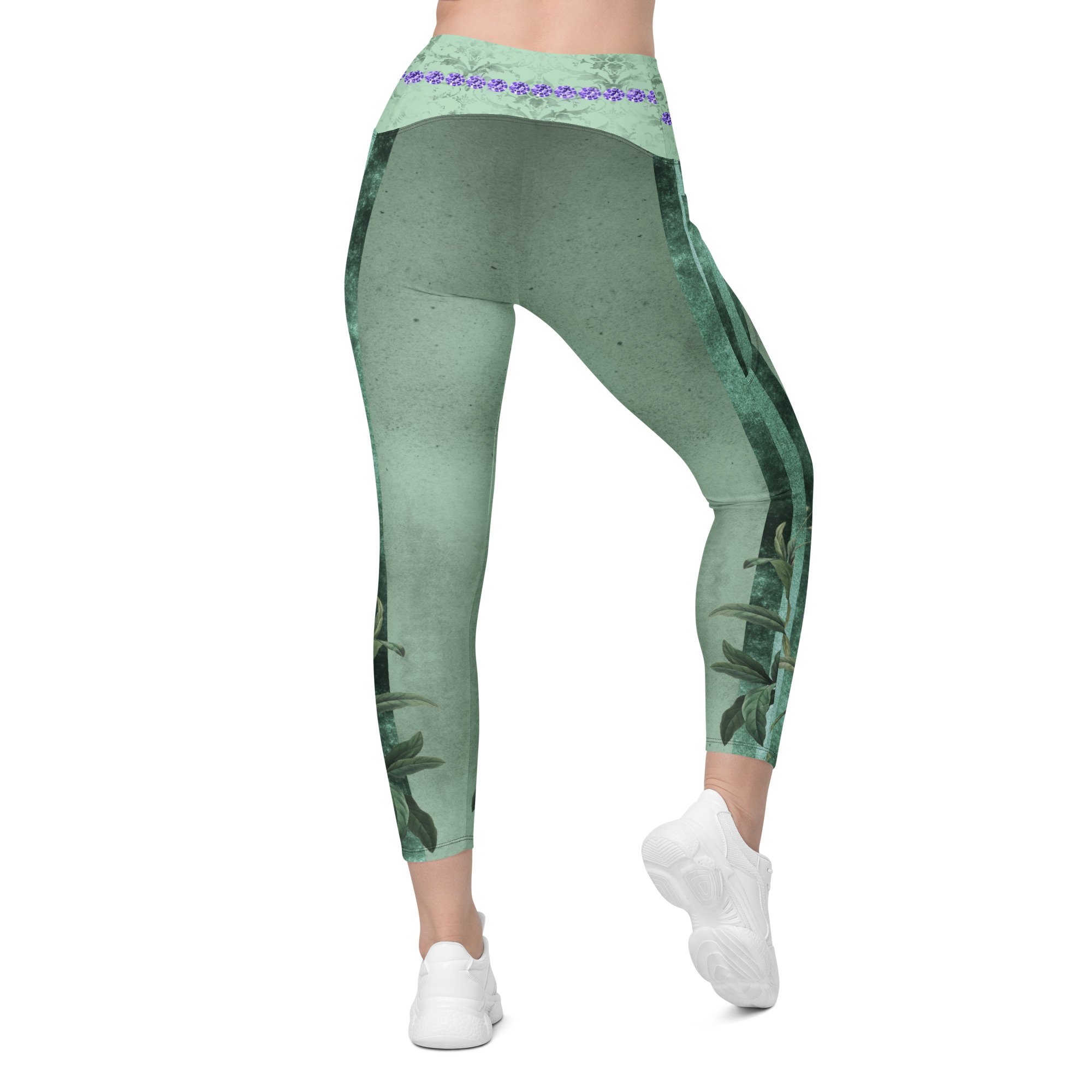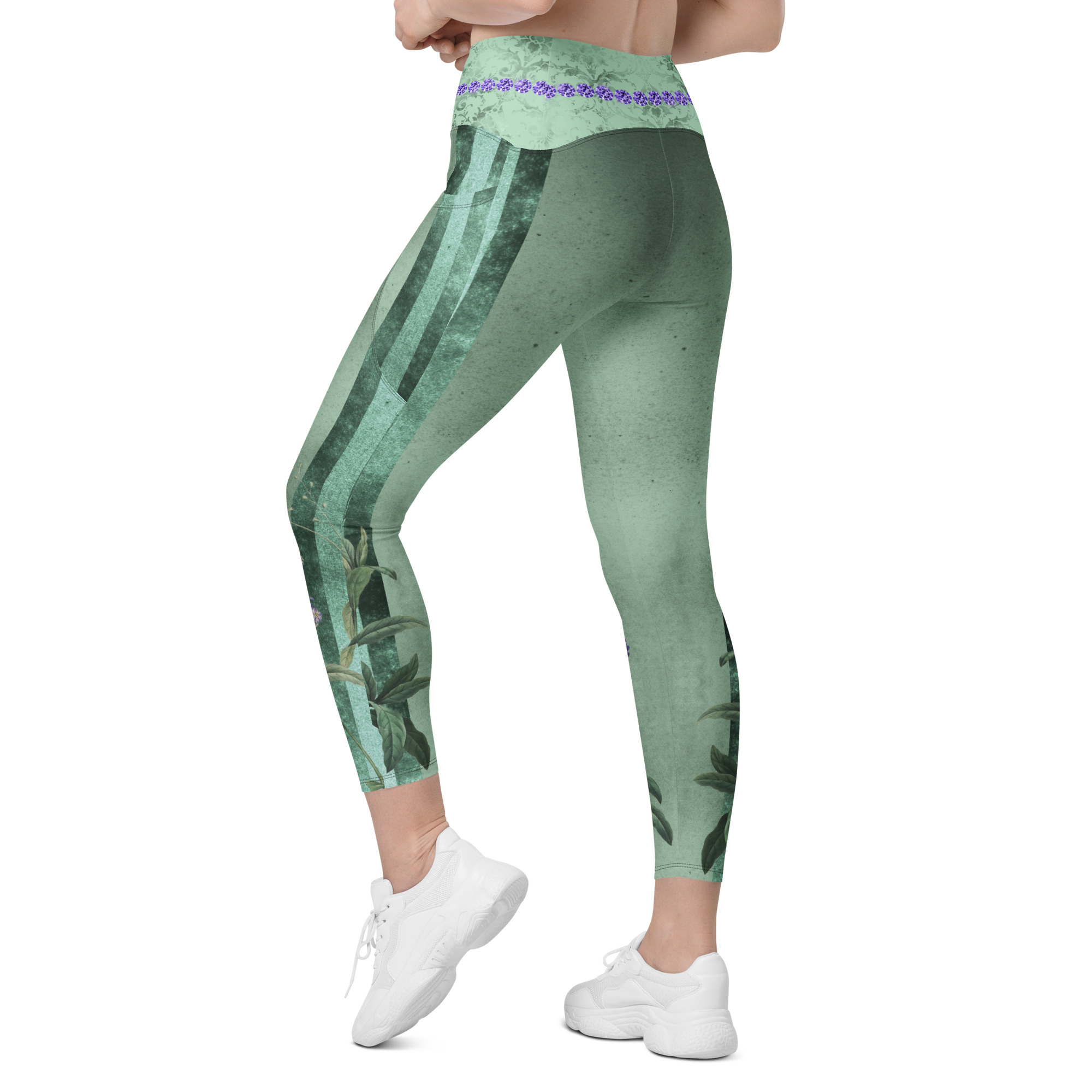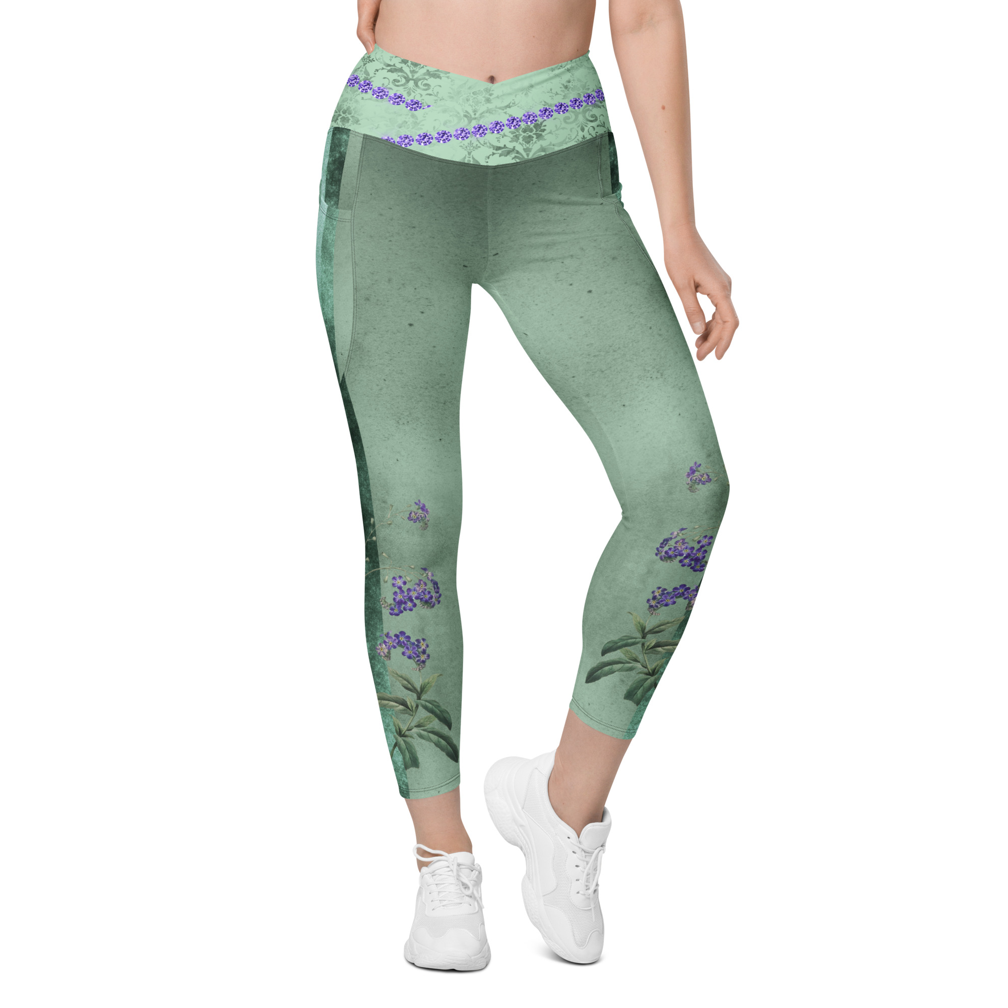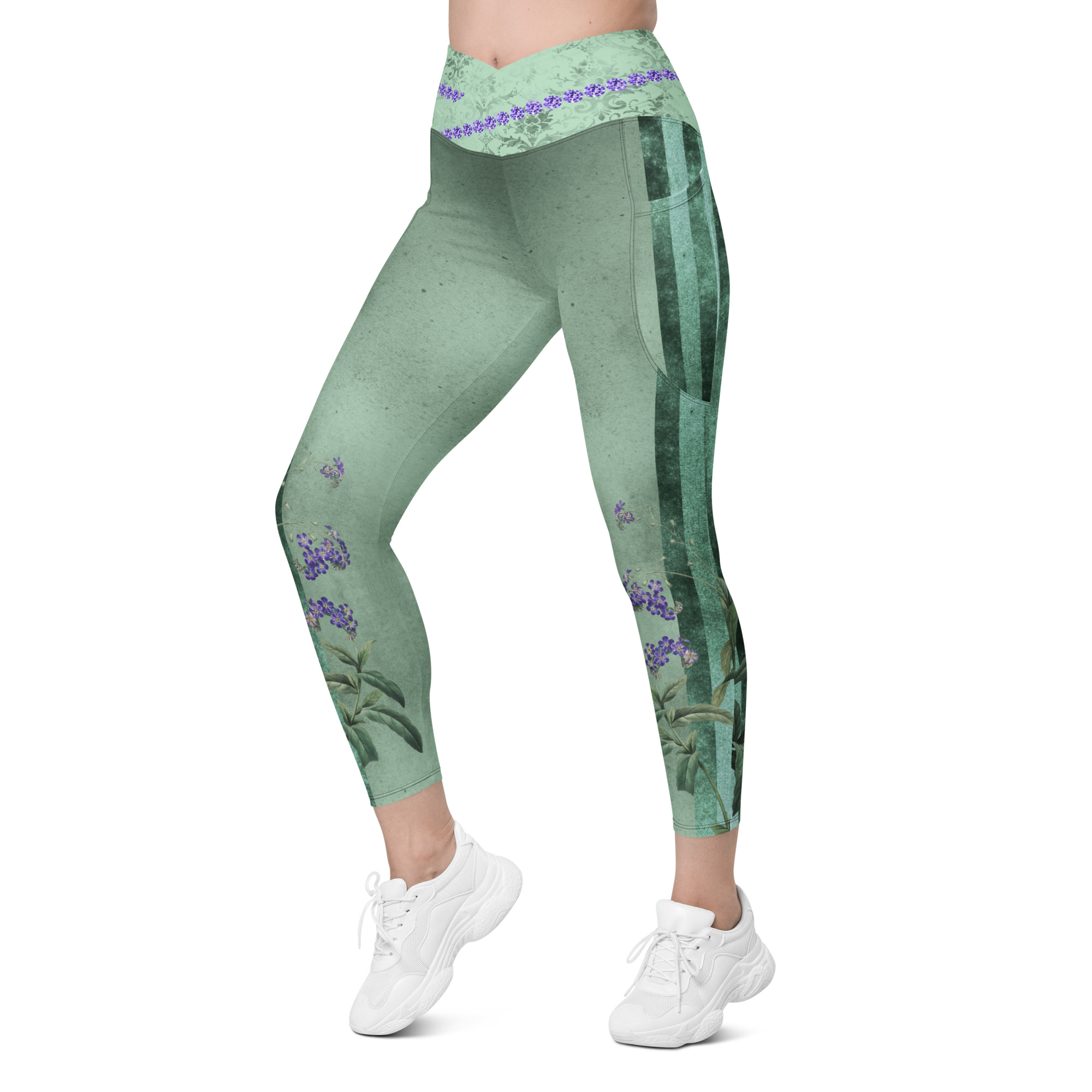 Lavender & Sage Collection – Crossover Leggings with Mint Stripes
