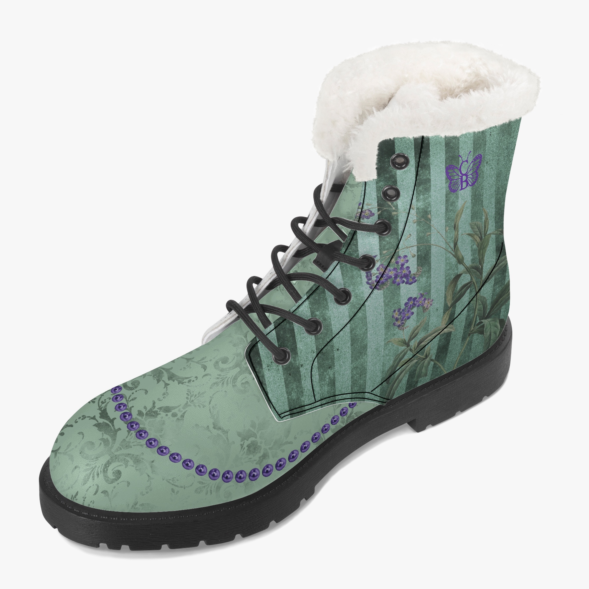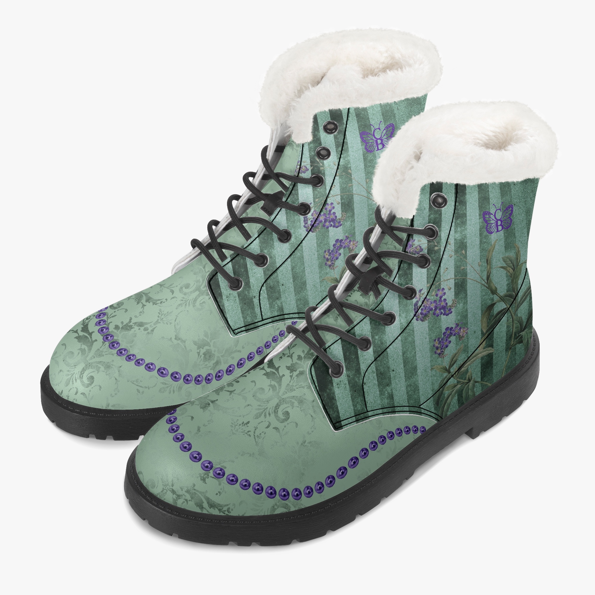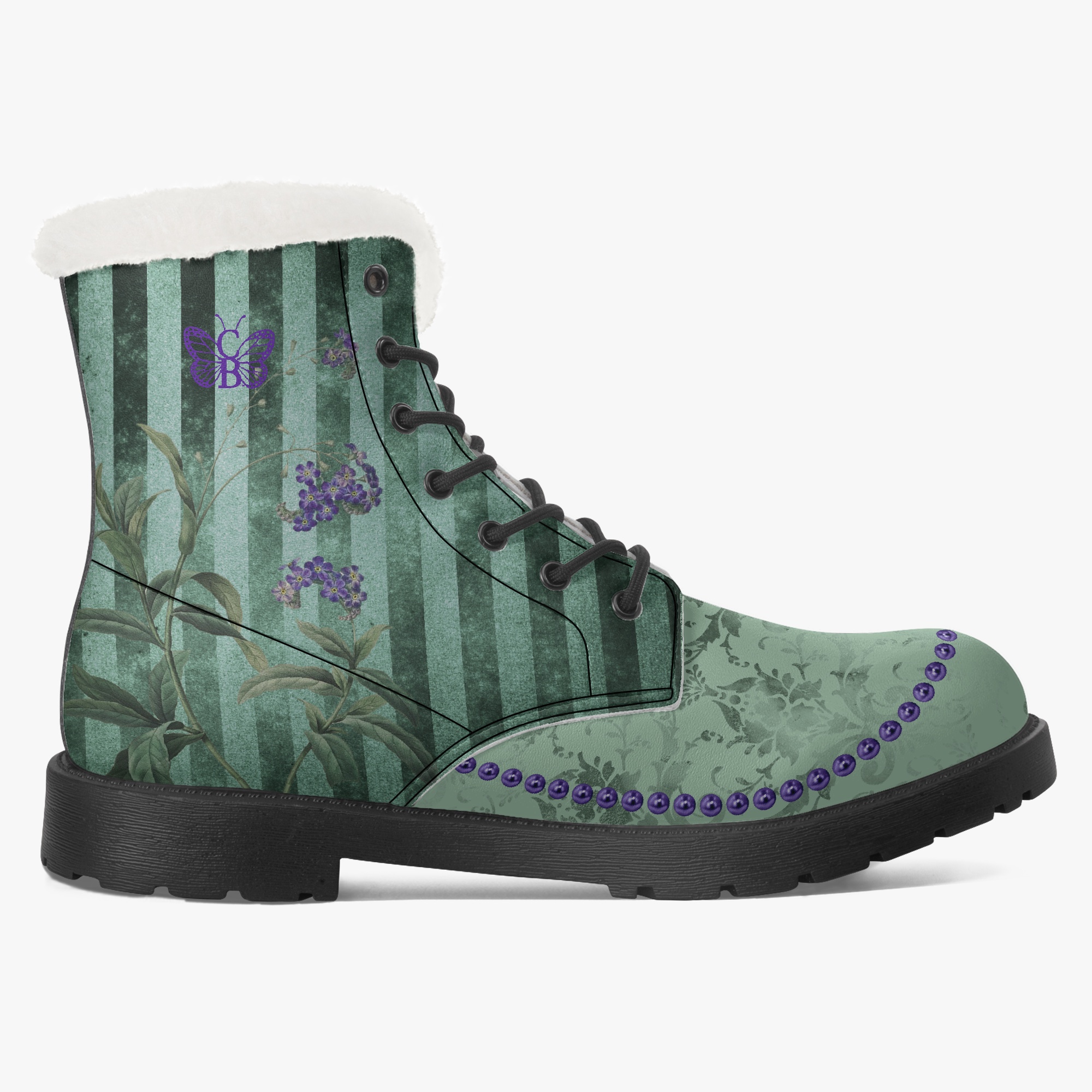 Lavender & Sage Collection – Faux Fur Leather Boots with Mint Stripes