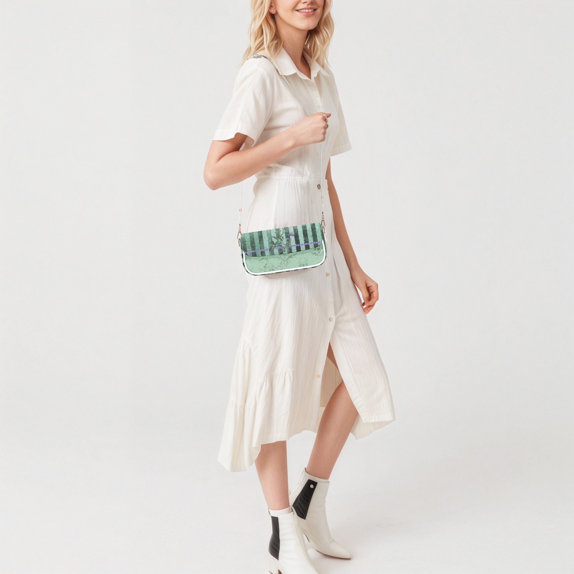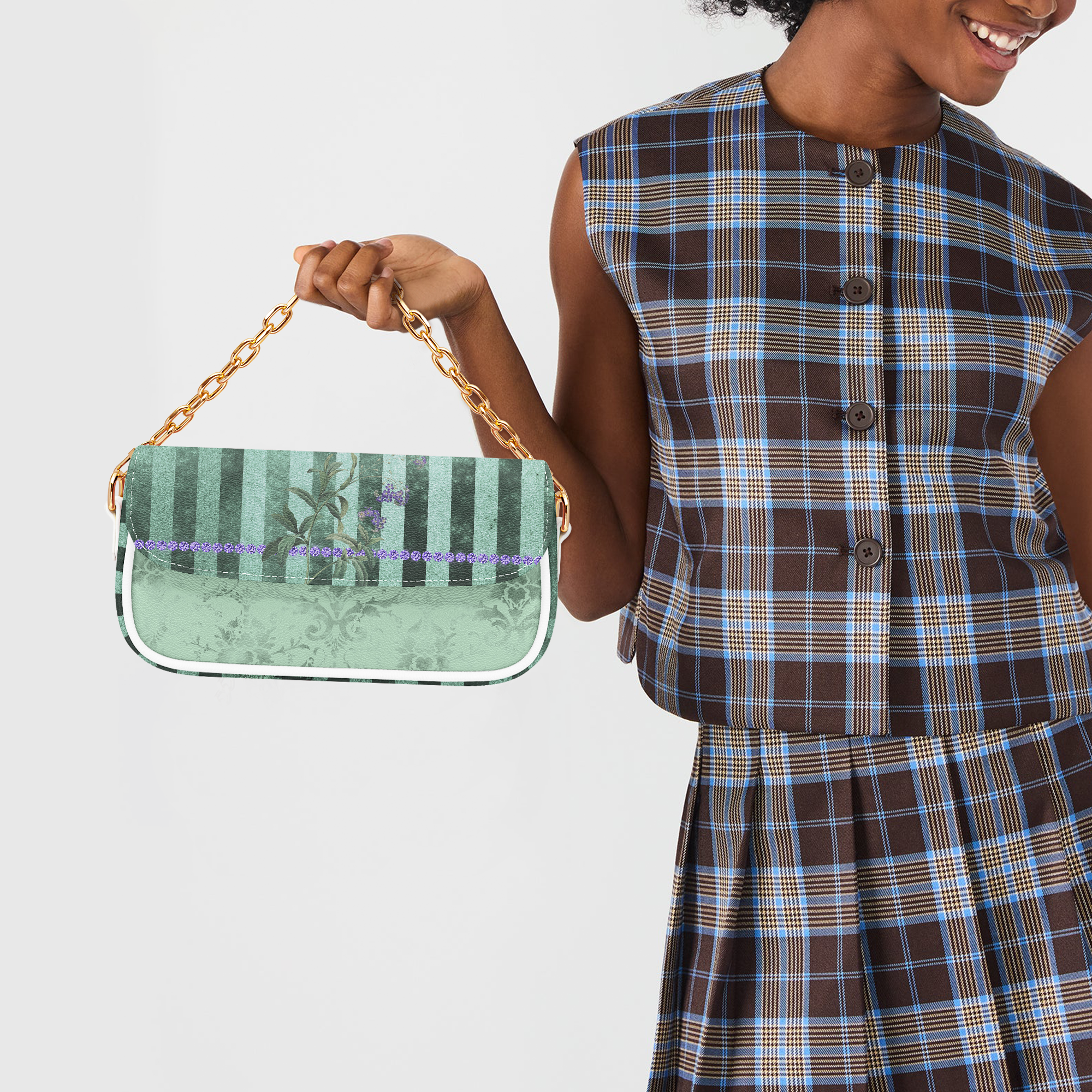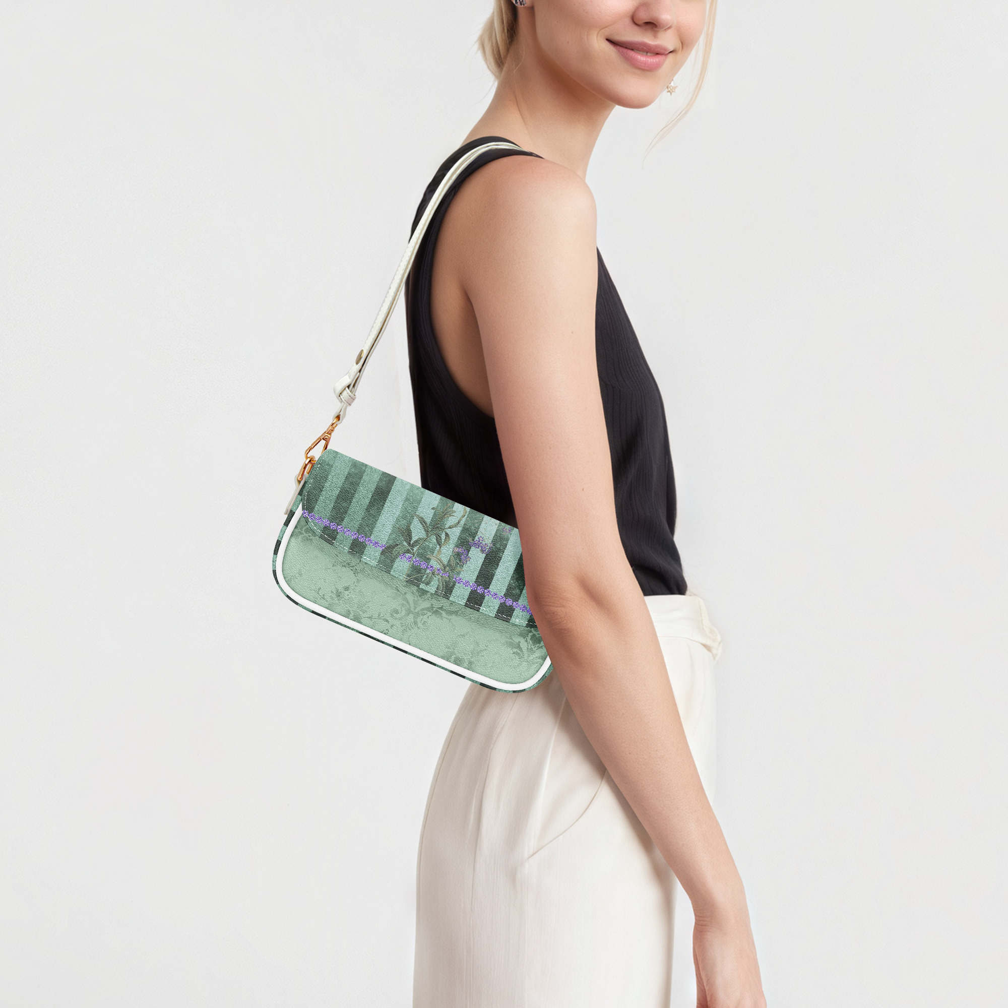 Lavender & Sage Collection – Faux Leather Underarm Bag with Mint Stripes