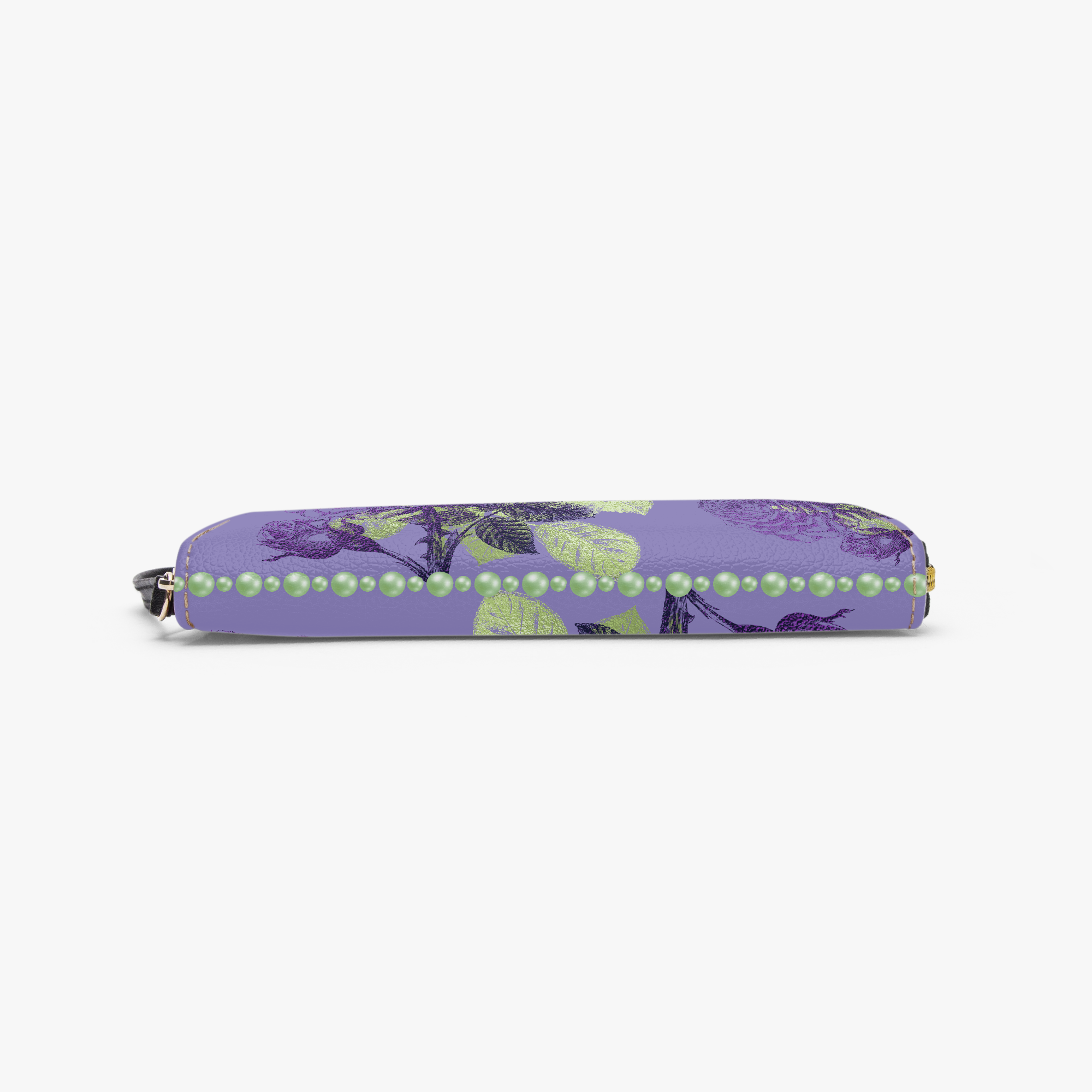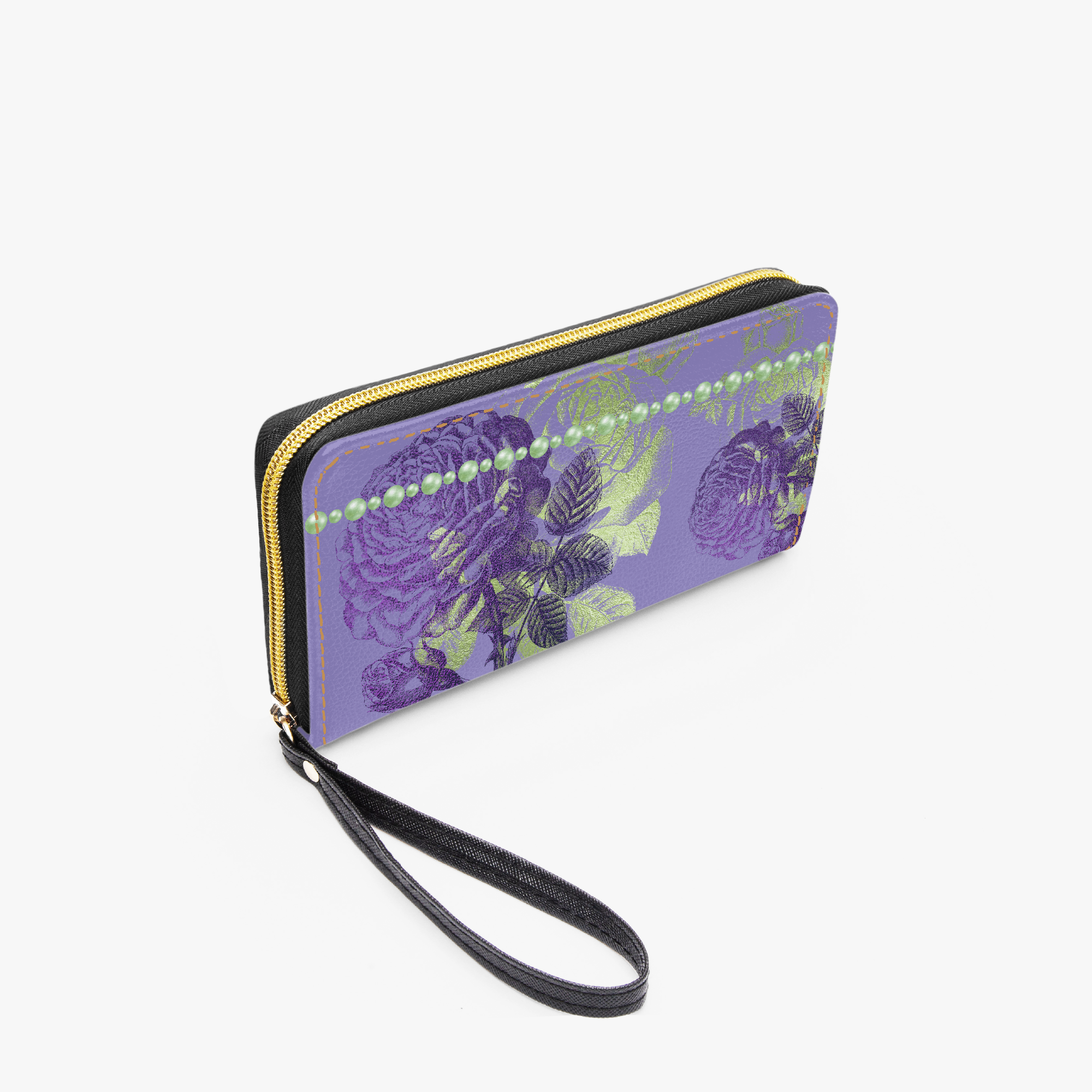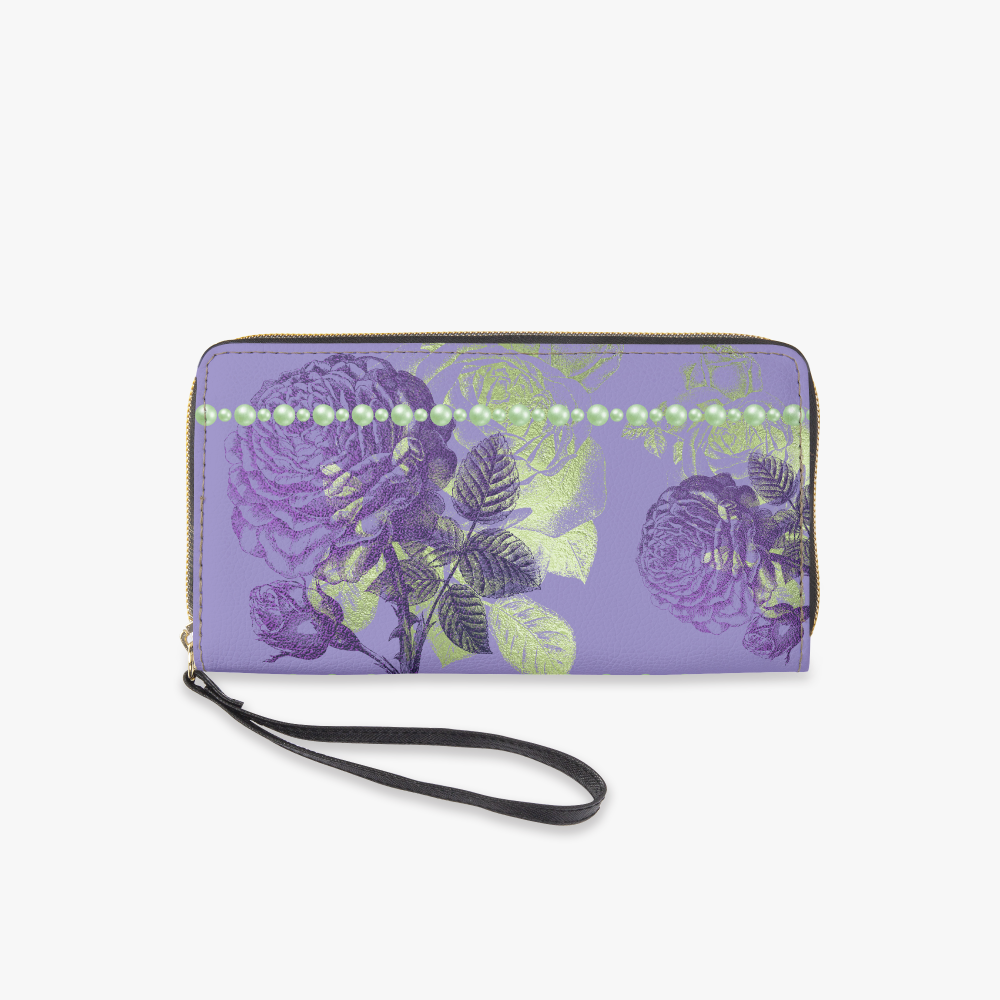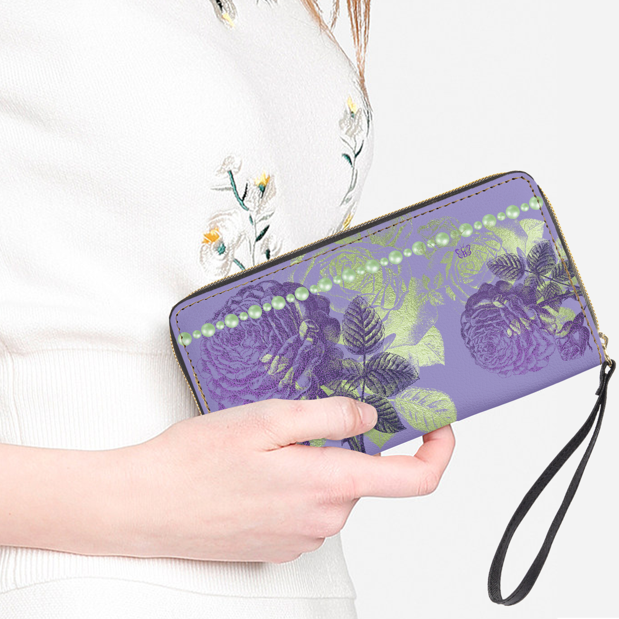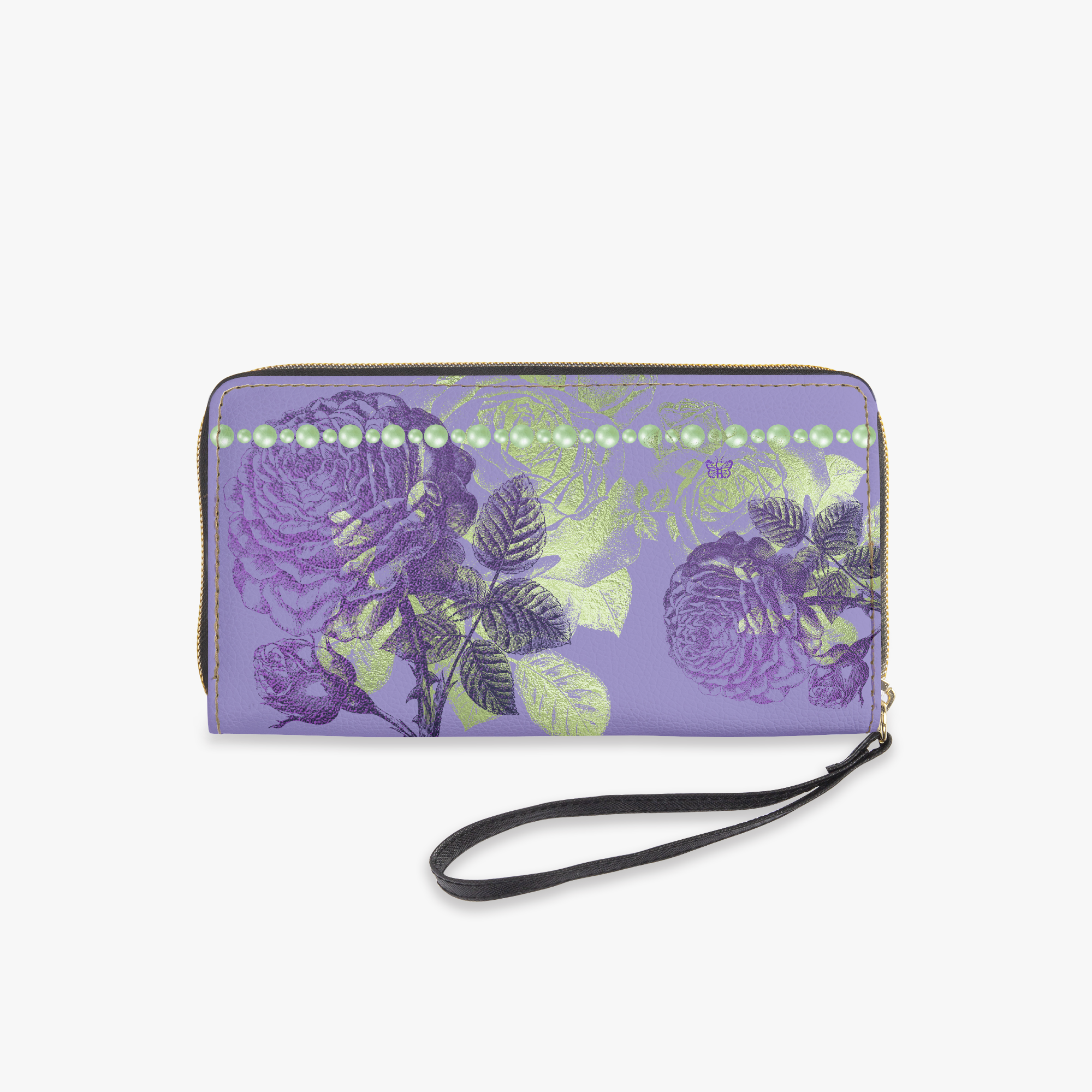 Lavender & Sage Collection – Faux Leather Wristlet Clutch Wallet Lavender with Mint Pearl