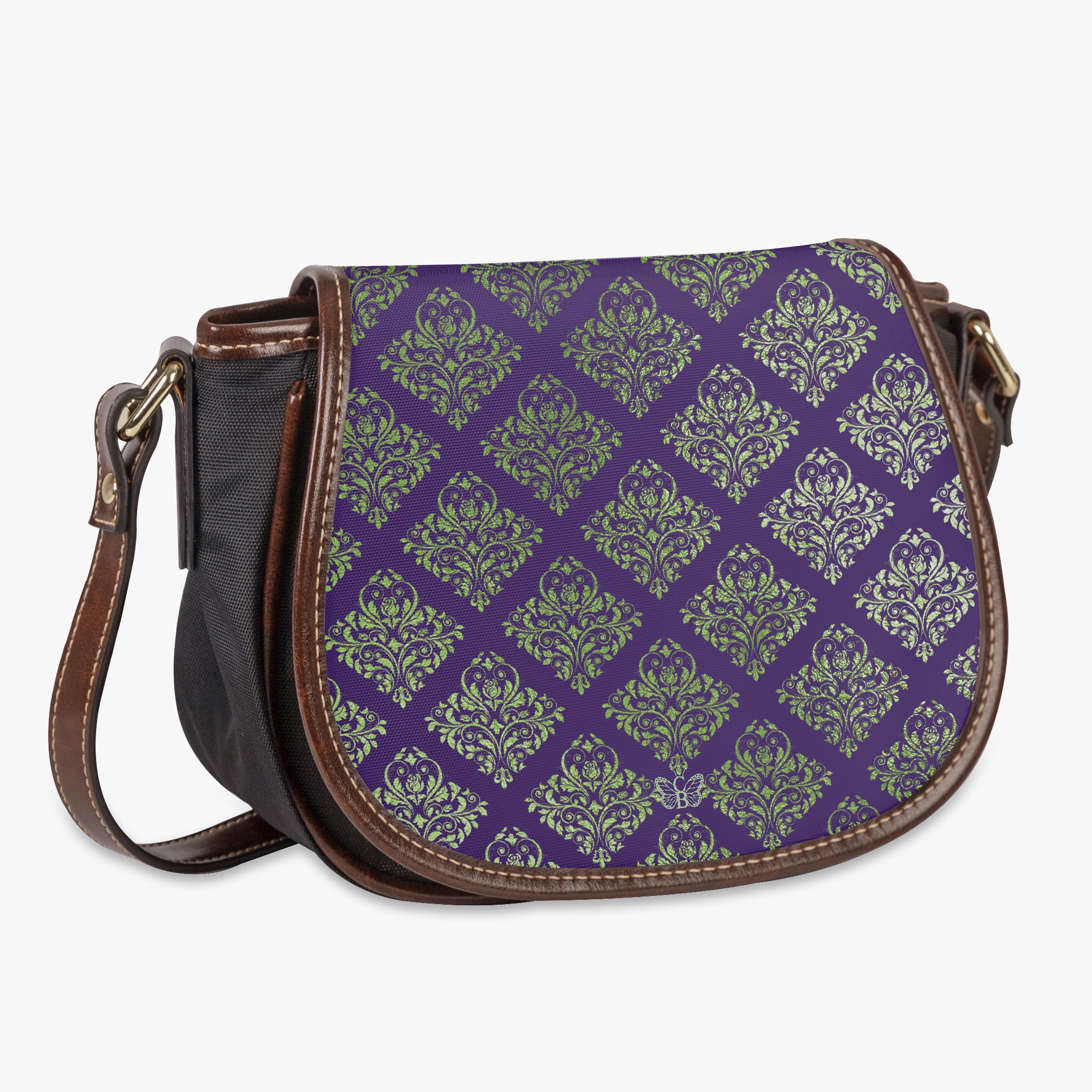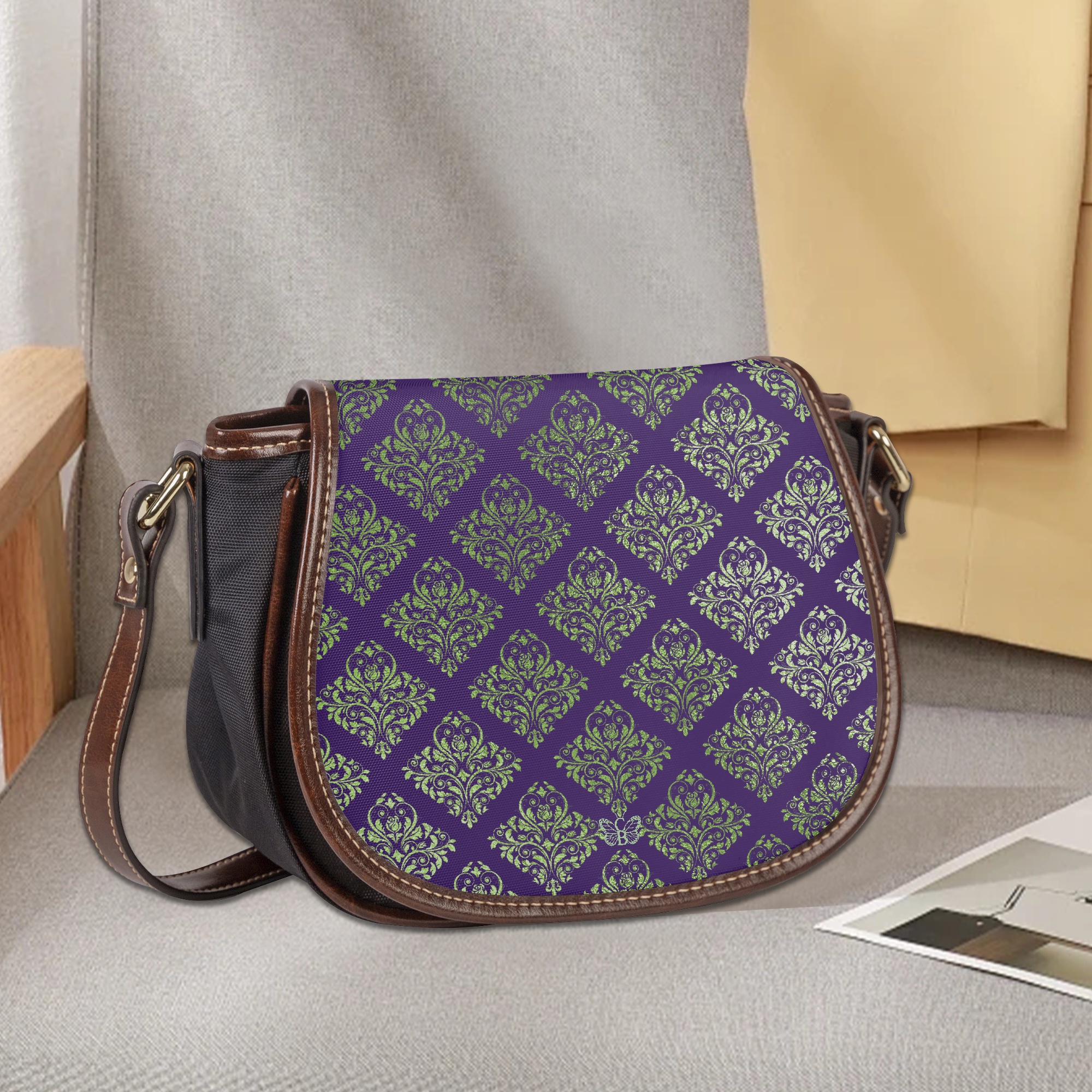 Indigo Viridescent Collection – Flap Saddle Bag Deep Indigo Damask