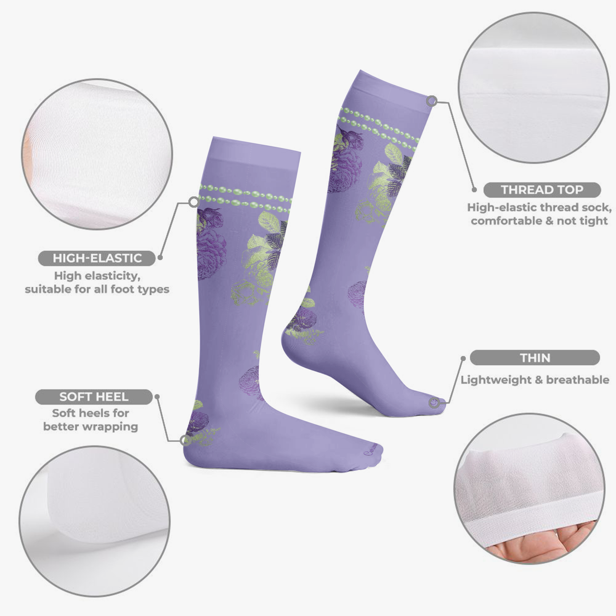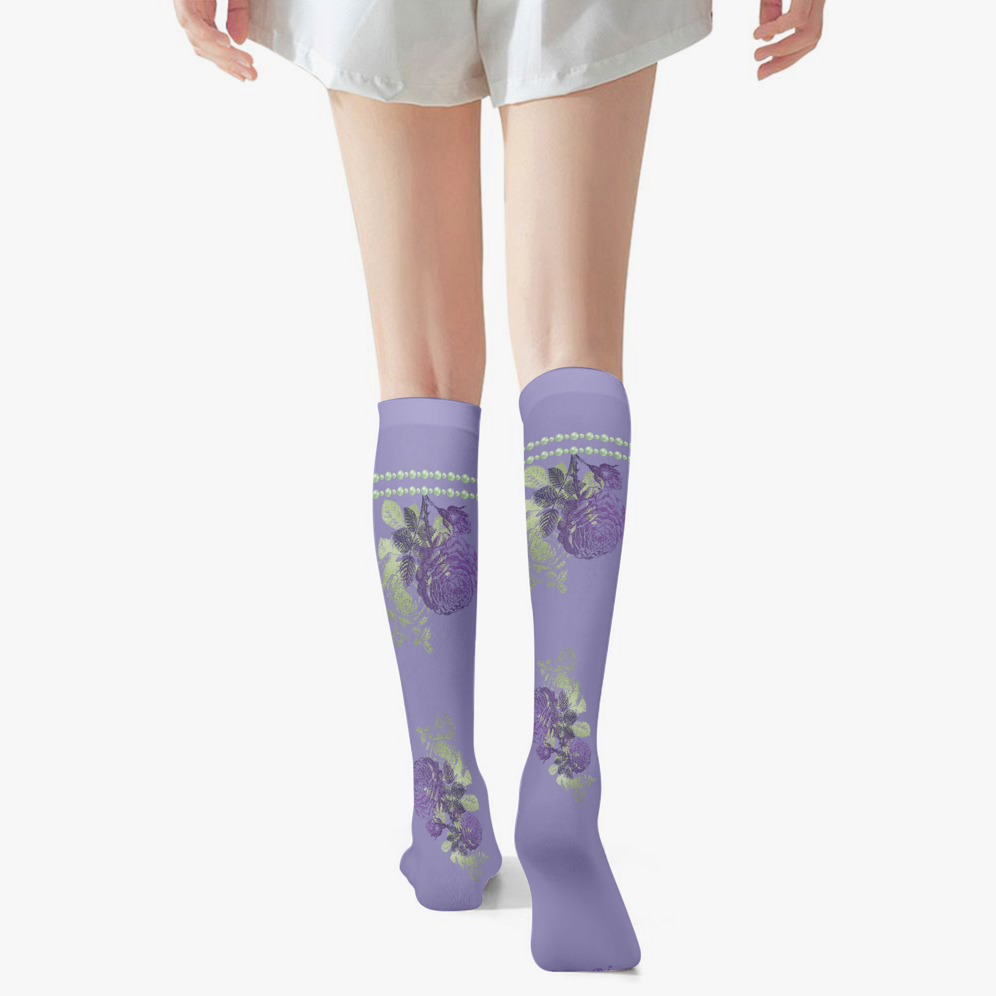 Lavender & Sage Collection – Knee High Socks Lavender with Mint Pearl