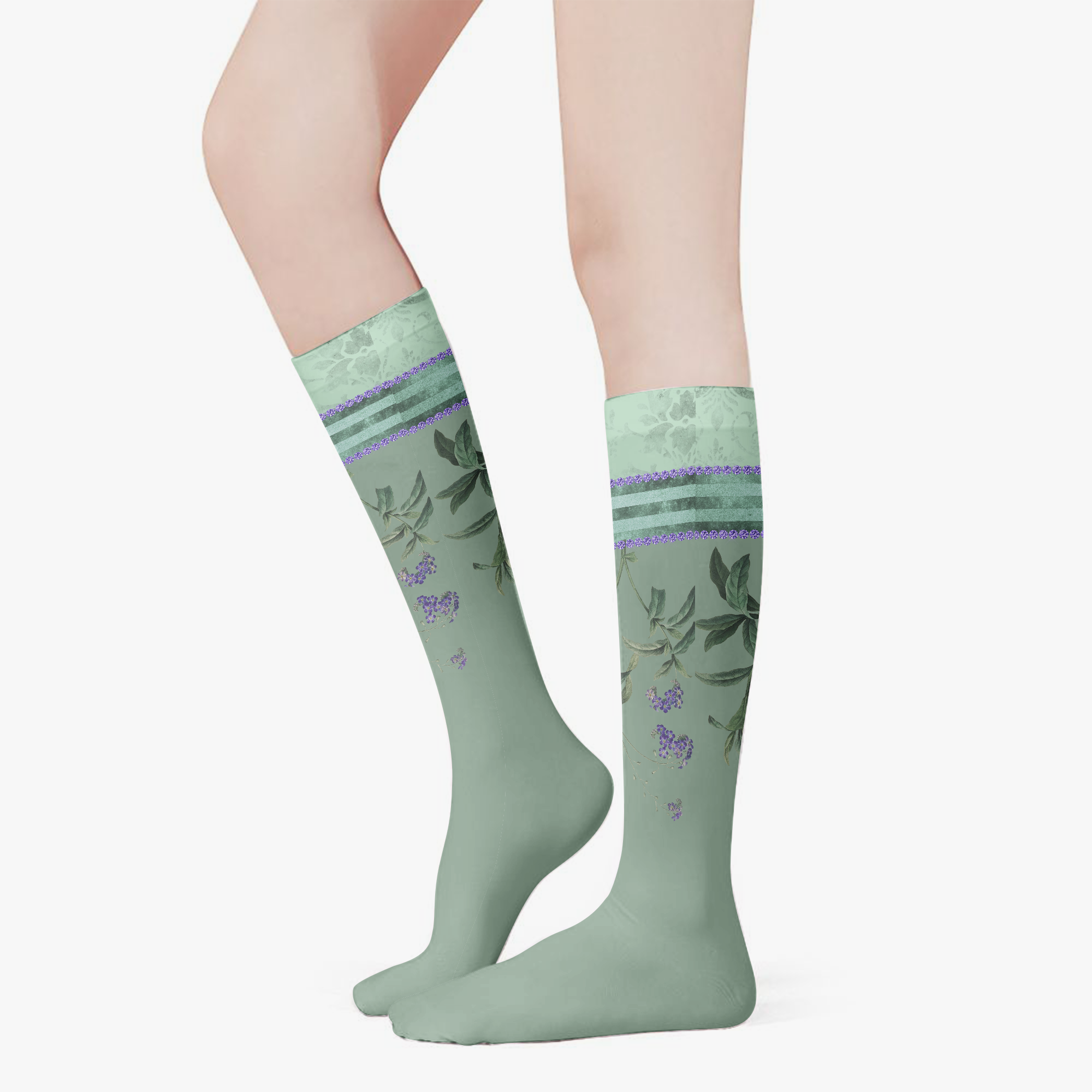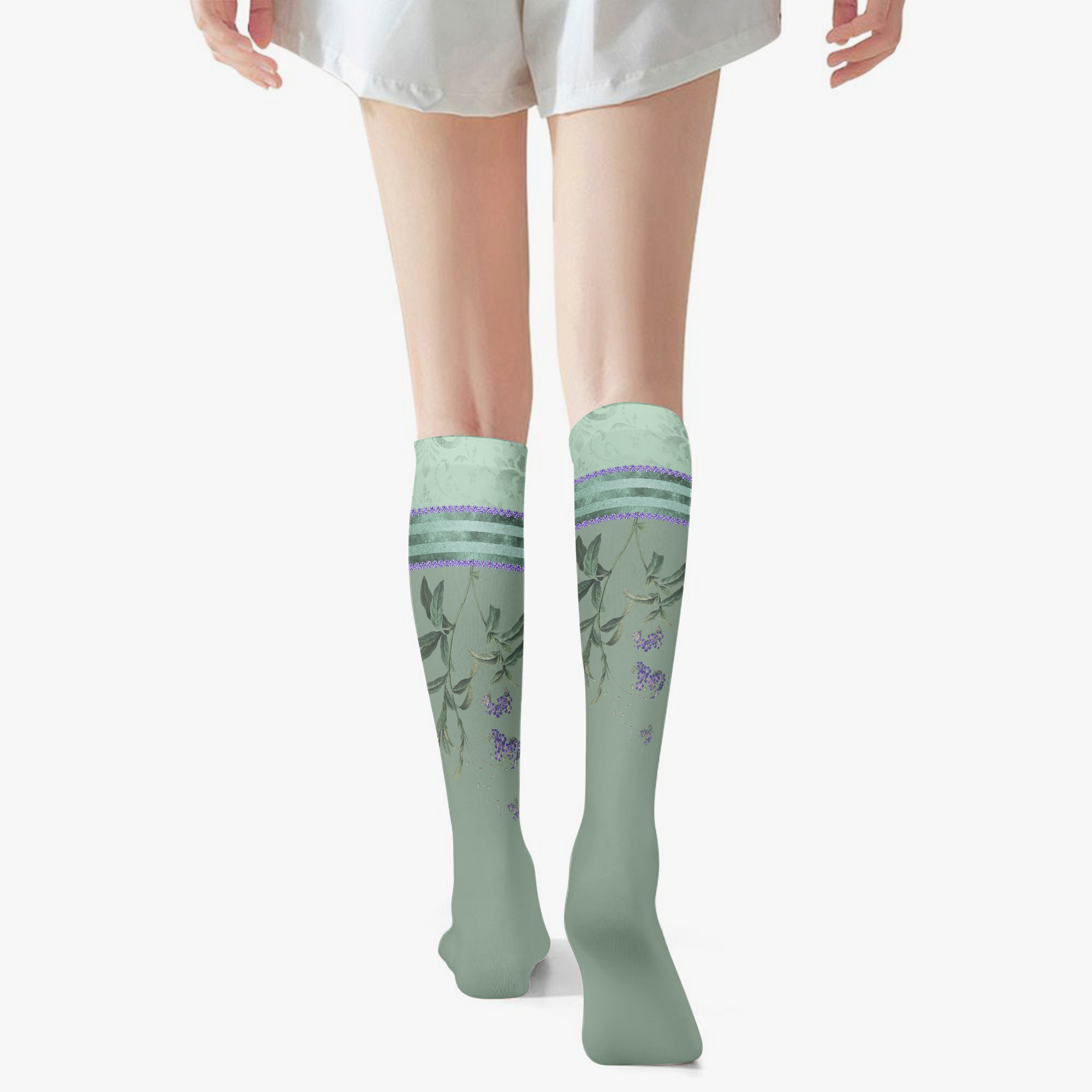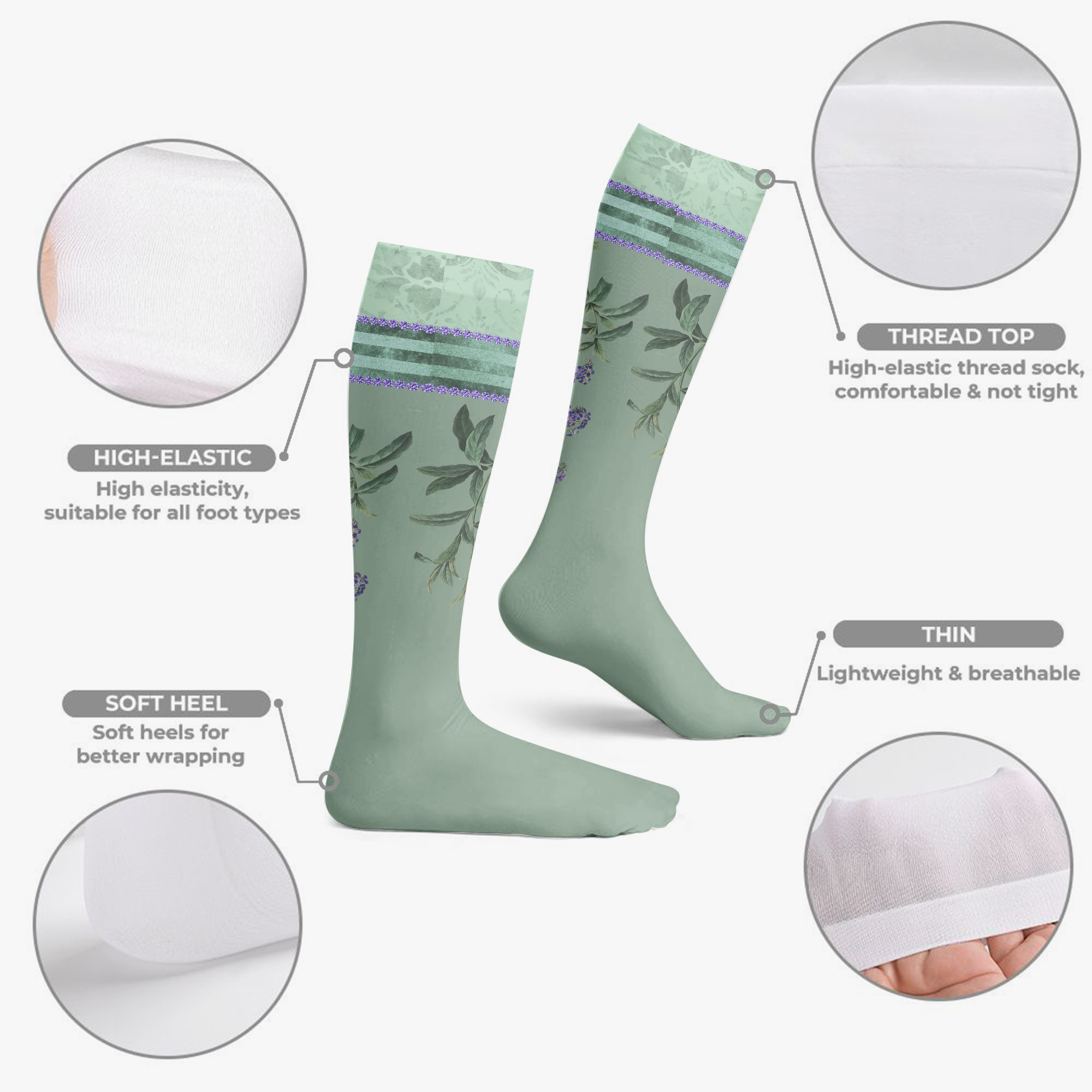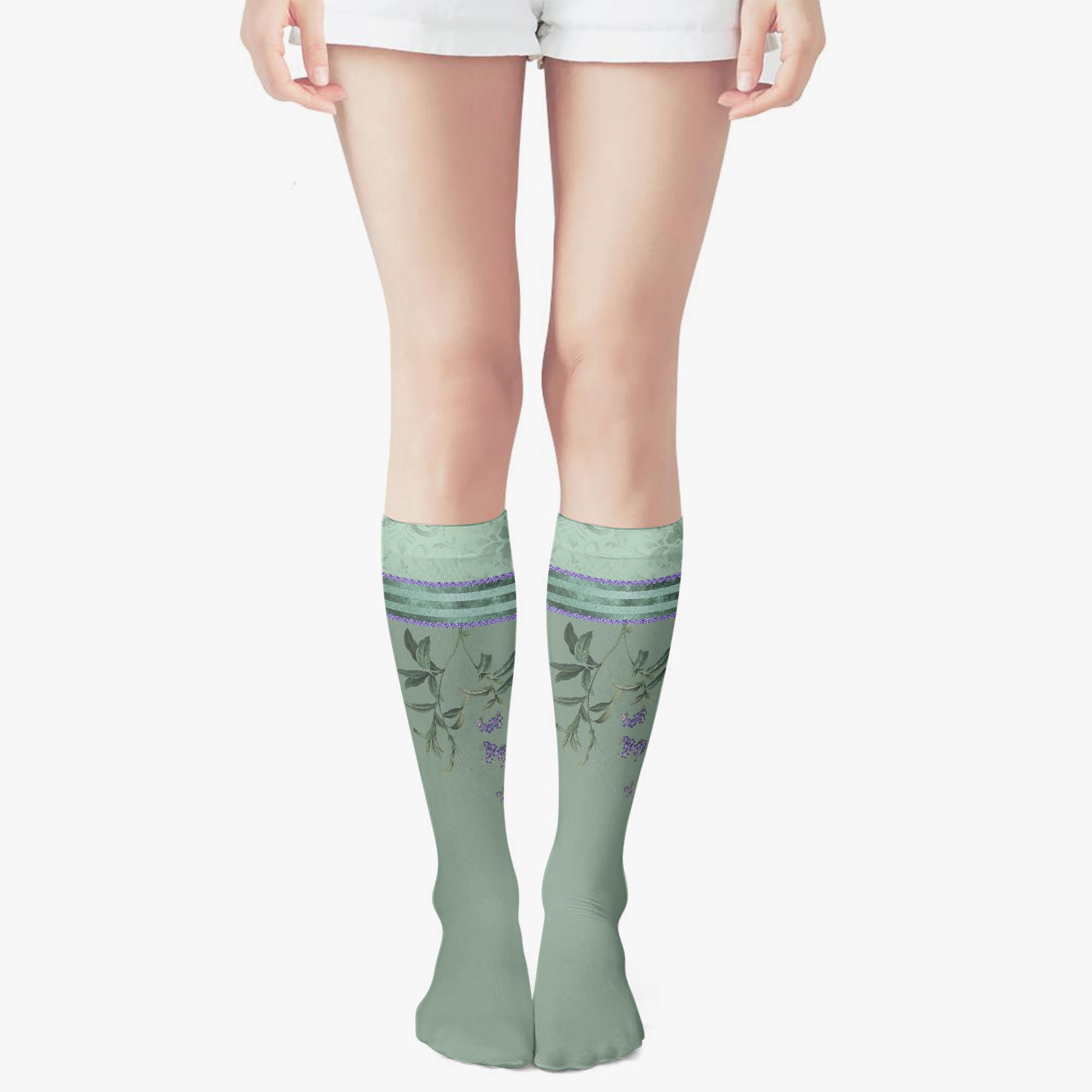 Lavender & Sage Collection – Knee High Socks with Mint Stripes