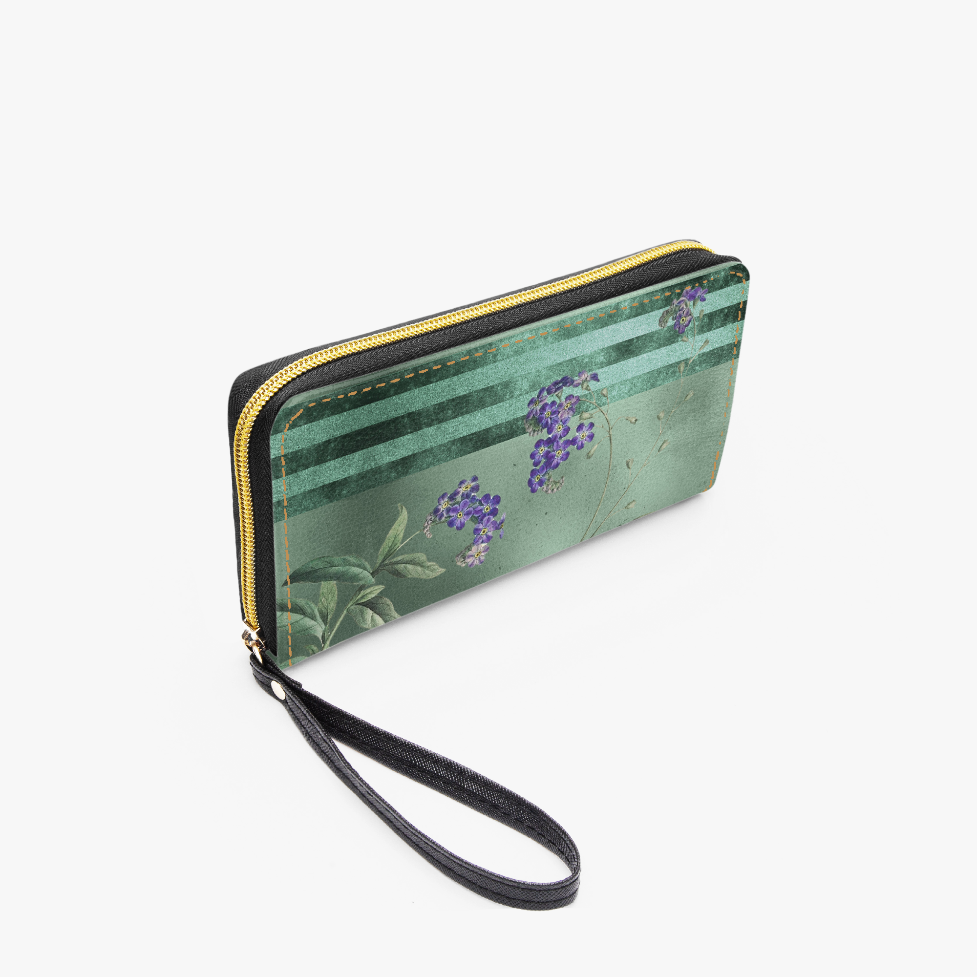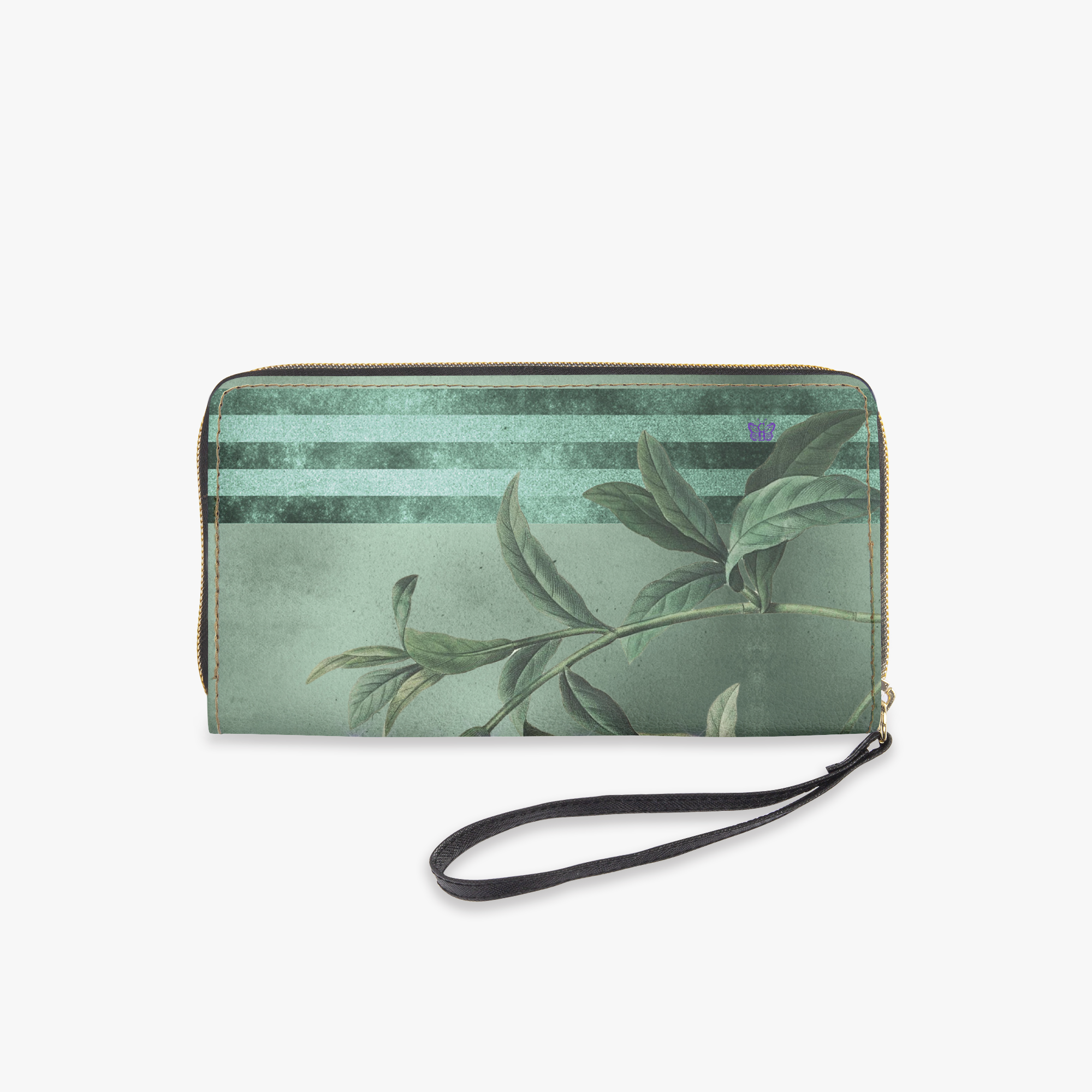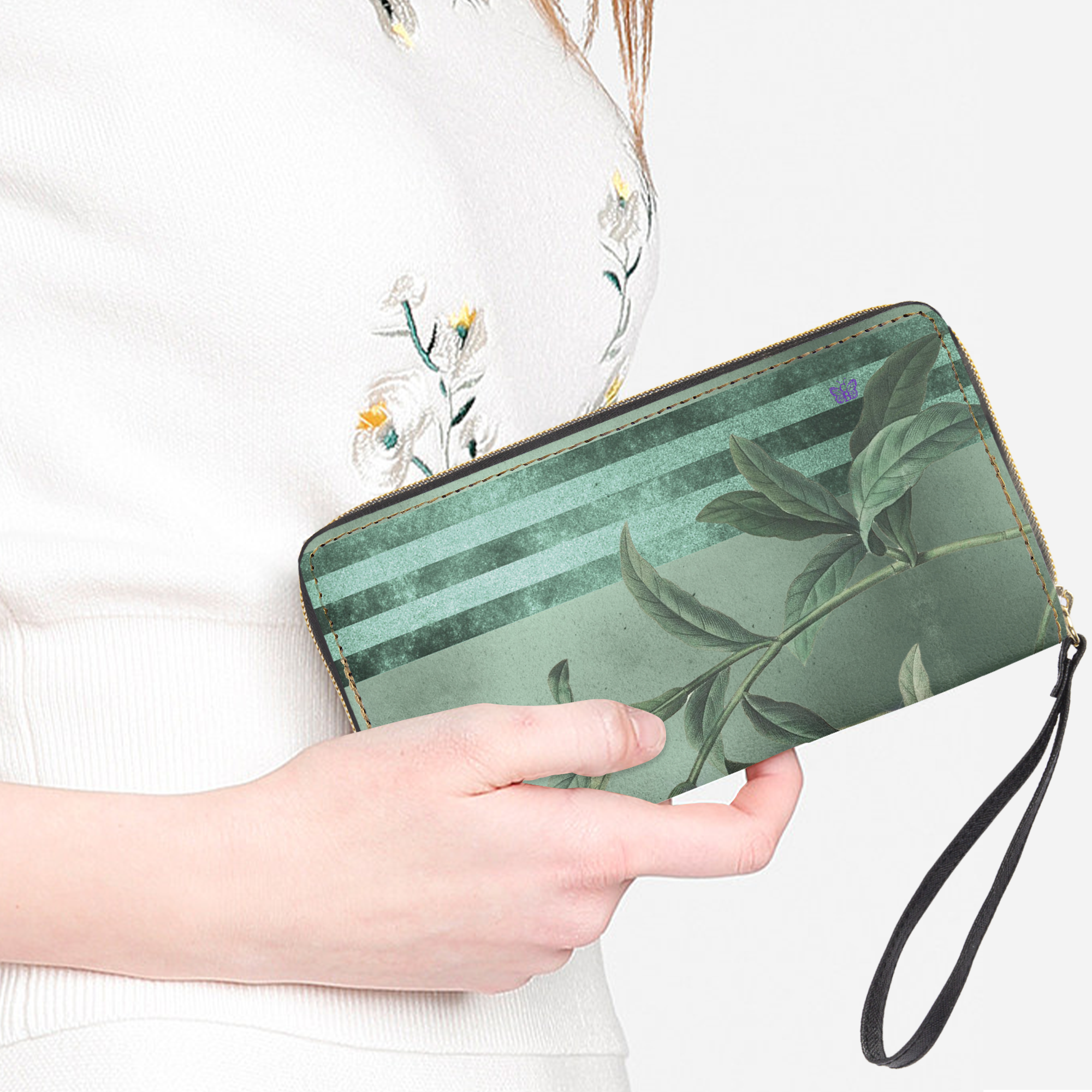 Lavender & Sage Collection – Faux Leather Wristlet Clutch Wallet with Mint Stripes