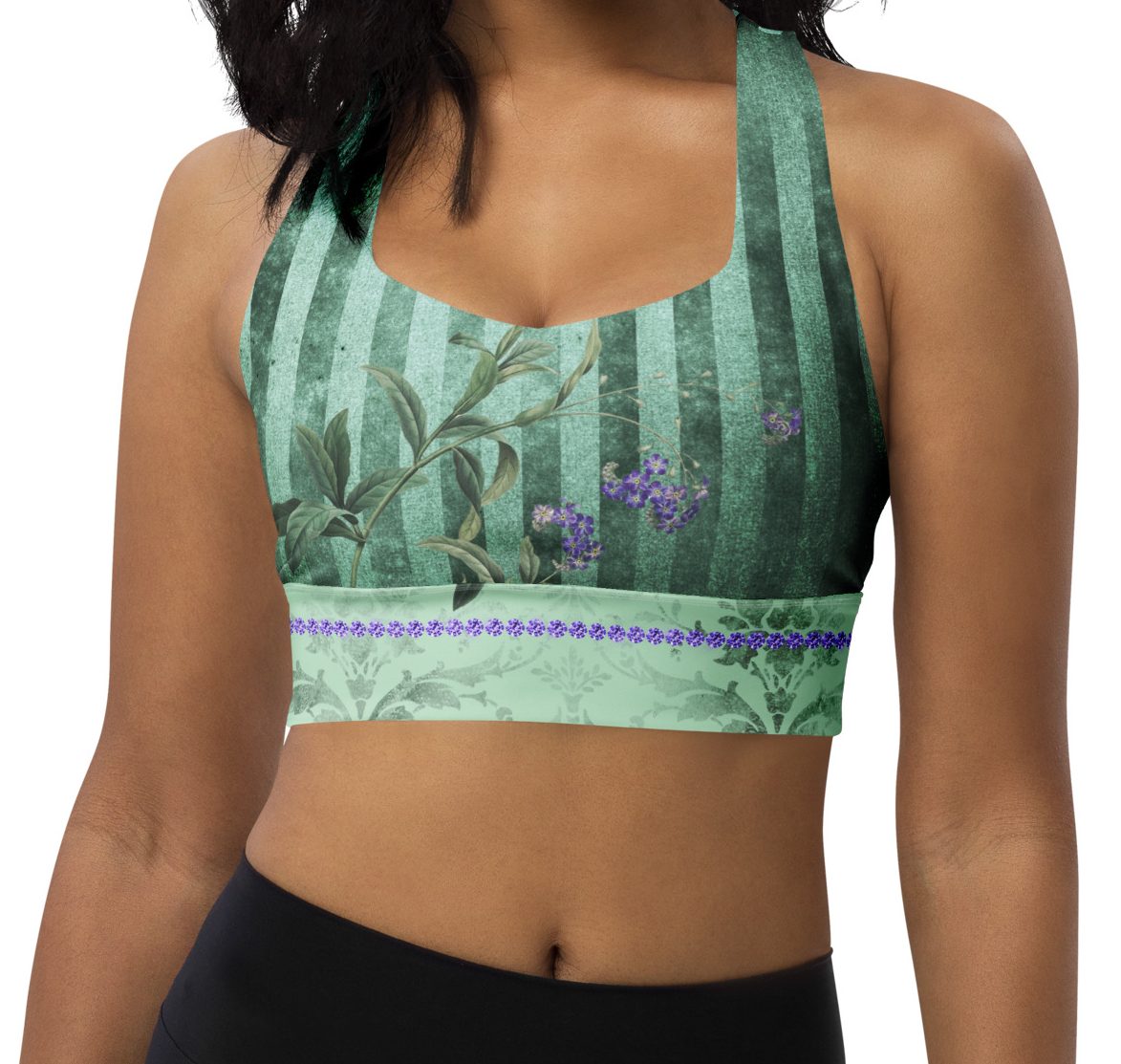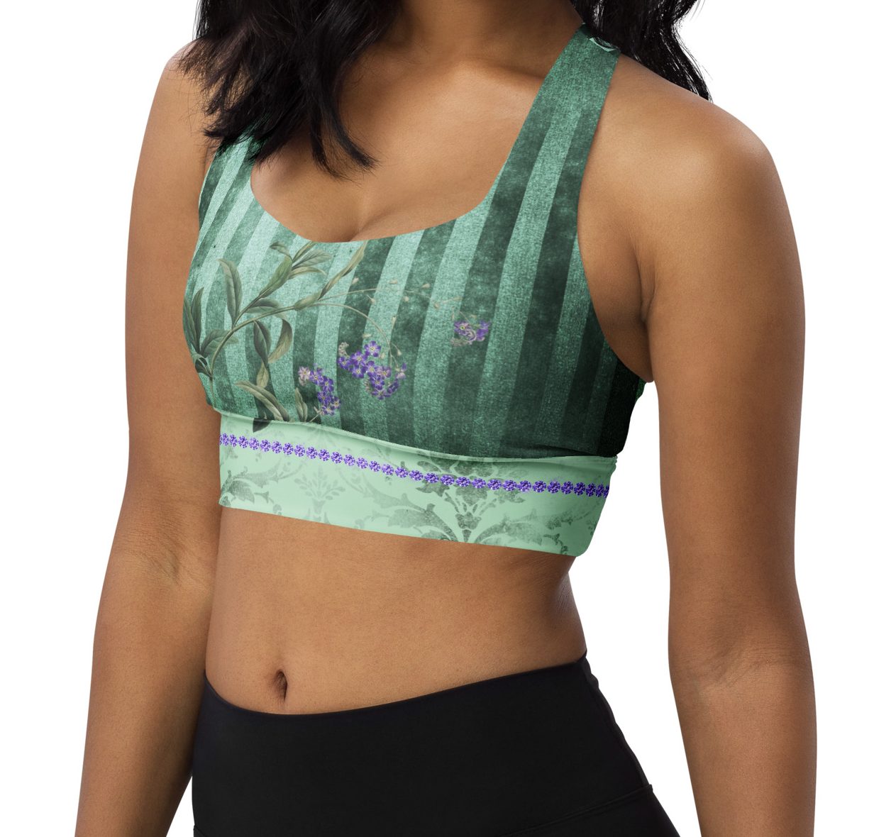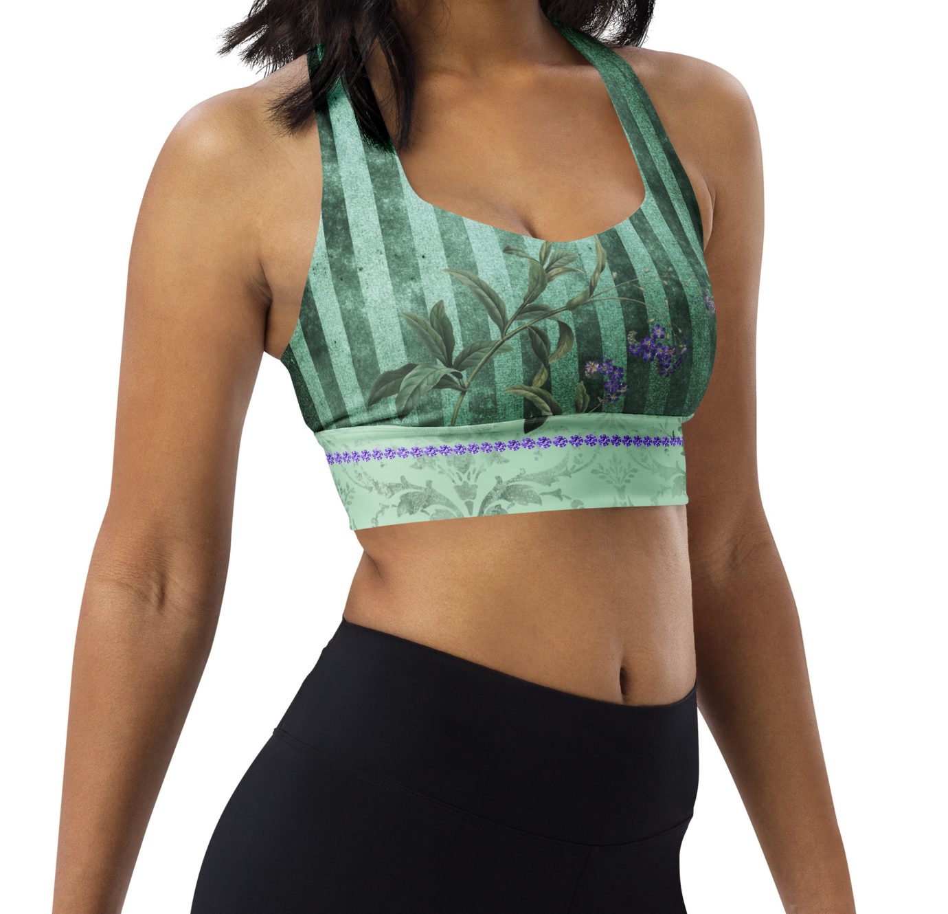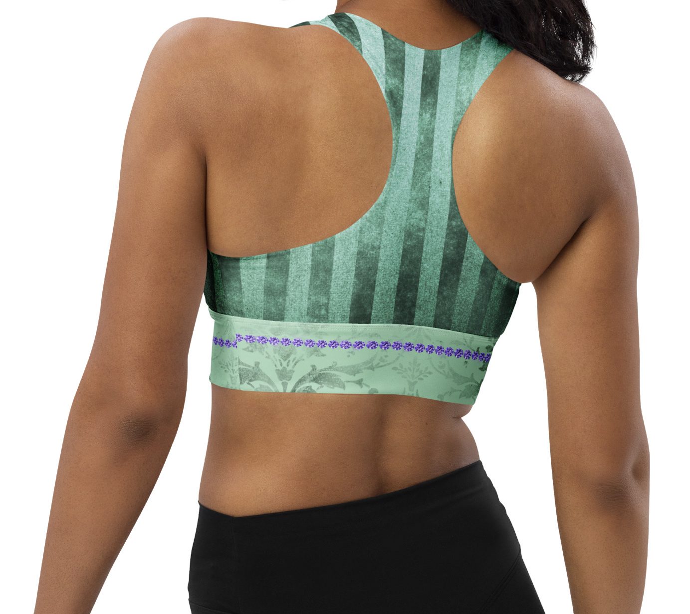 Lavender & Sage Collection – Longline Sports Bra with Mint Stripes