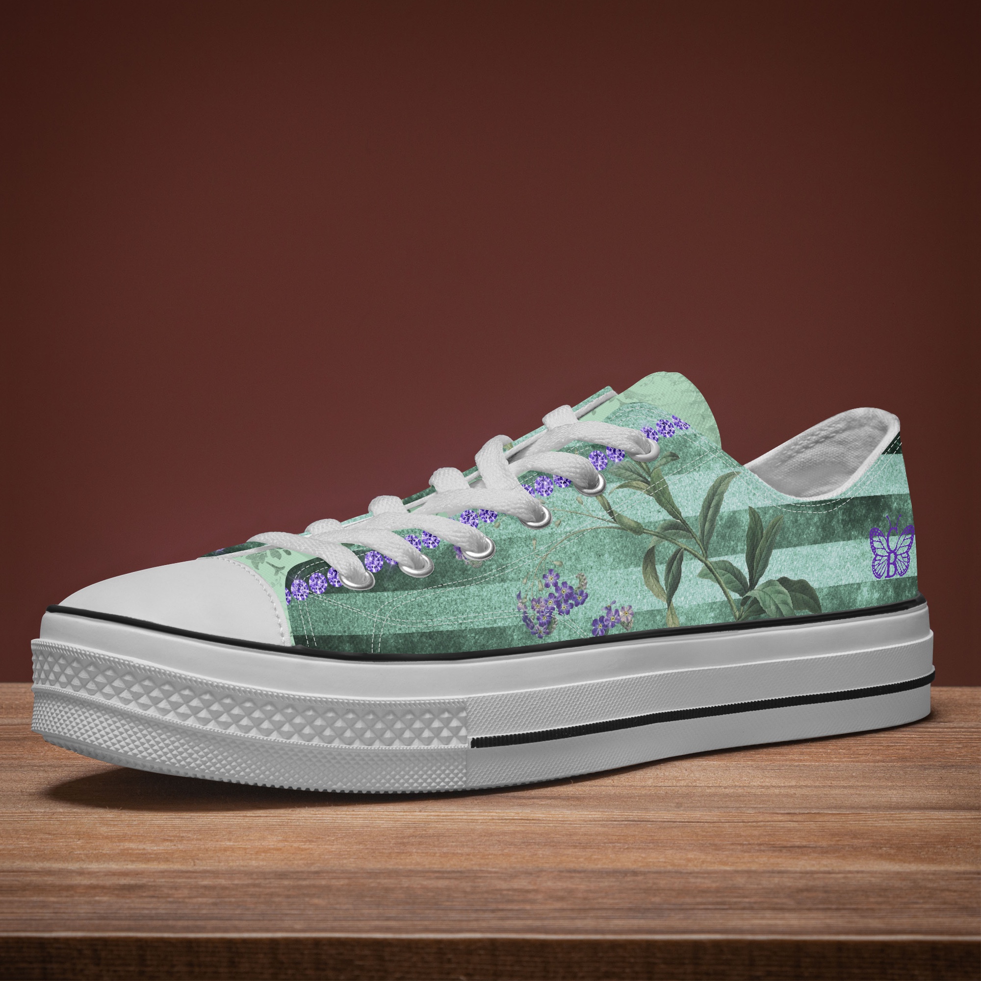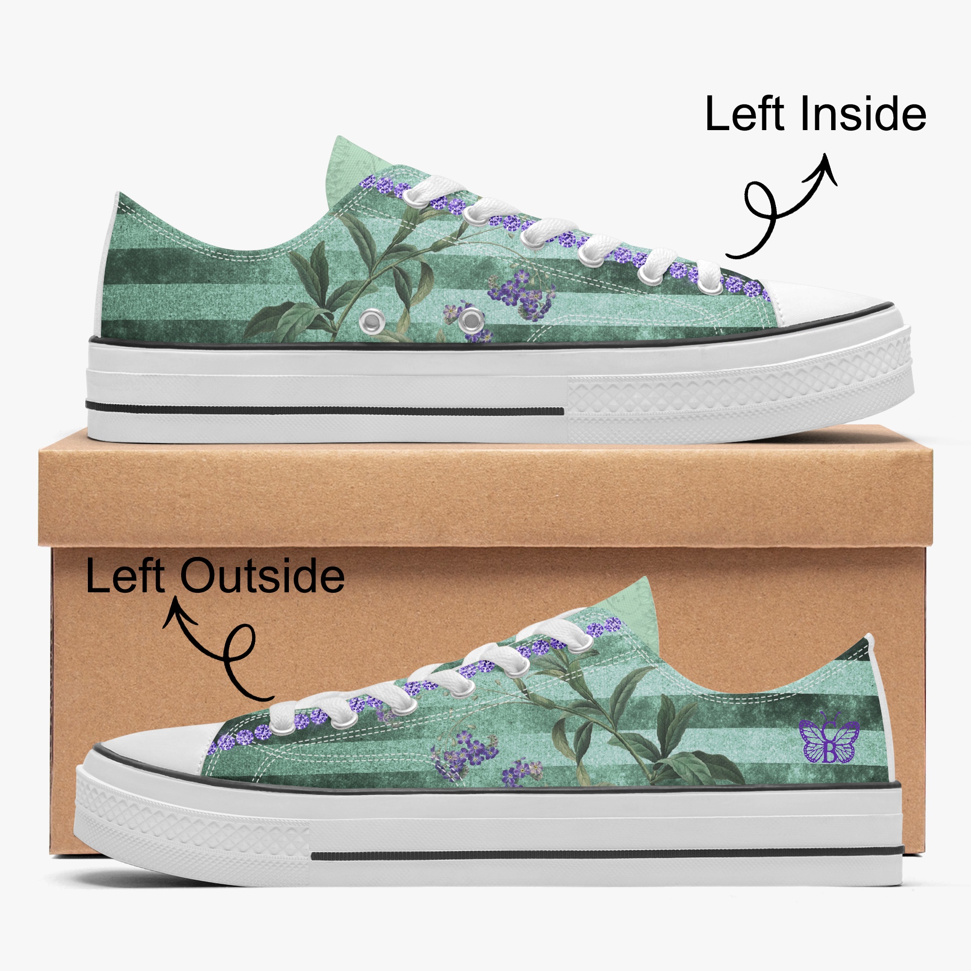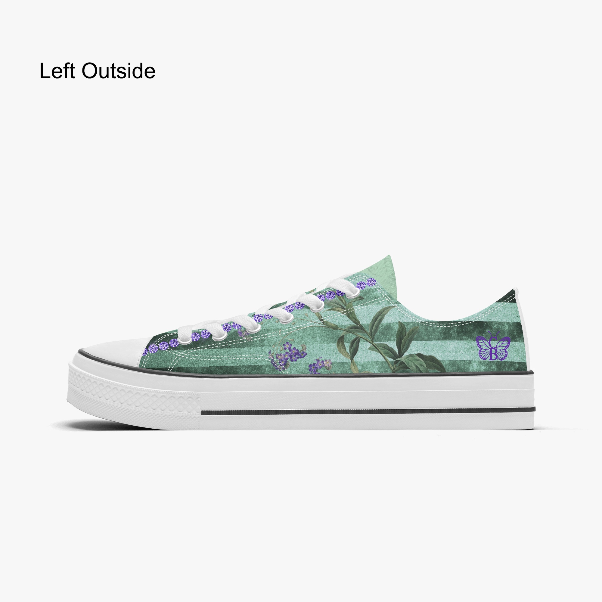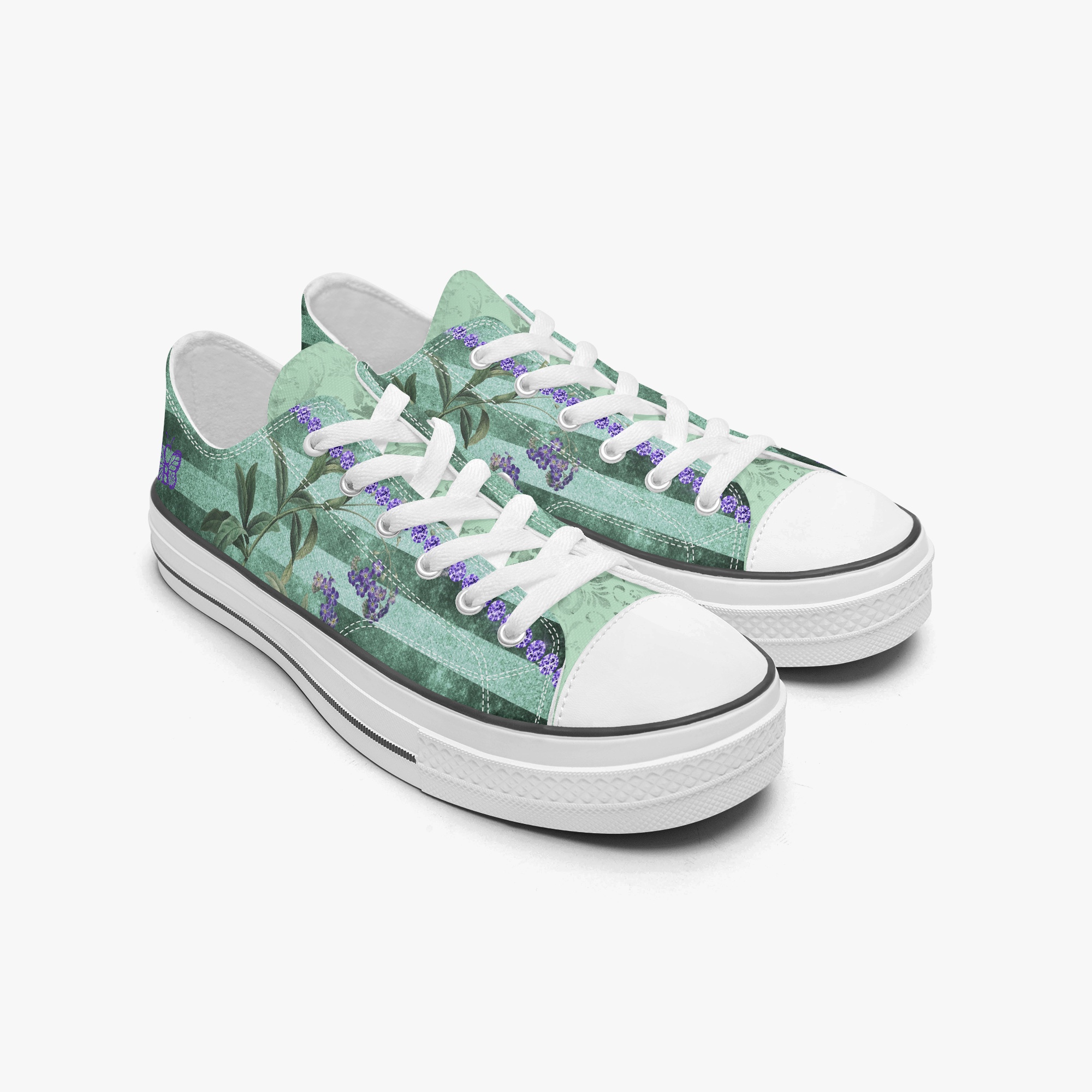 Lavender & Sage Collection – Low Canvas Shoes-White sole with Mint Stripes