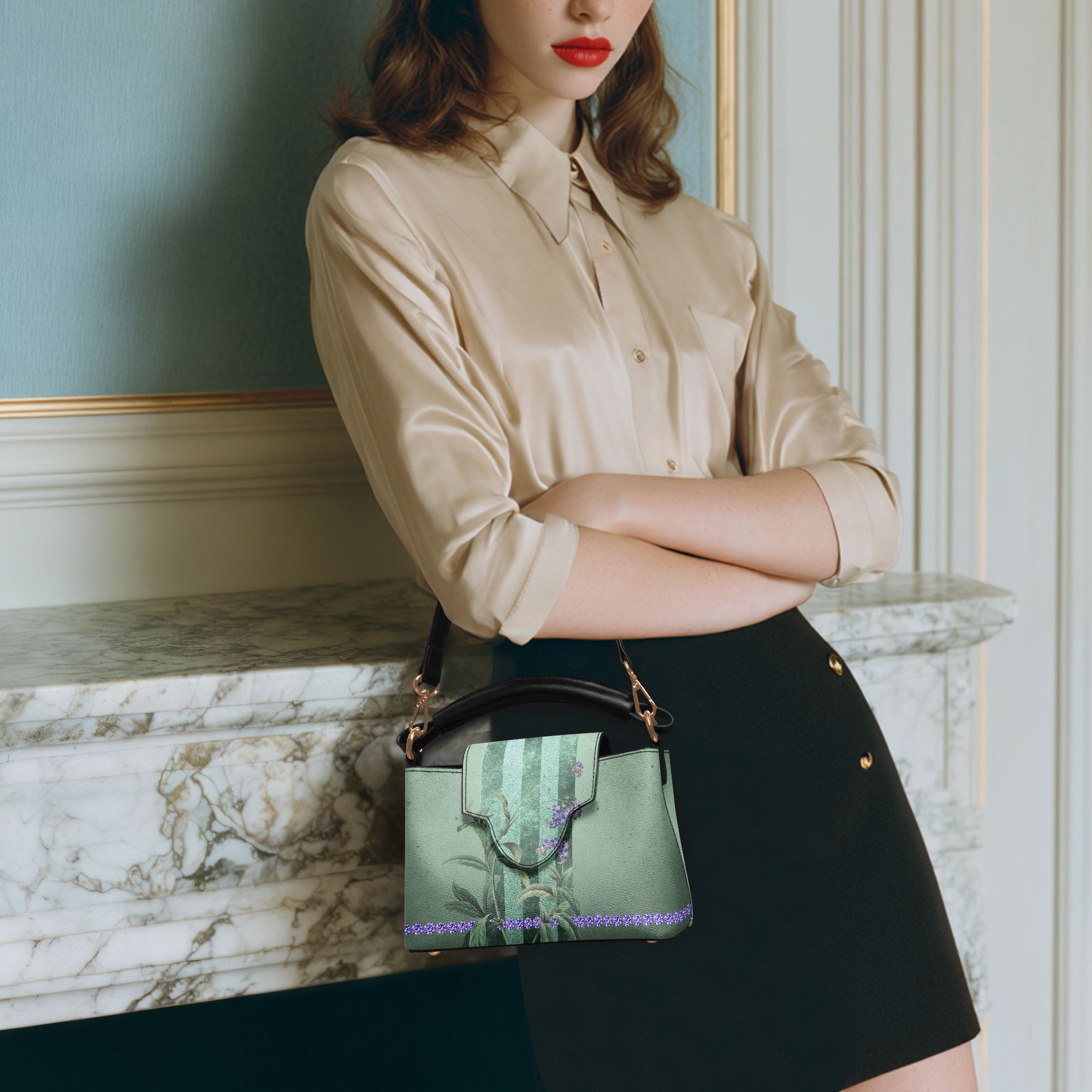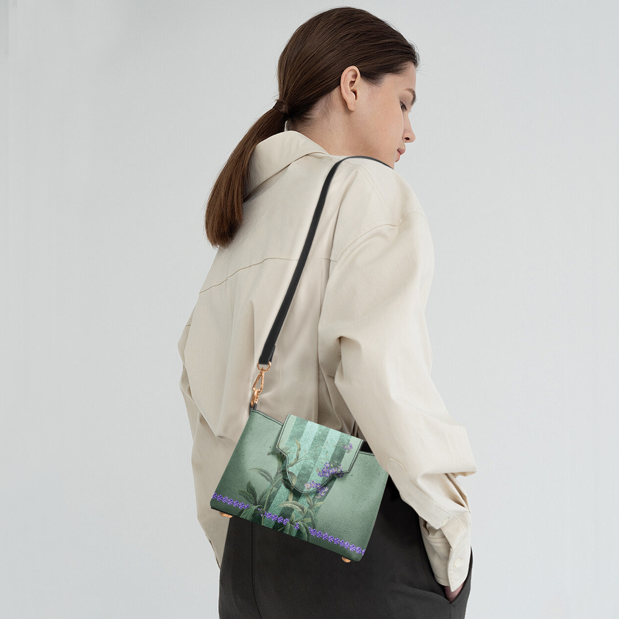 Lavender & Sage Collection – Mini Delicate Crossbody Bag with Mint Stripes