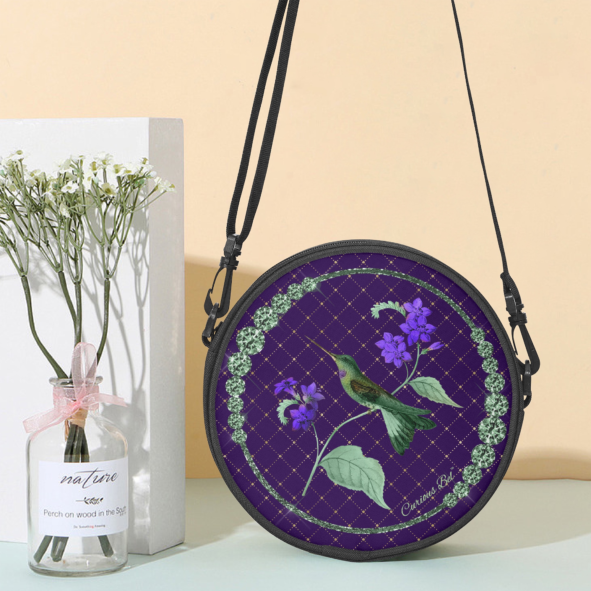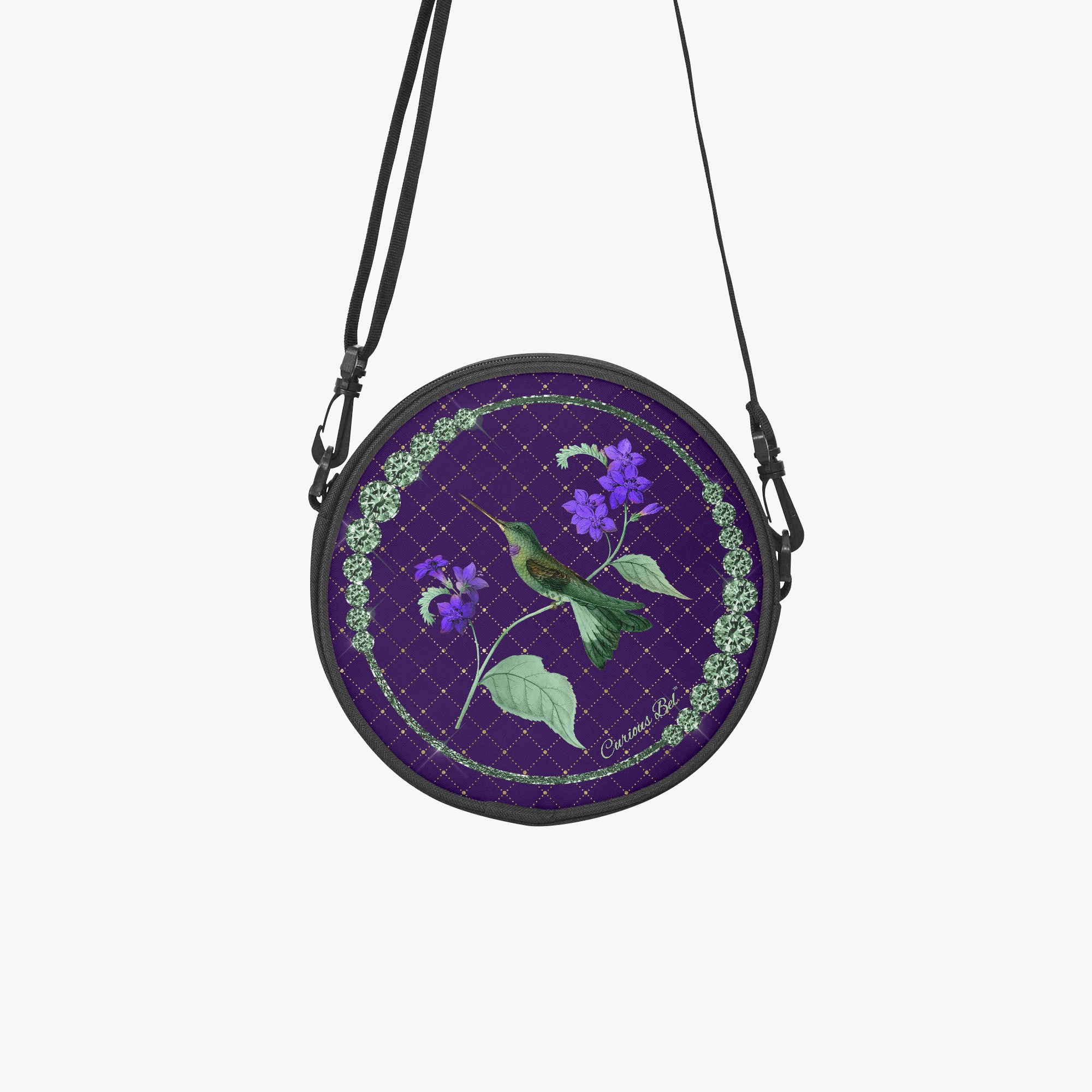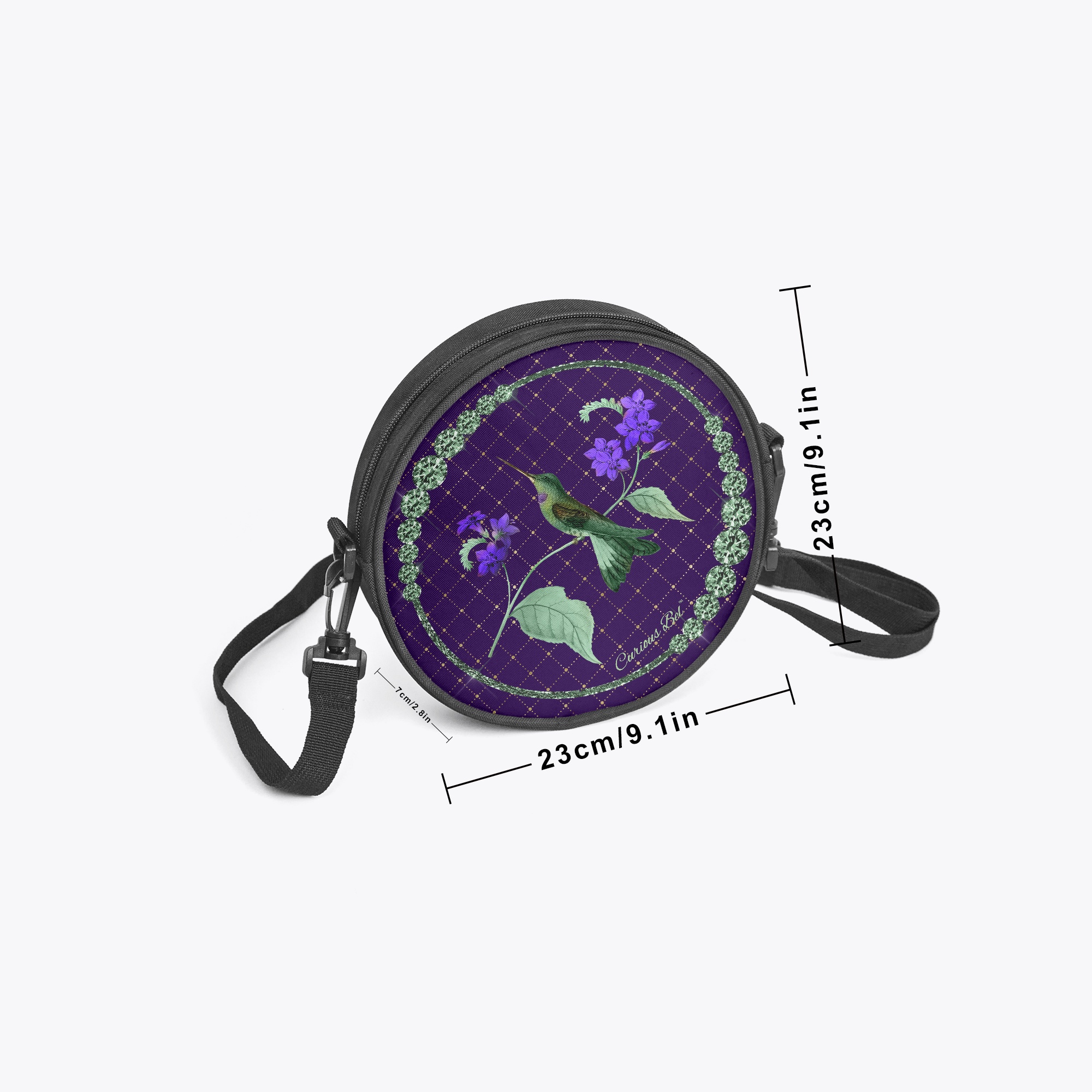 Indigo Viridescent Collection – Round Satchel Bag Deep Indigo with Hummingbird
