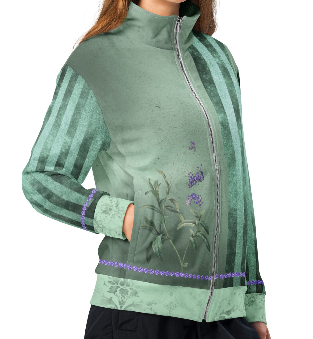 Lavender & Sage Collection – Track Jacket with Mint Stripes