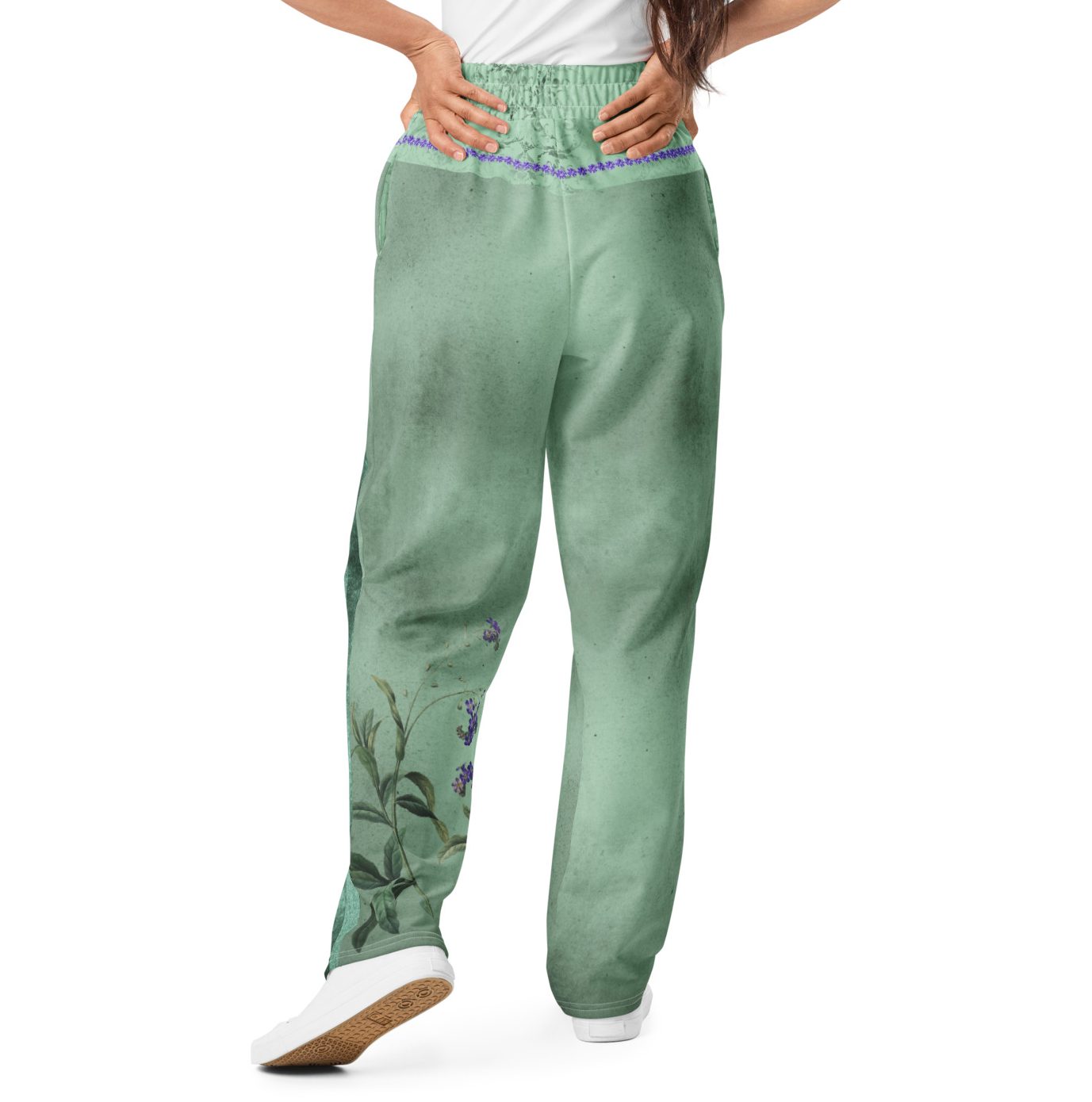 Lavender & Sage Collection – Wide-leg Joggers with Mint Stripes